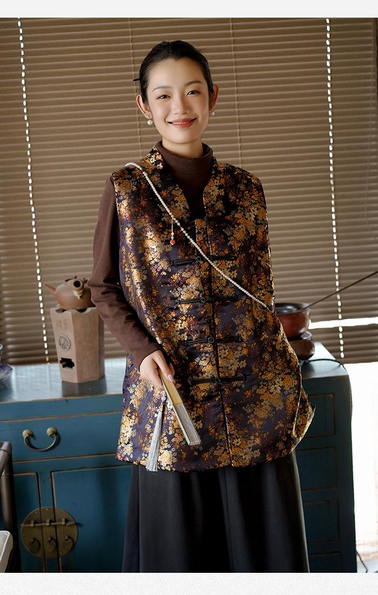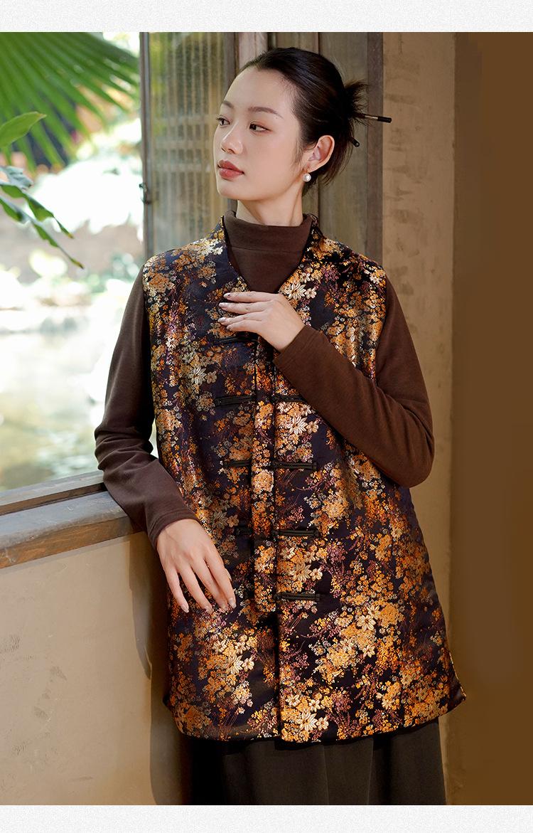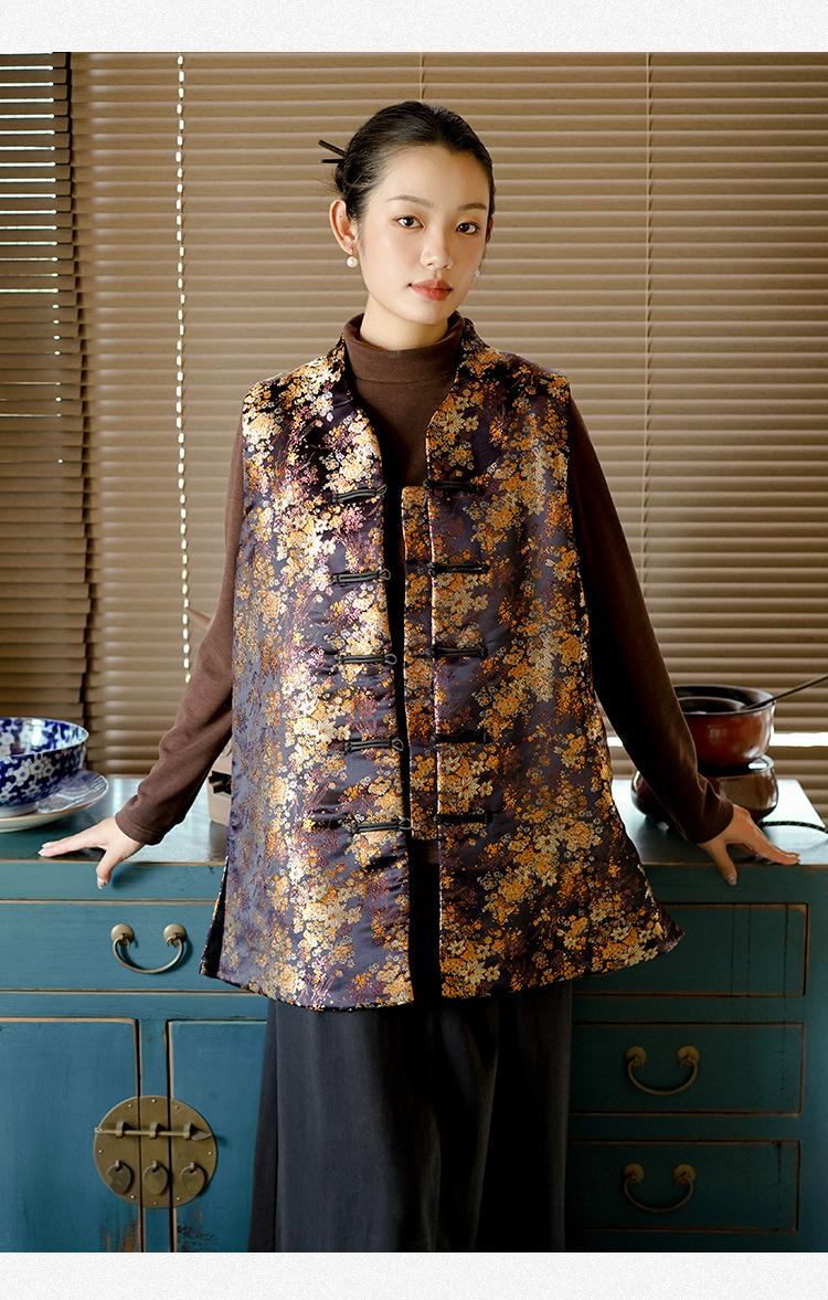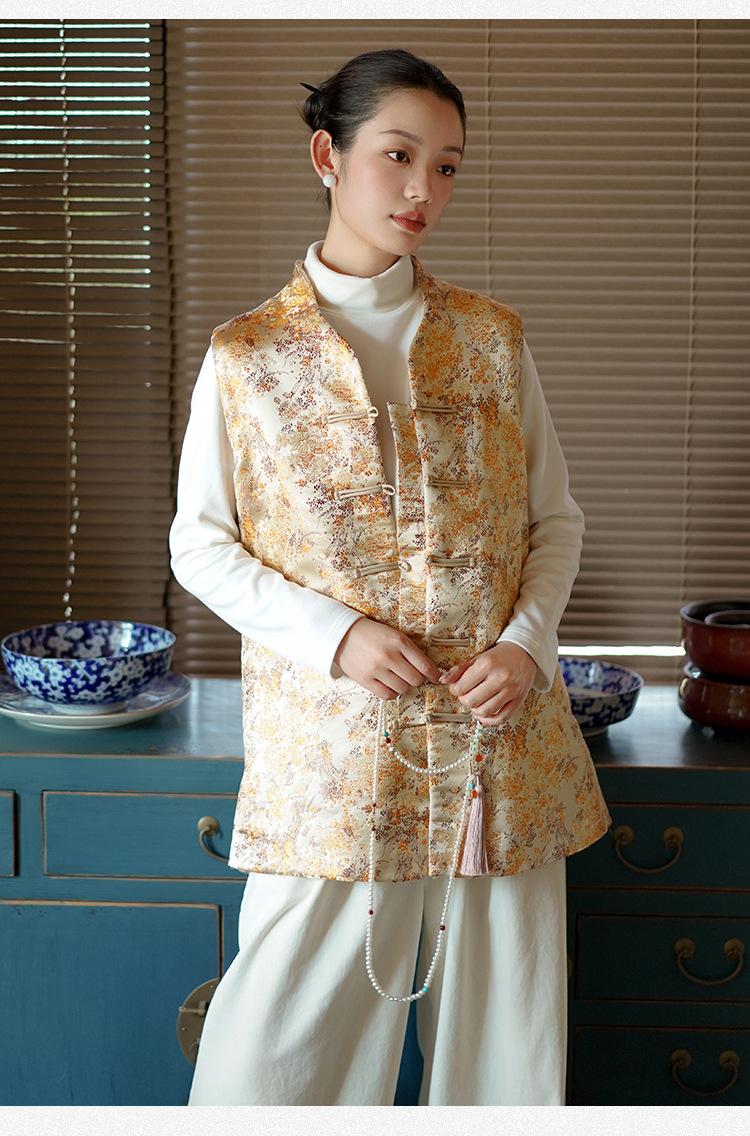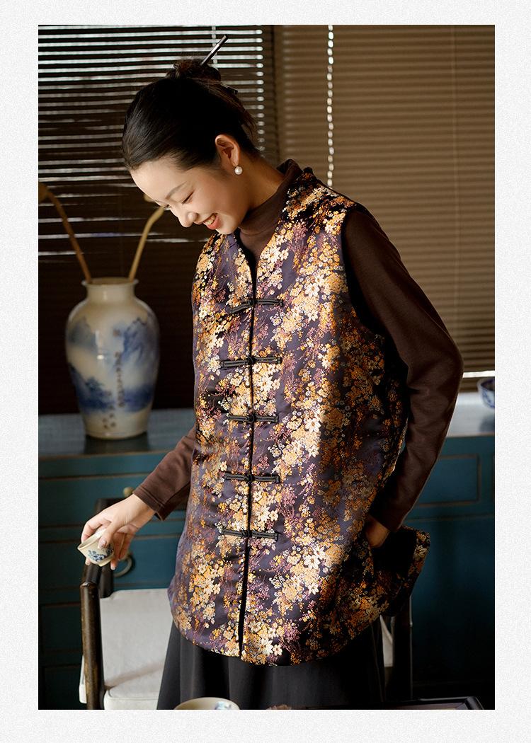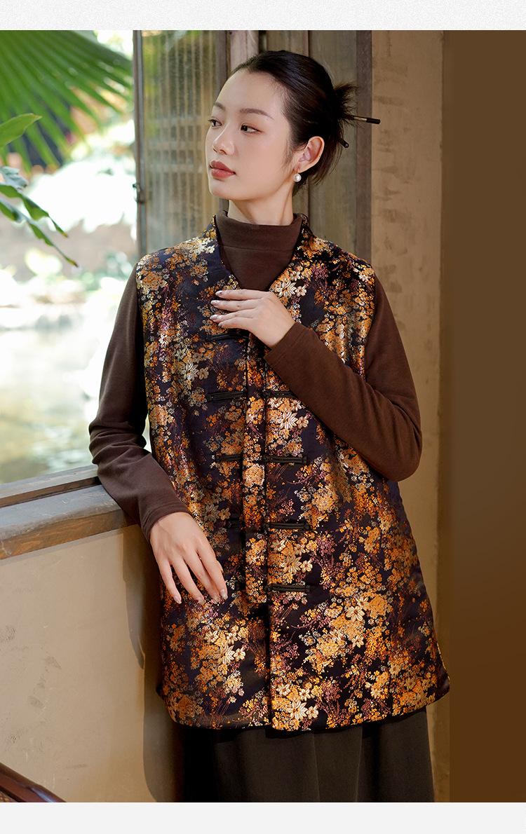 Chaleco de Algodón de Estilo Chino Nuevo de Otoño e Invierno para Mujer, Largo Medio de Satén, Chaleco Exterior Retro de Estilo Chino de Alta Gama para Mujer