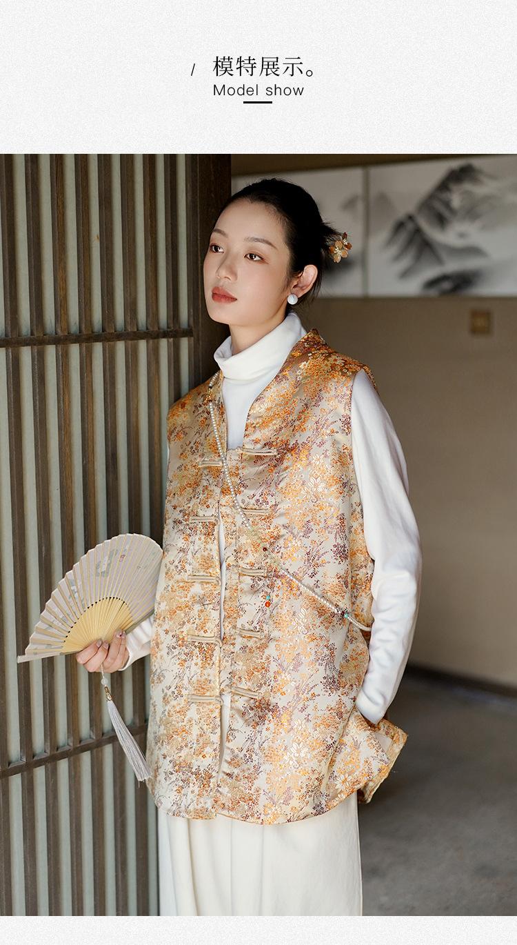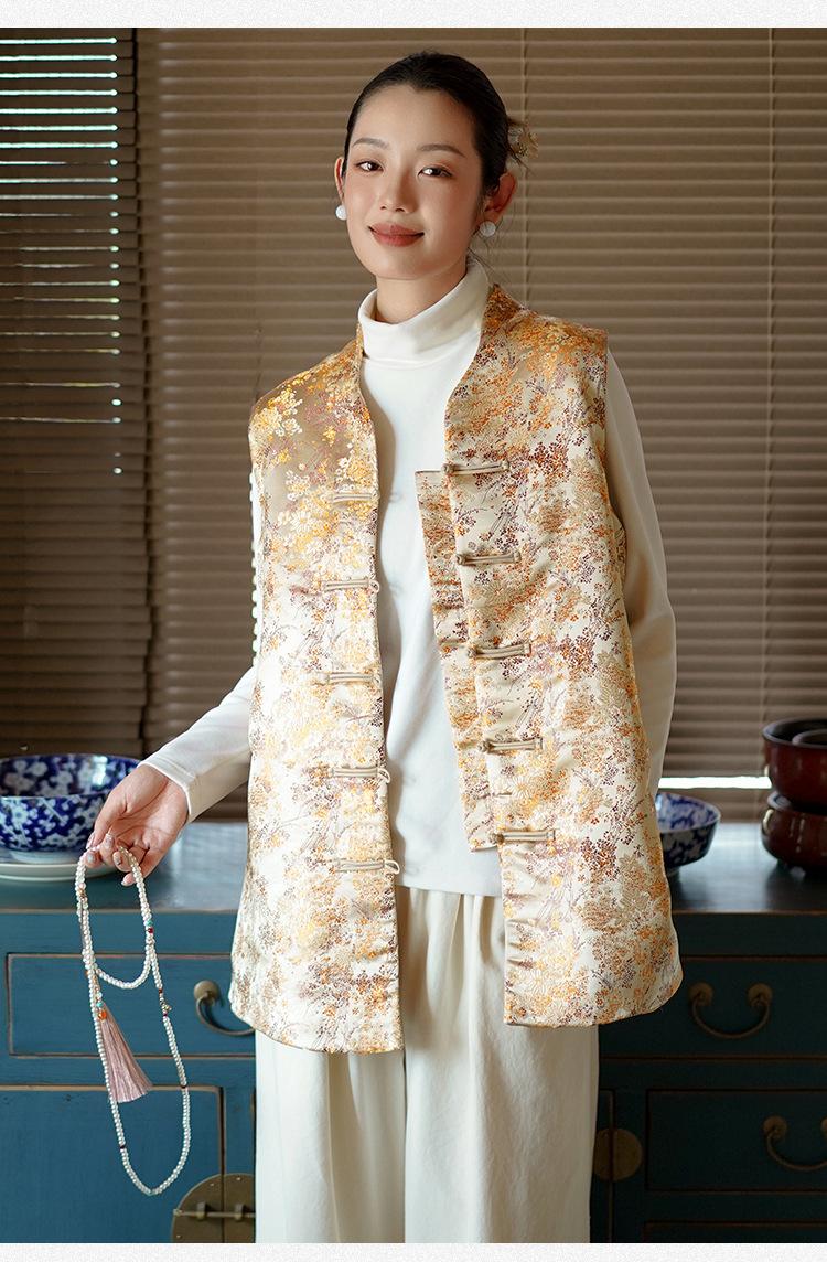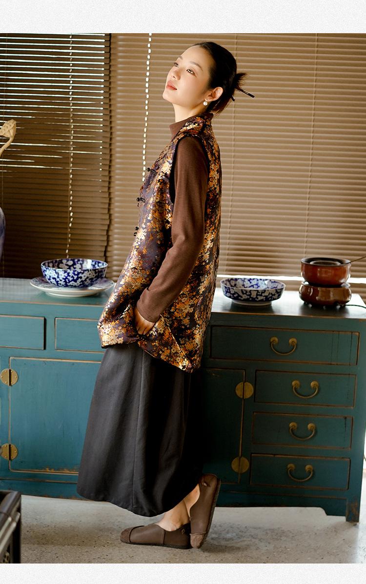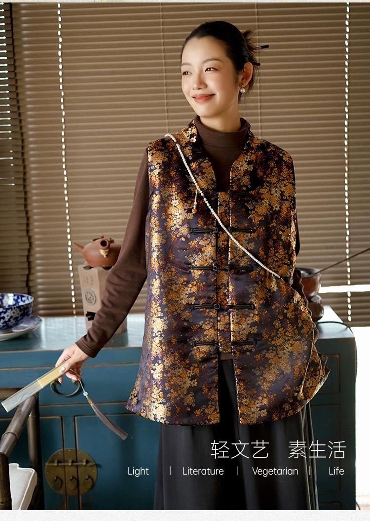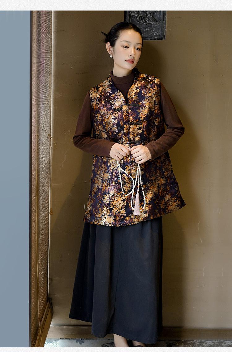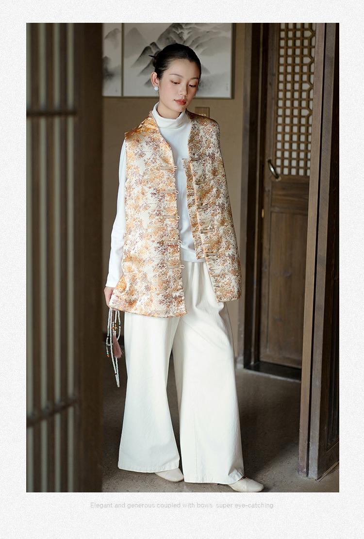 Chaleco de Algodón de Estilo Chino Nuevo de Otoño e Invierno para Mujer, Largo Medio de Satén, Chaleco Exterior Retro de Estilo Chino de Alta Gama para Mujer