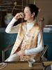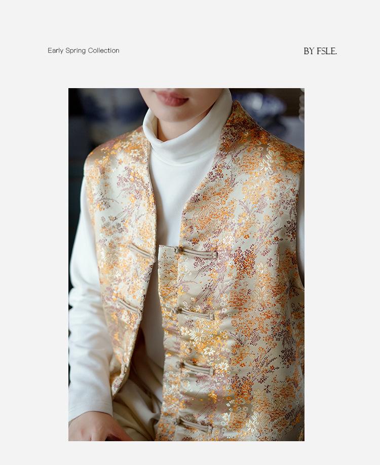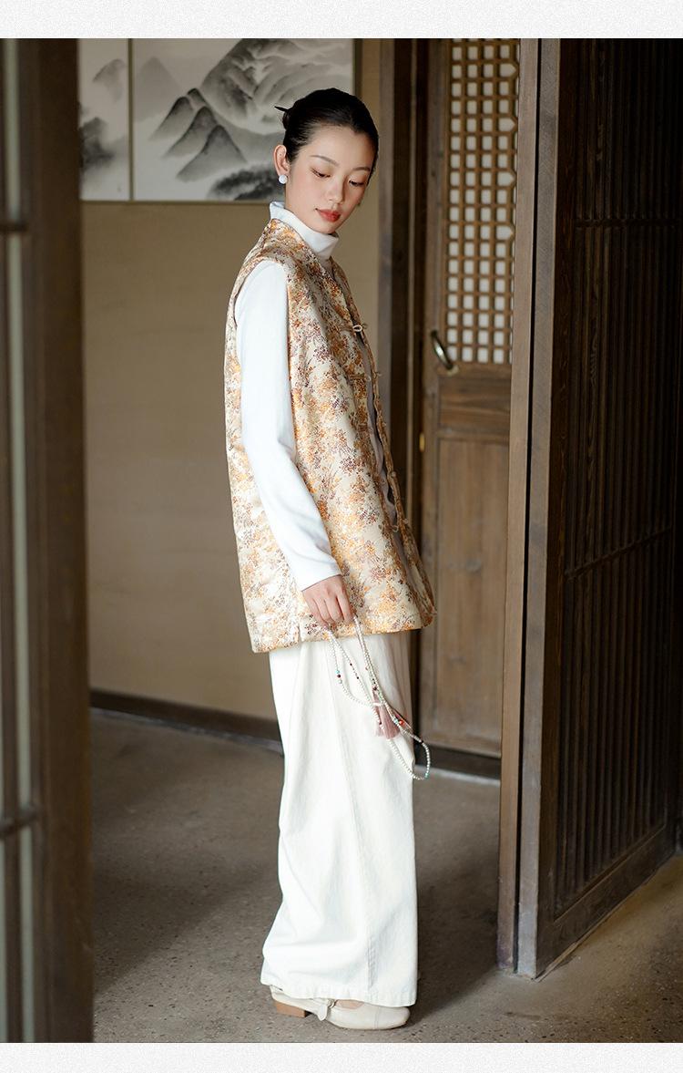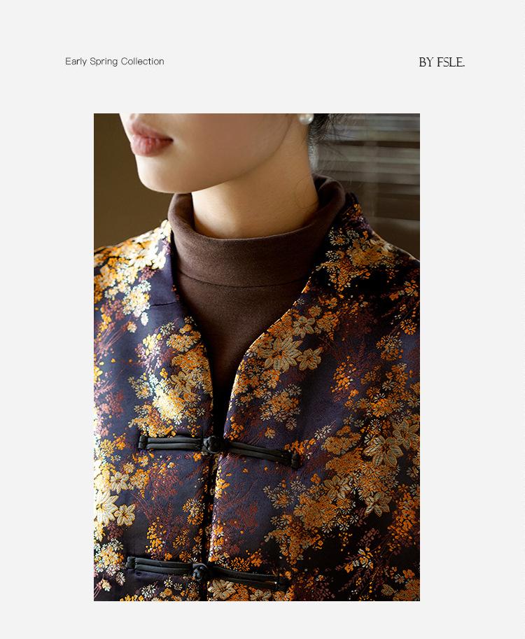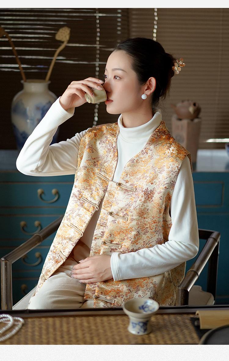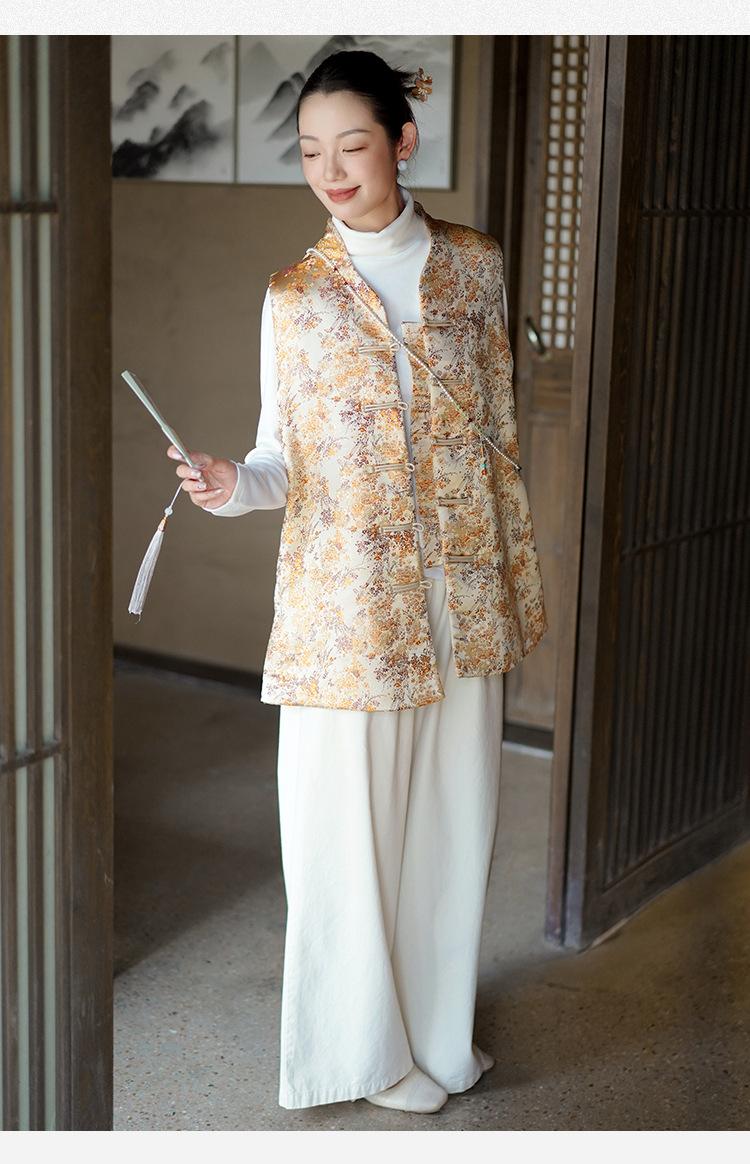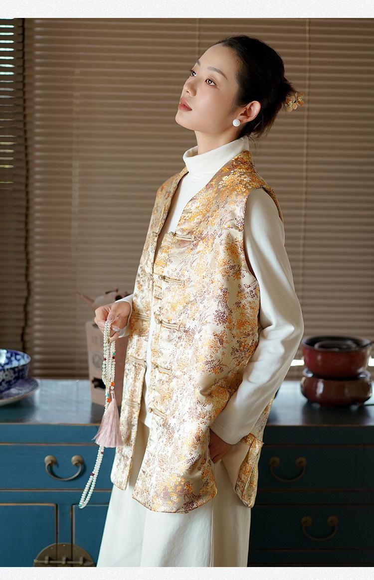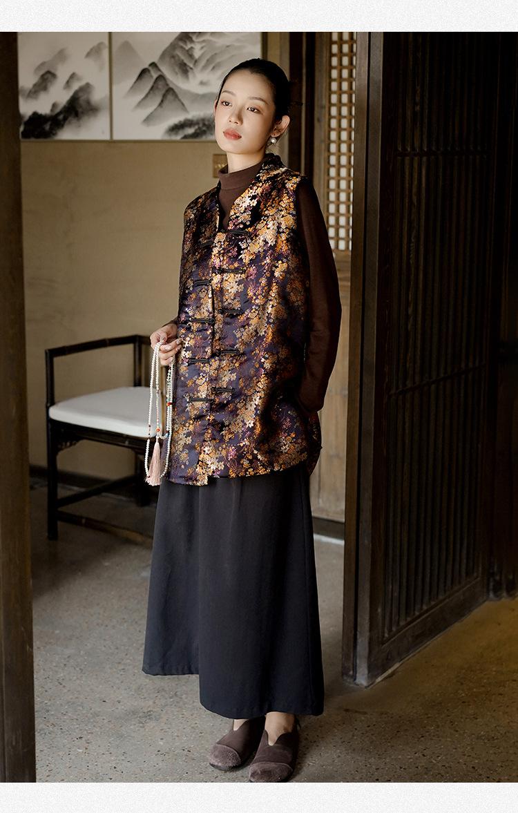 Chaleco de Algodón de Estilo Chino Nuevo de Otoño e Invierno para Mujer, Largo Medio de Satén, Chaleco Exterior Retro de Estilo Chino de Alta Gama para Mujer