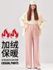 Pantalones anchos para embarazadas, para uso exterior, otoño e invierno, con forro polar, gruesos, de cintura alta, talla grande, adelgazantes, informales.