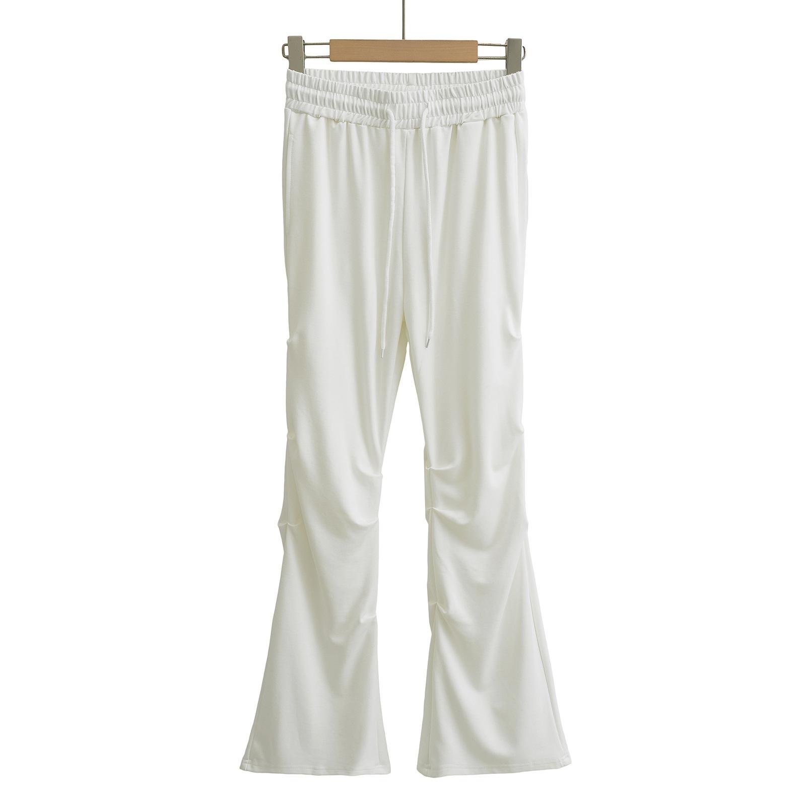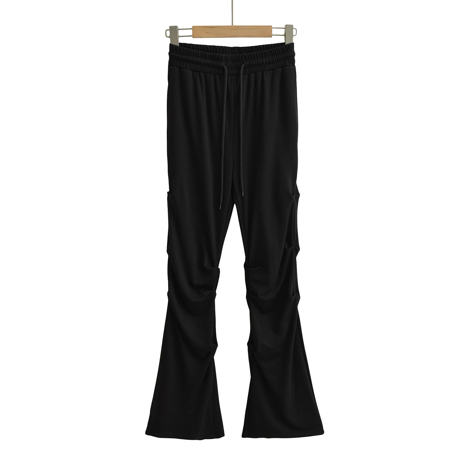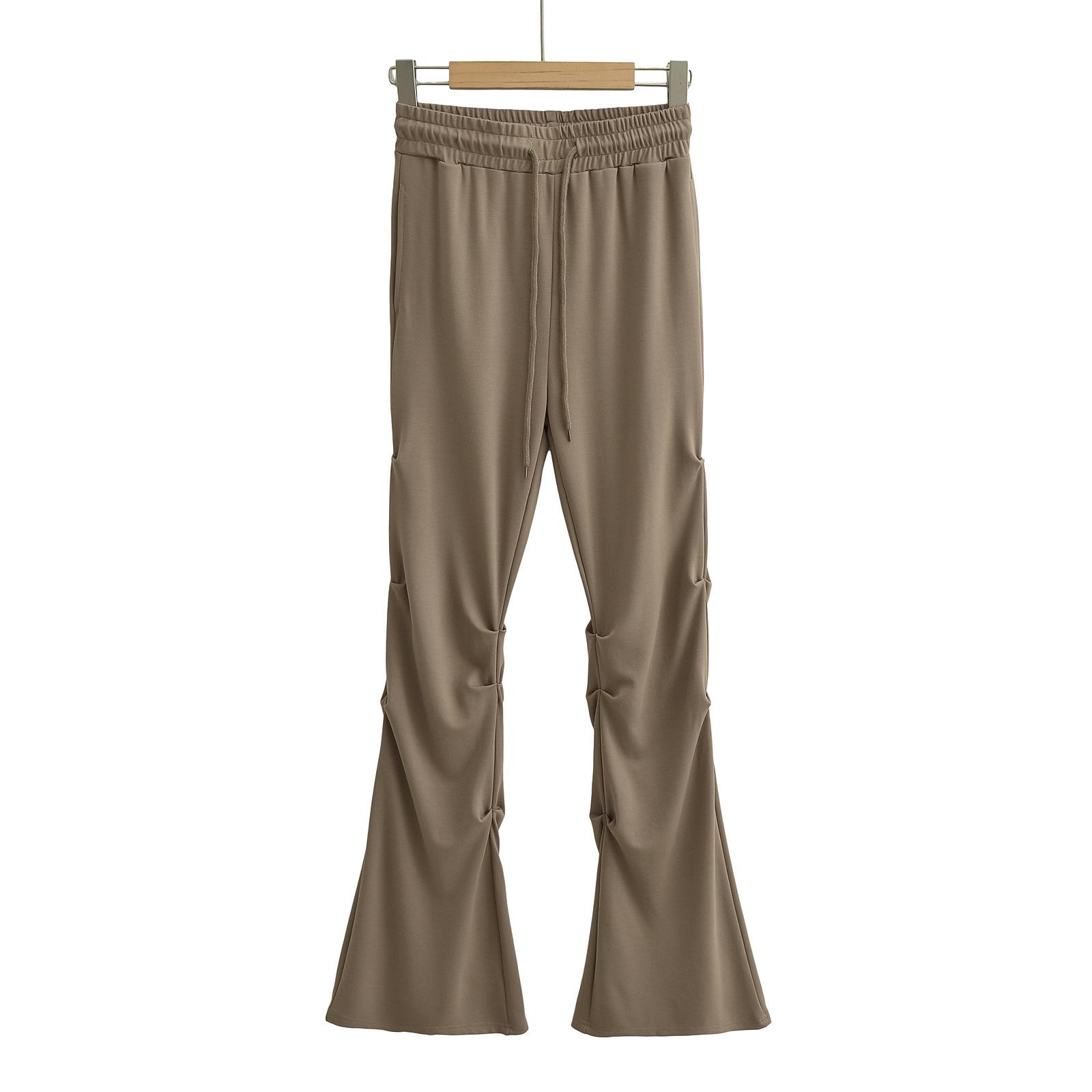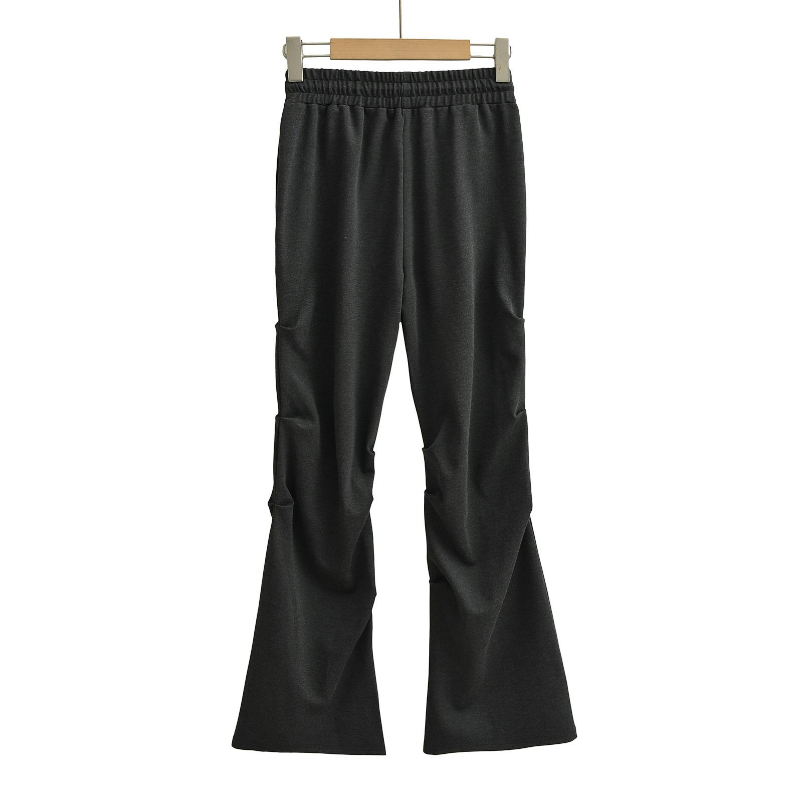 Pantalones micro plisados de cintura alta con diseño de estilo europeo y americano para mujer, otoño 2024, nuevos pantalones casuales ajustados elásticos
