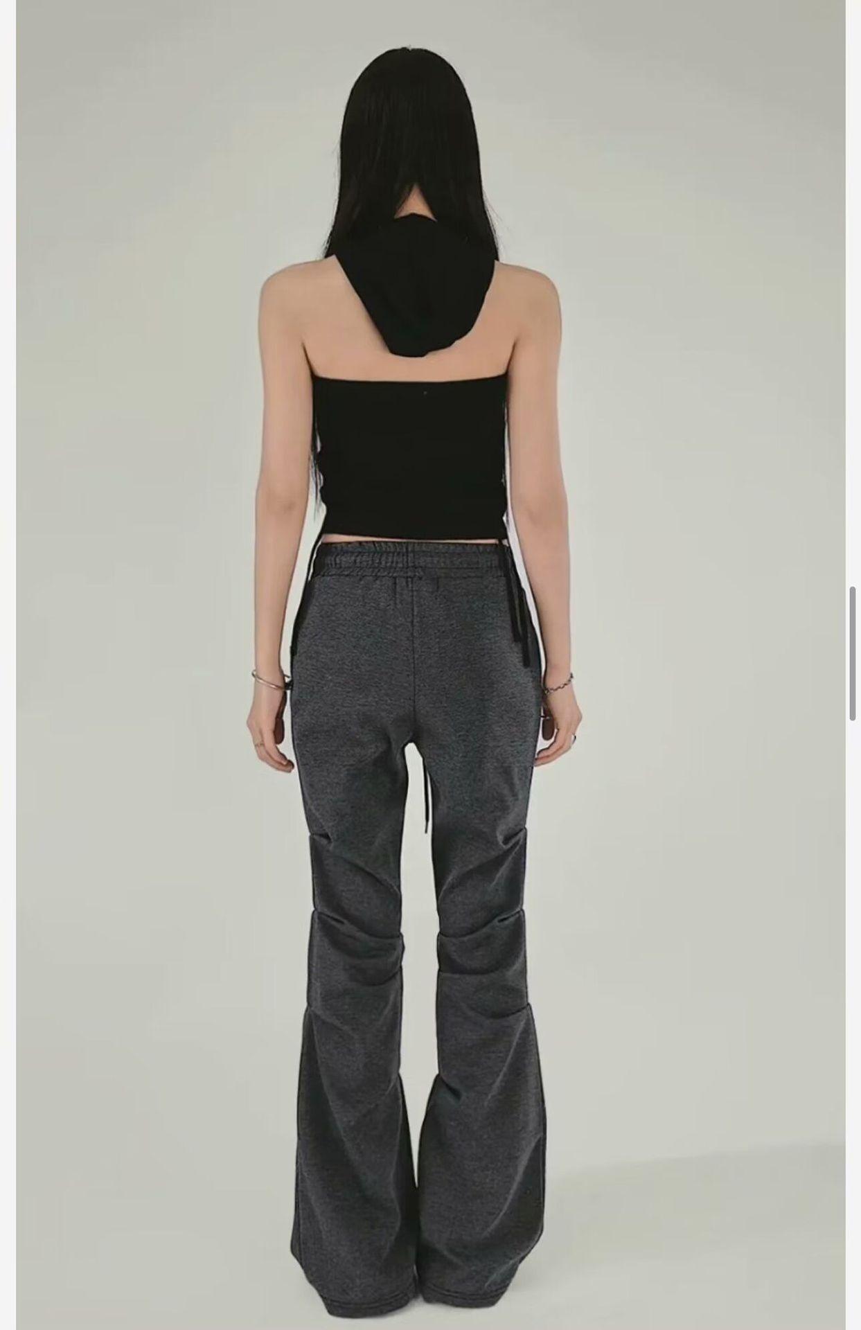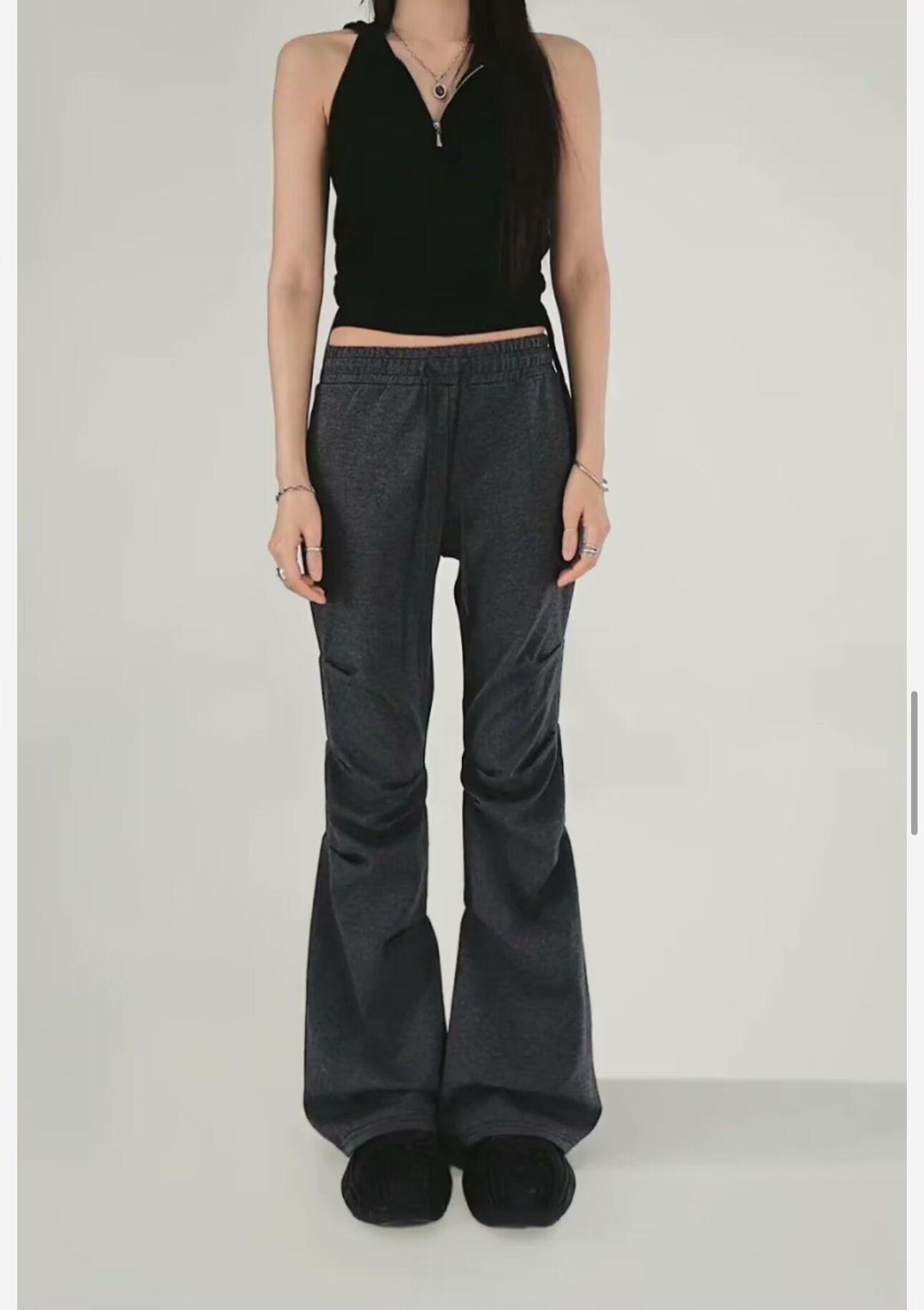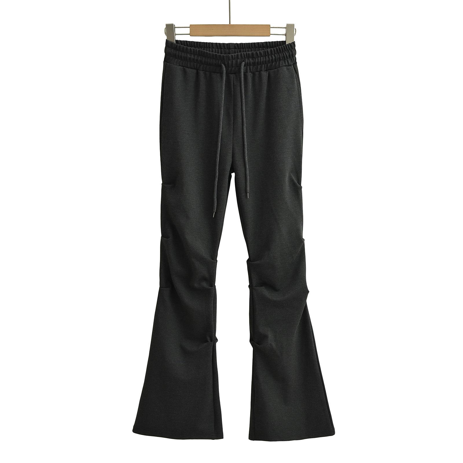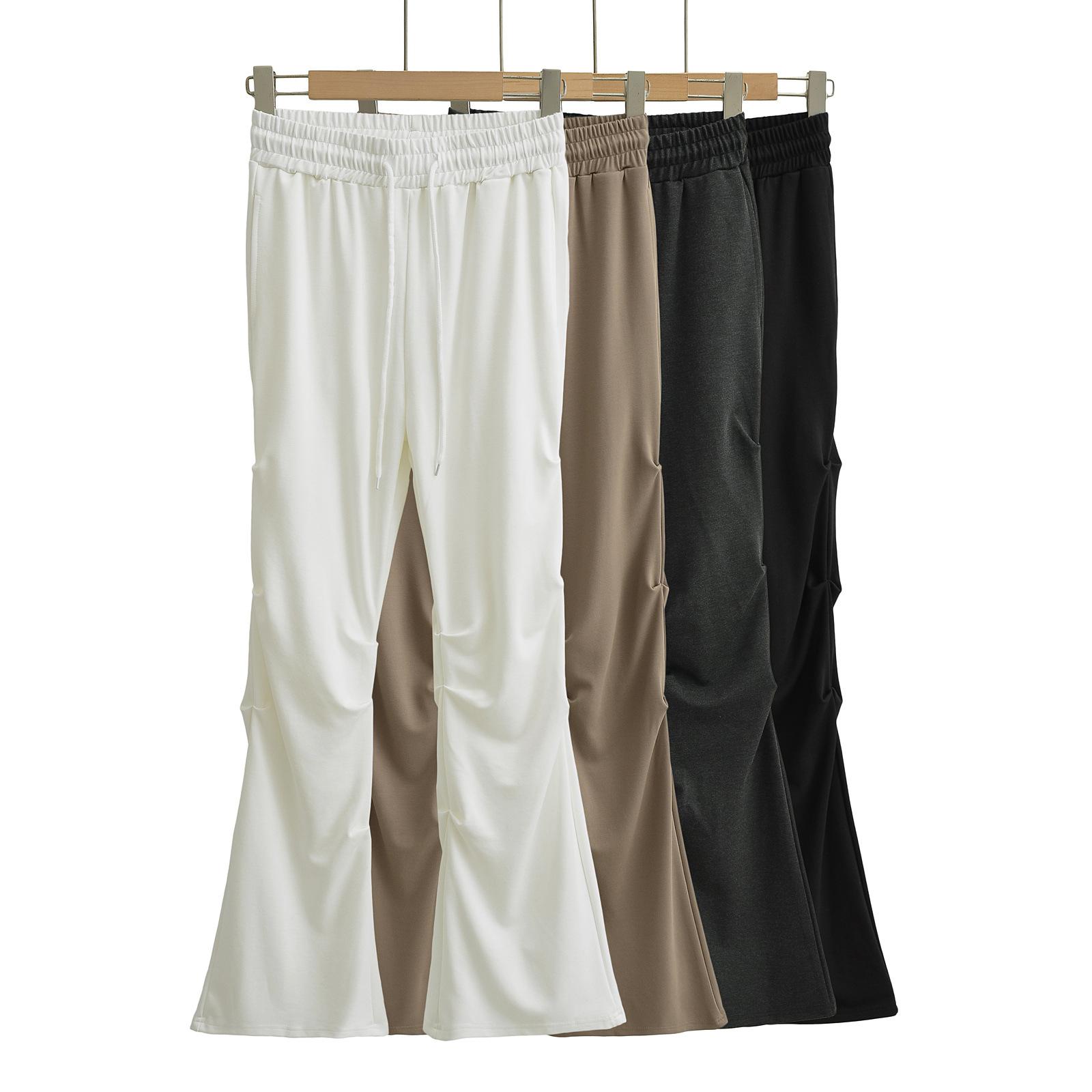 Pantalones micro plisados de cintura alta con diseño de estilo europeo y americano para mujer, otoño 2024, nuevos pantalones casuales ajustados elásticos