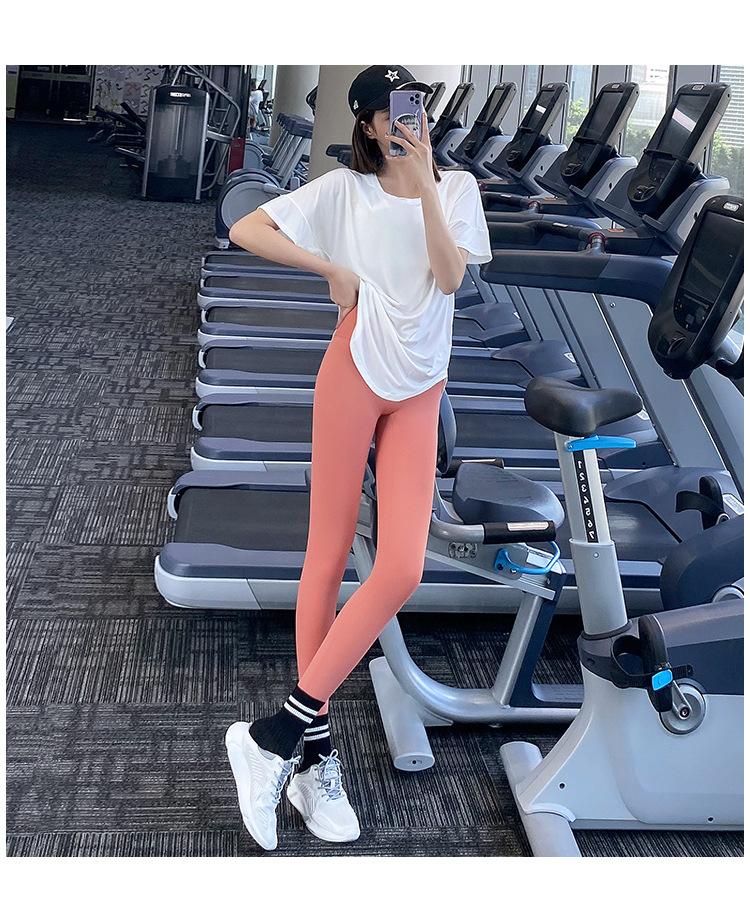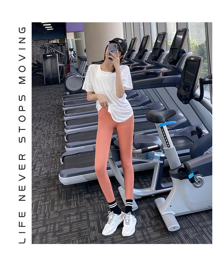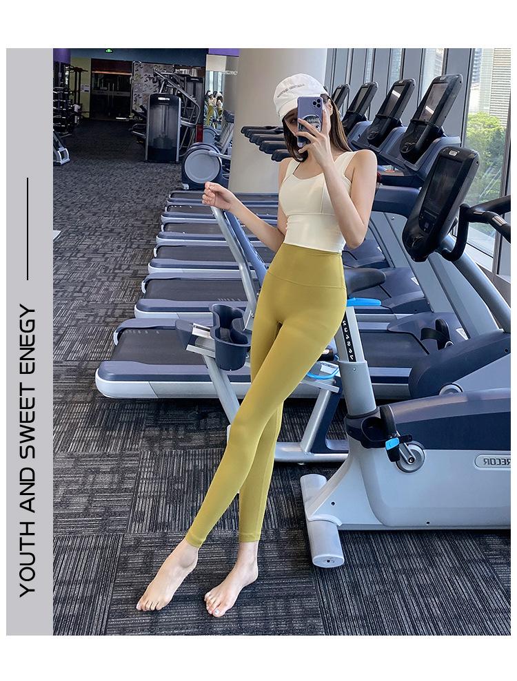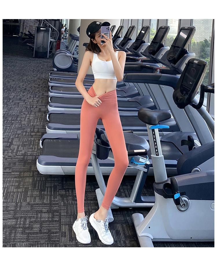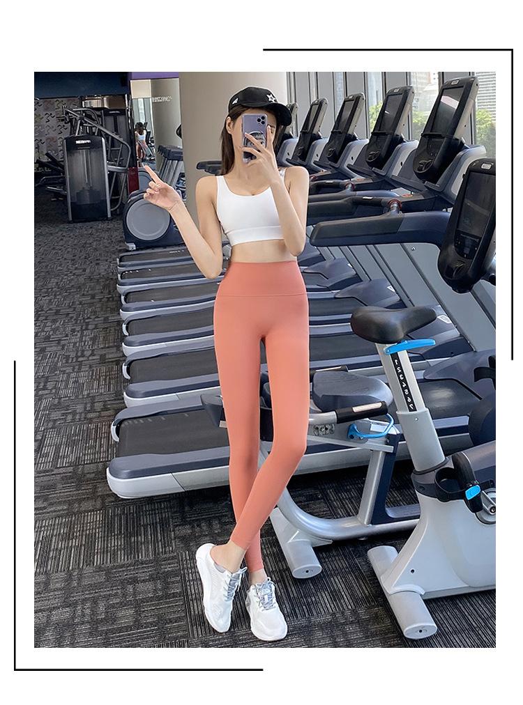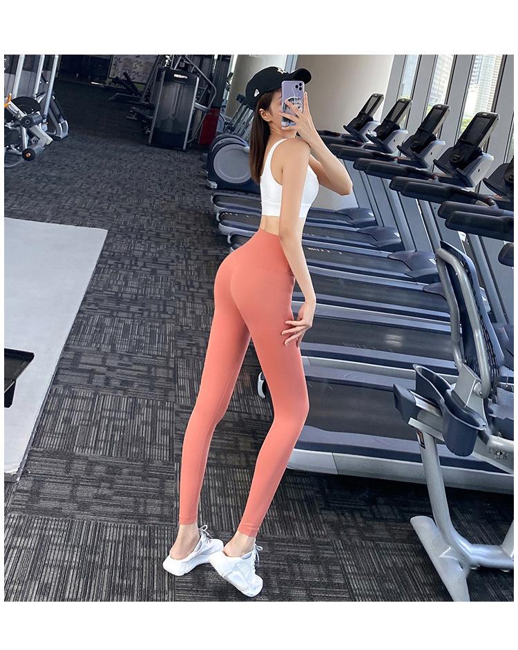 Pantalones de yoga ajustados de cintura alta sin vergüenza, elásticos, para correr, adelgazantes, color melocotón, deportivos, de moda
