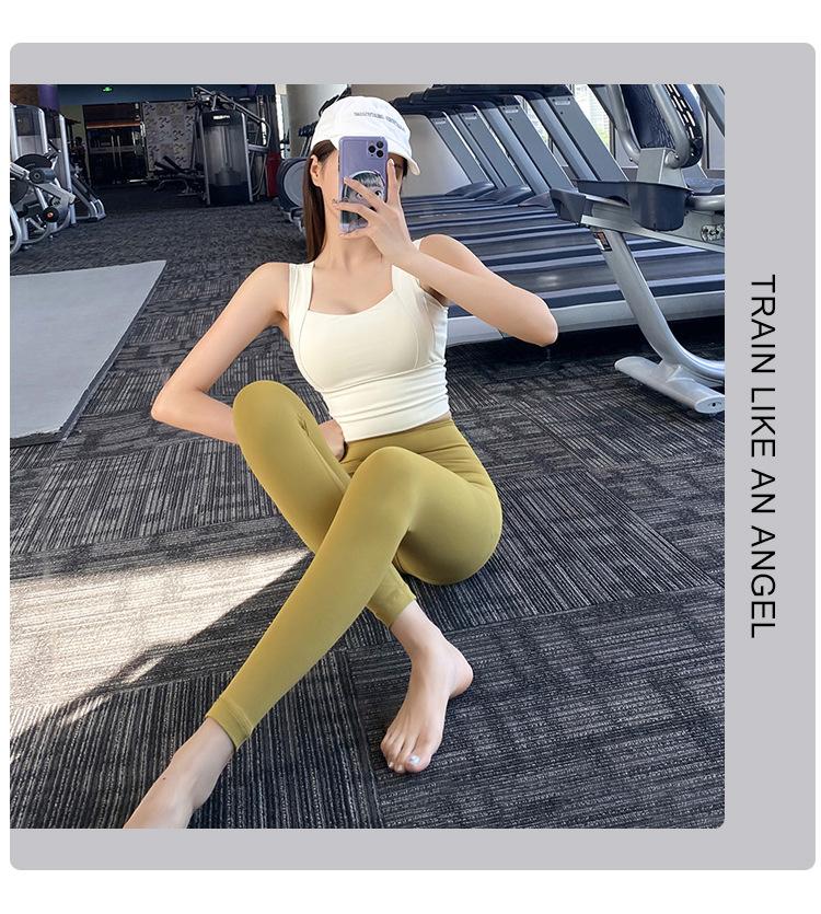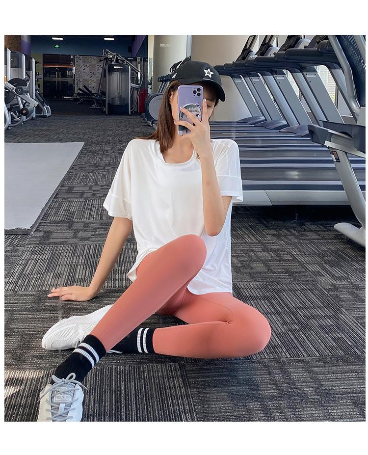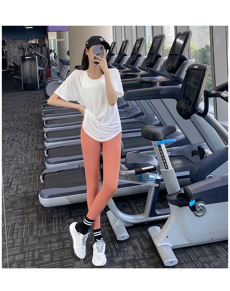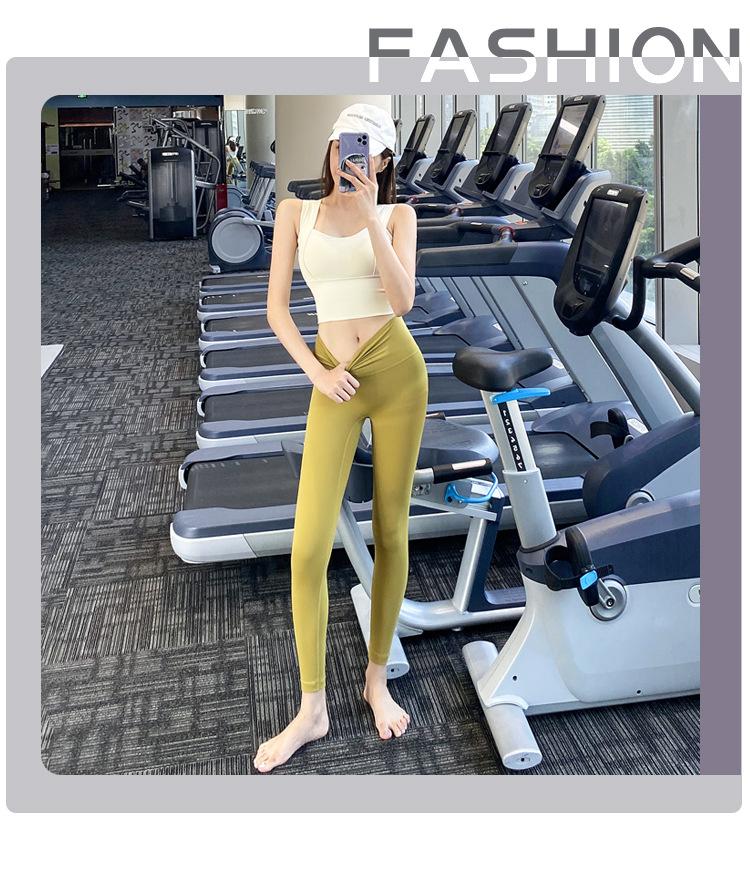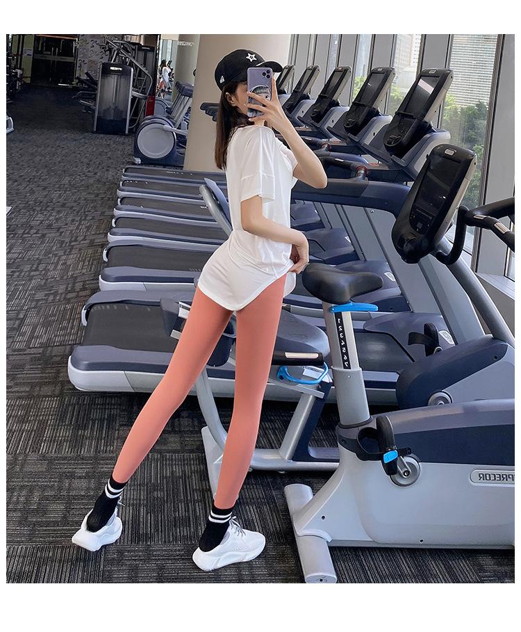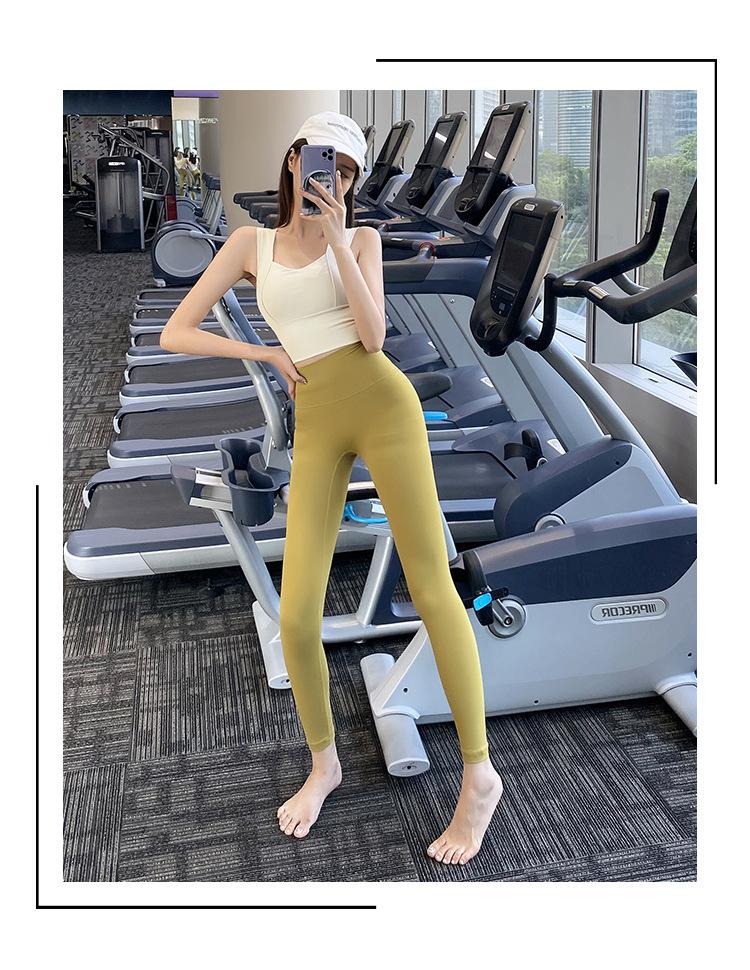 Pantalones de yoga ajustados de cintura alta sin vergüenza, elásticos, para correr, adelgazantes, color melocotón, deportivos, de moda
