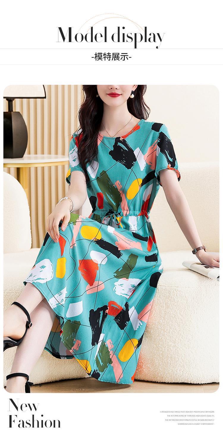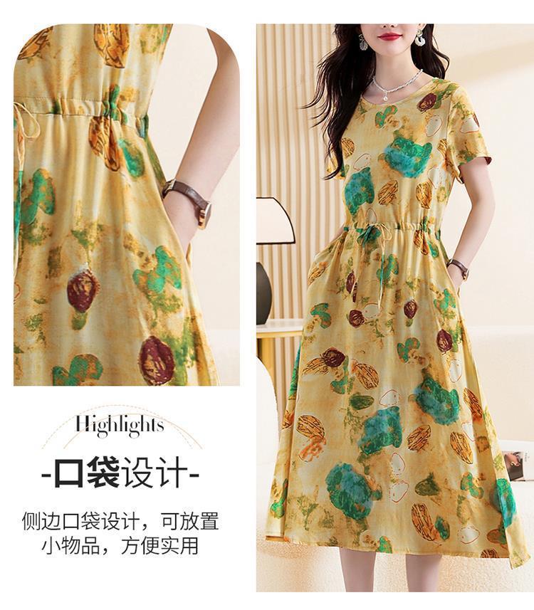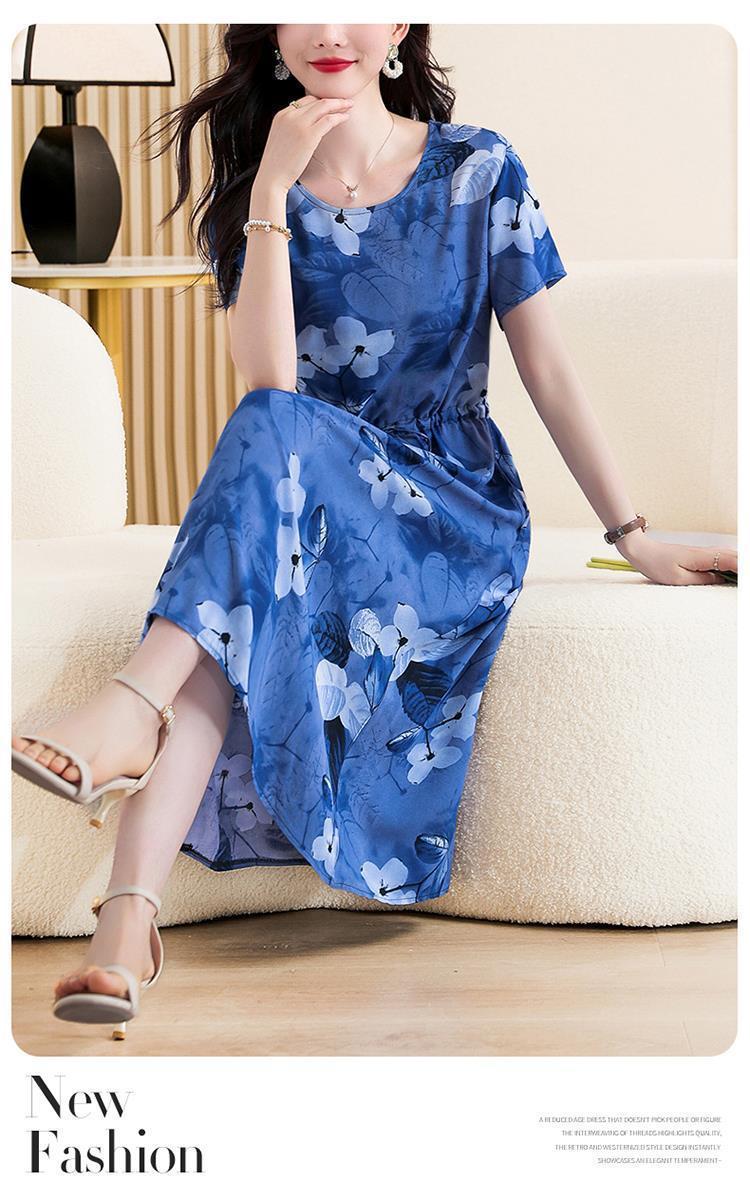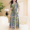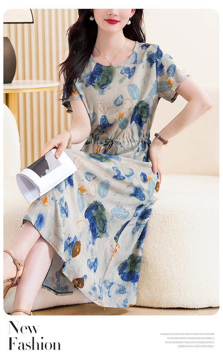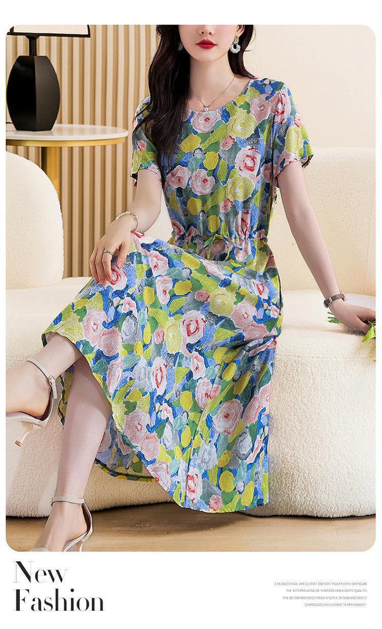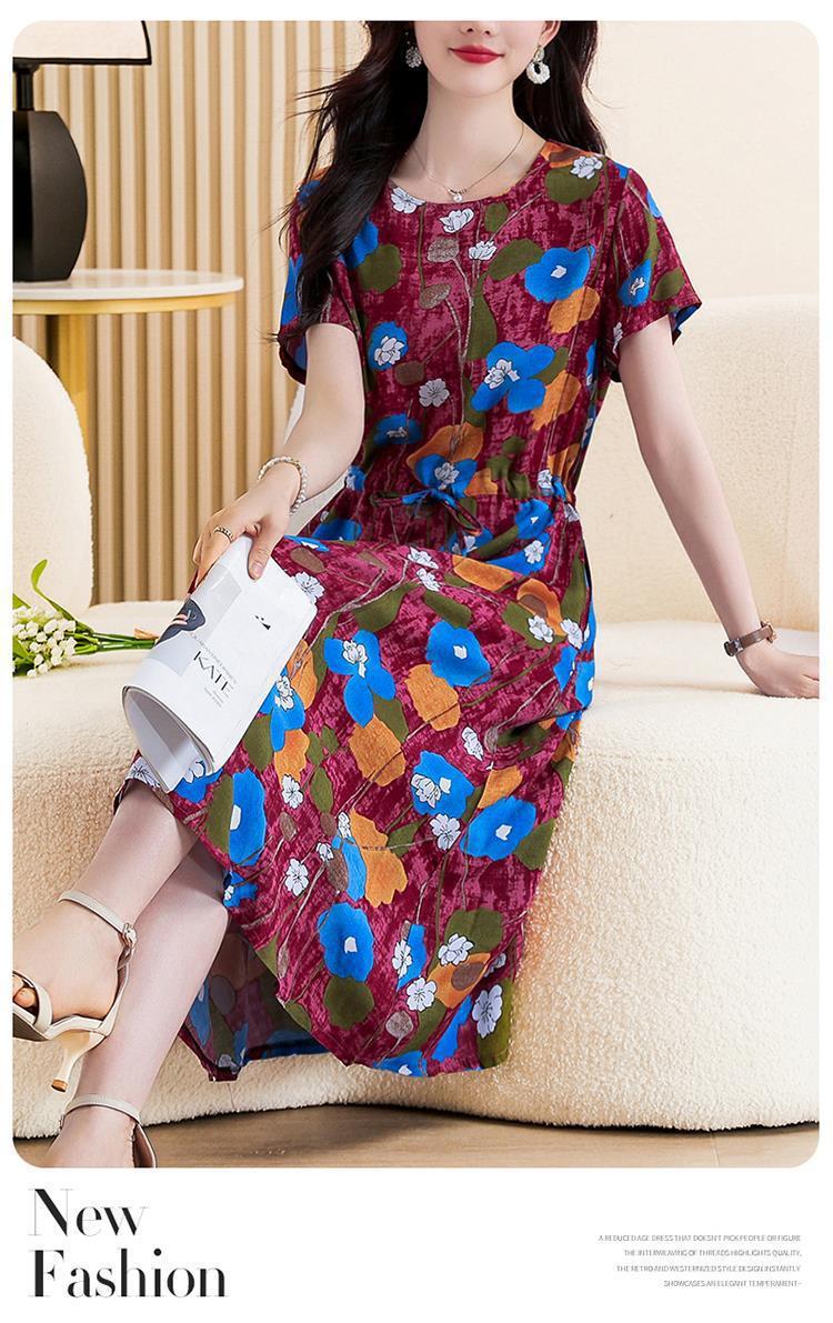 Nuevo Estilo, Estilo Joven, Vestido de Algodón Seda, Vestido Floral de Verano para Mujer, Falda Slim de Algodón Artificial para Uso Exterior