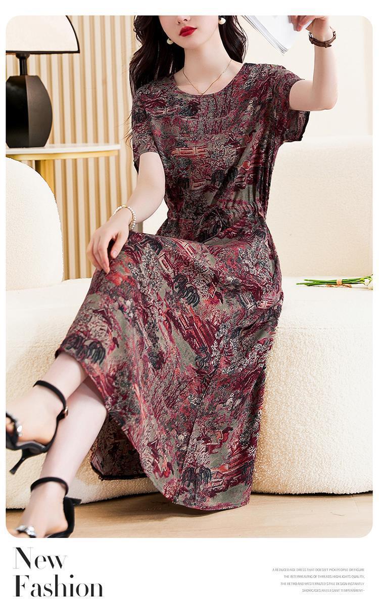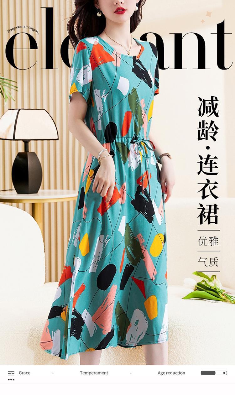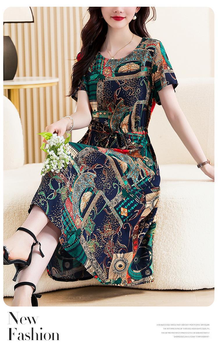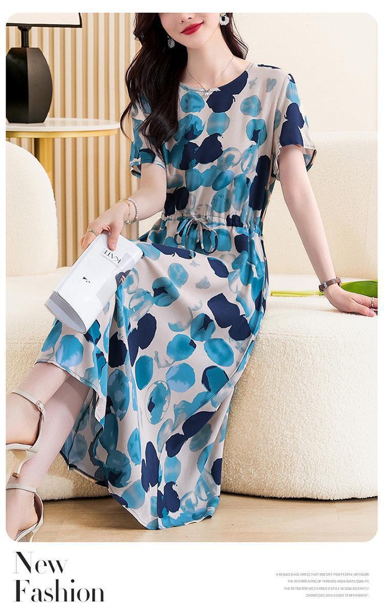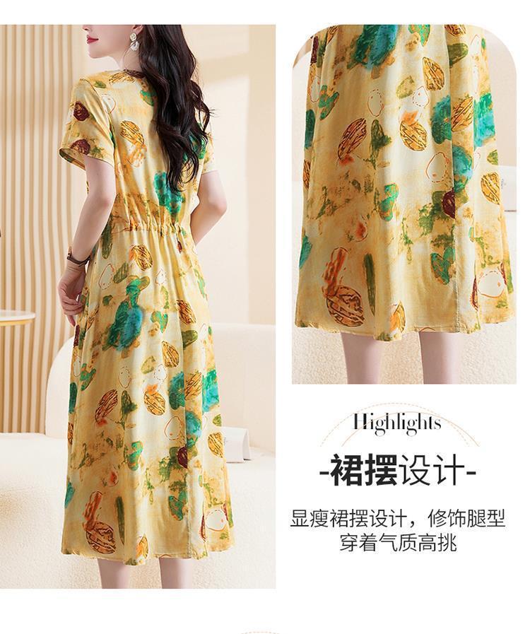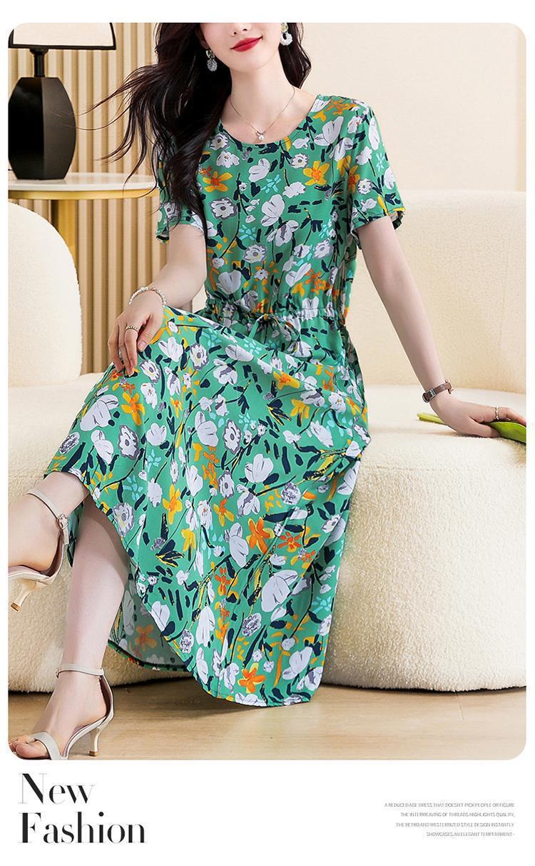 Nuevo Estilo, Estilo Joven, Vestido de Algodón Seda, Vestido Floral de Verano para Mujer, Falda Slim de Algodón Artificial para Uso Exterior