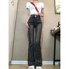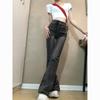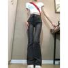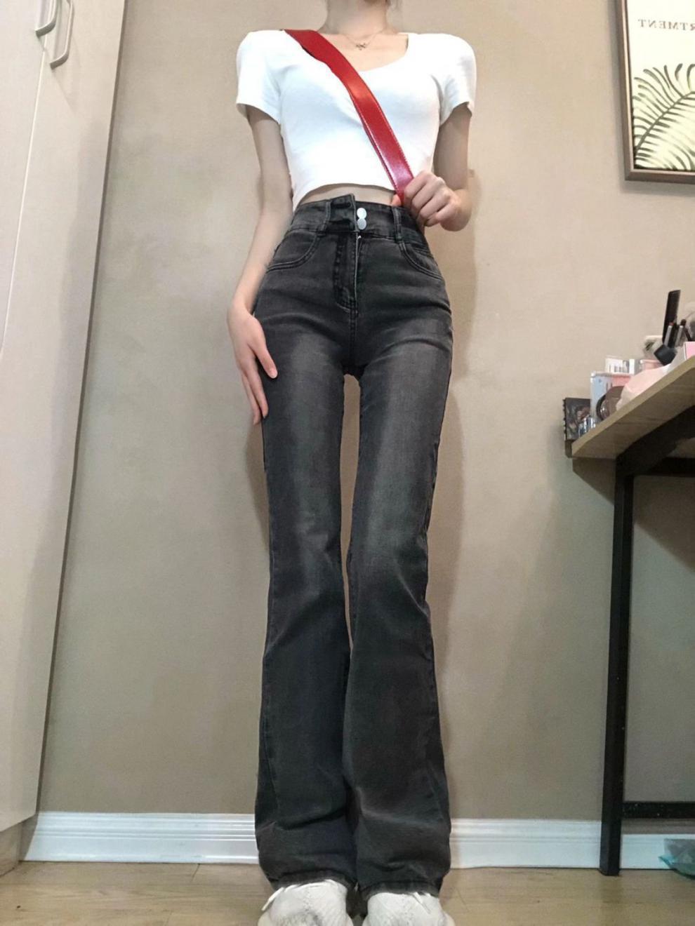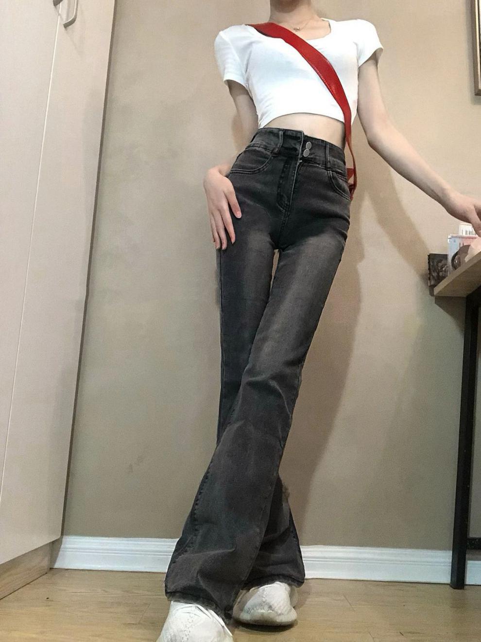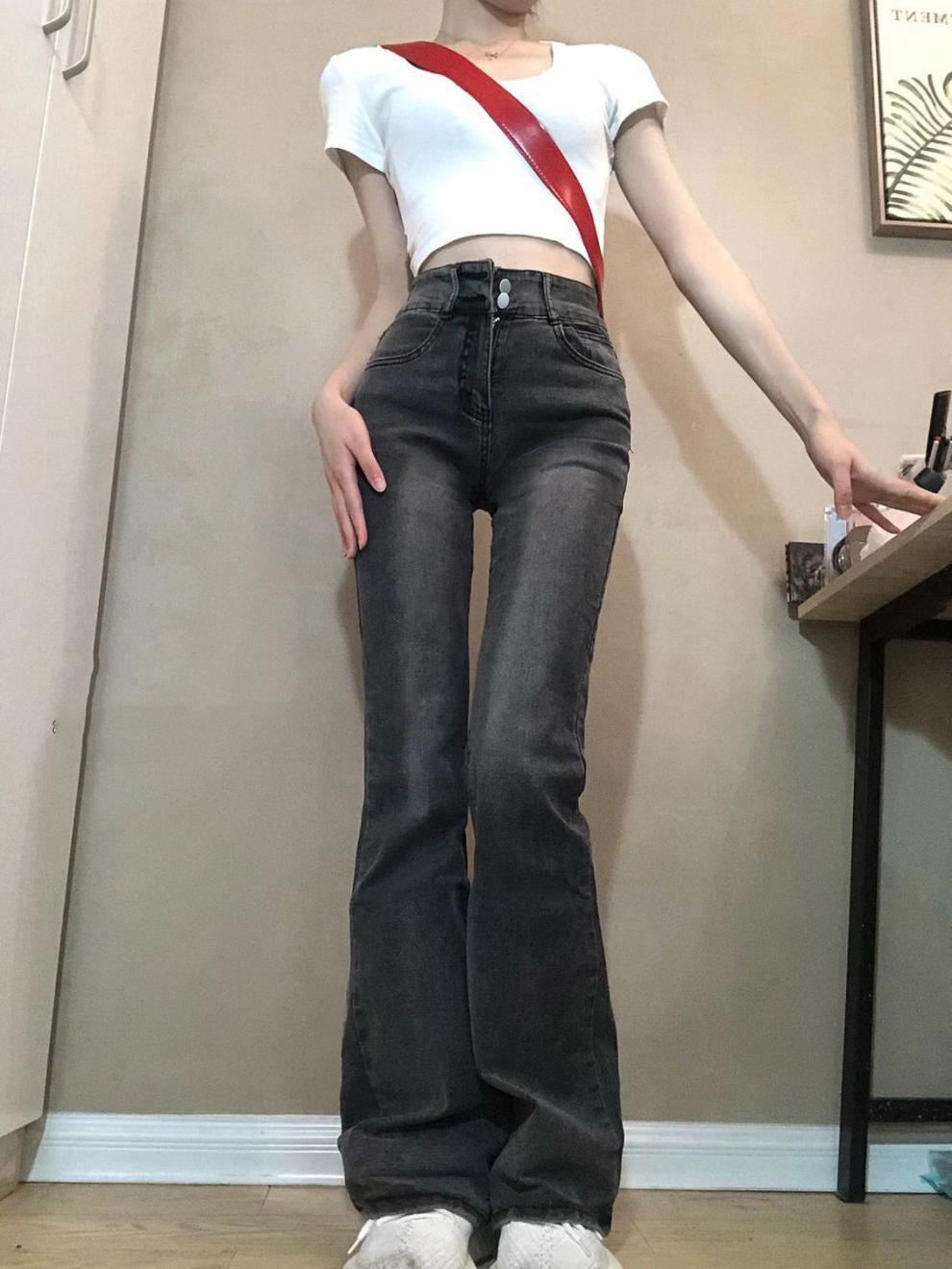 Vaqueros de cintura alta en gris ahumado con microcampana para mujer, primavera y otoño 2023, nuevos pantalones rectos ajustados con diseño de herradura.