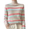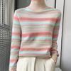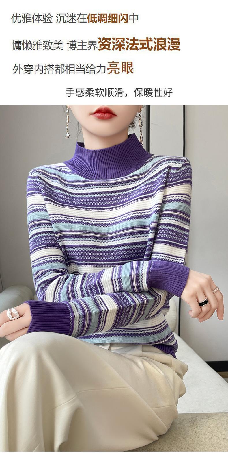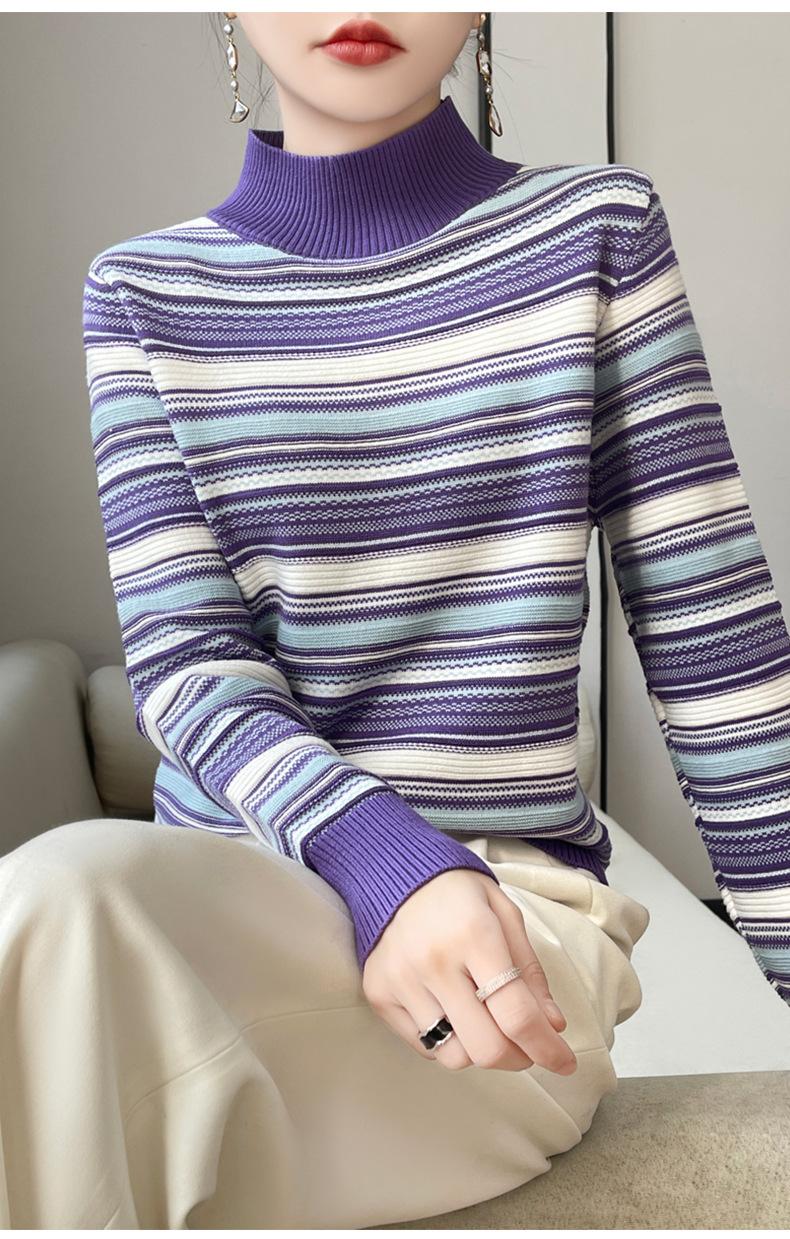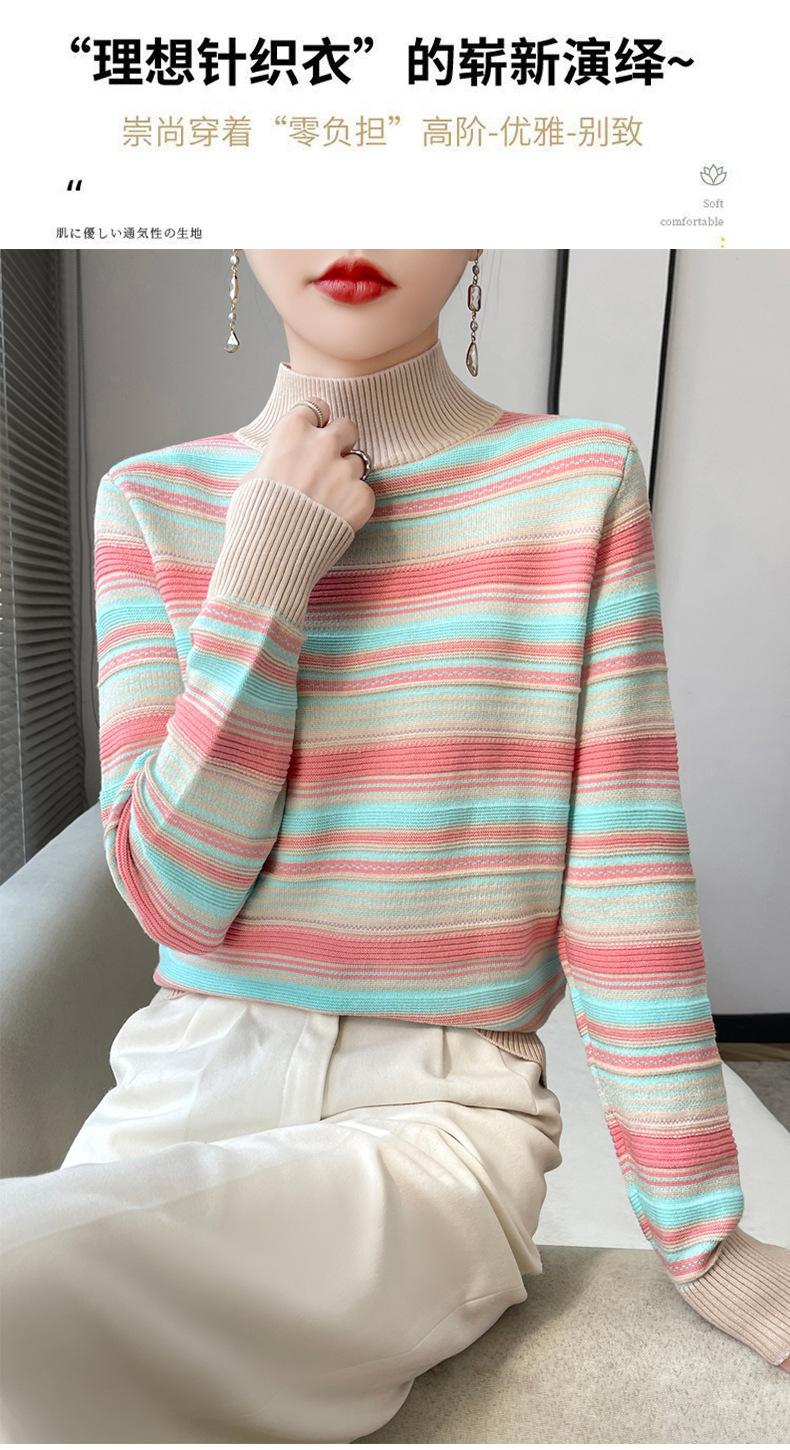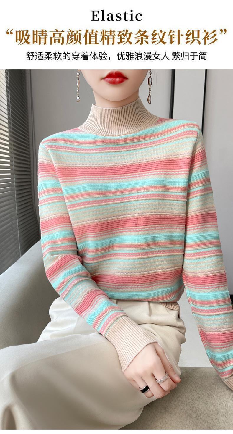 Suéter de Punto de Lana Nueva de Otoño e Invierno con Rayas de Color para Mujer, Base de Cuello Alto, Estilo Étnico para Mujer, Top Grueso para Mujer