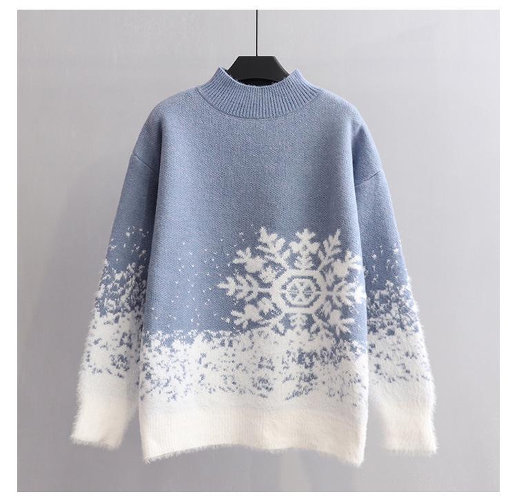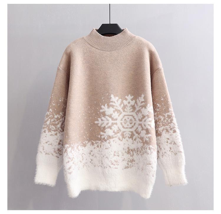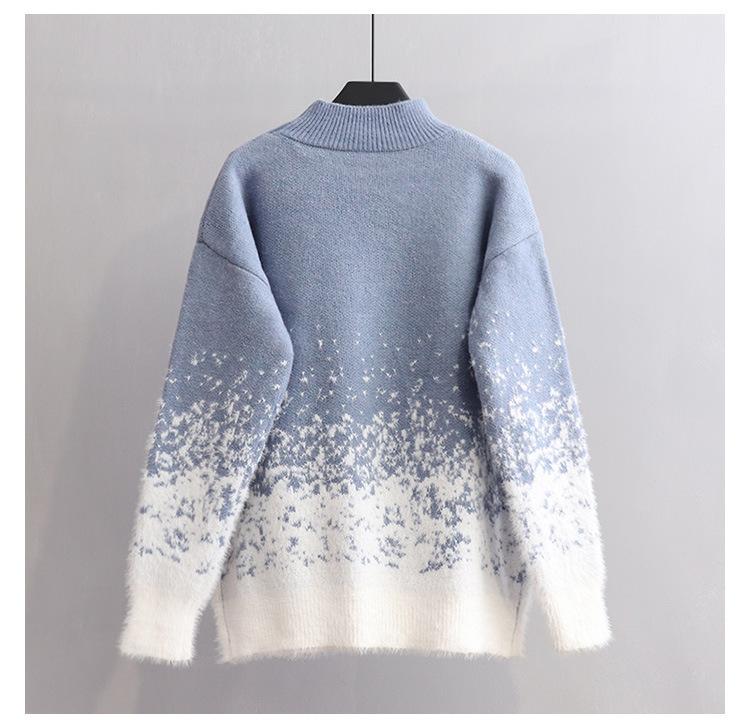 Suéter de terciopelo visón de otoño e invierno de media tortuga para mujer 2023 nuevo estilo coreano holgado estilo perezoso grueso suéter estilo occidental moda