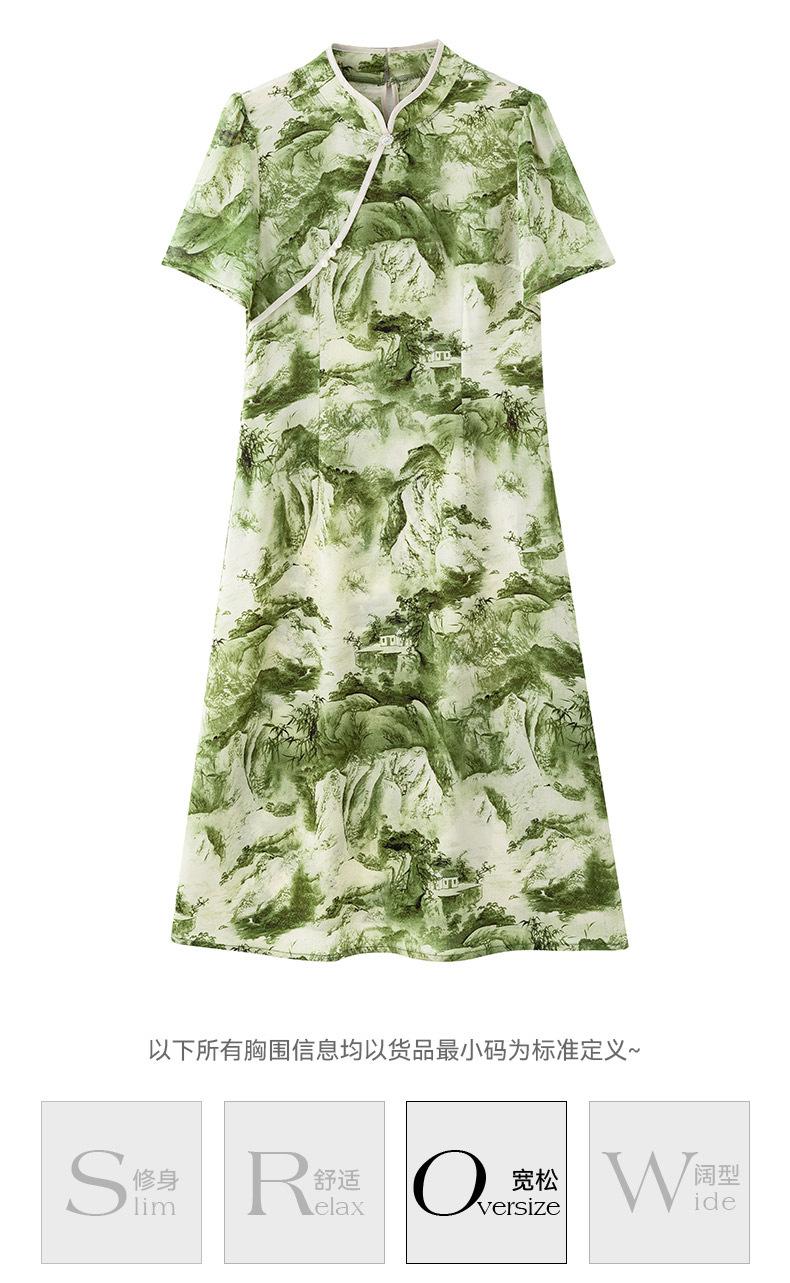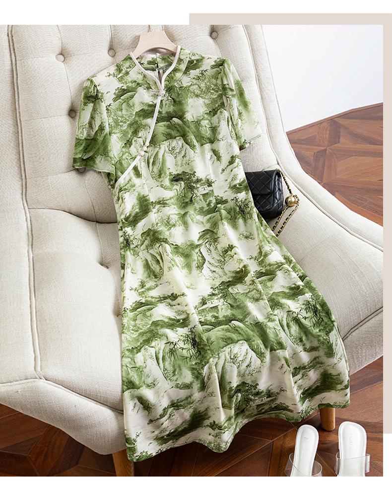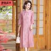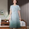 Vestido cheongsam de manga corta de gasa de verano para mamá de alta calidad, ropa para mujer de mediana edad de 45 años, falda fina de longitud media transpirable y fresca.