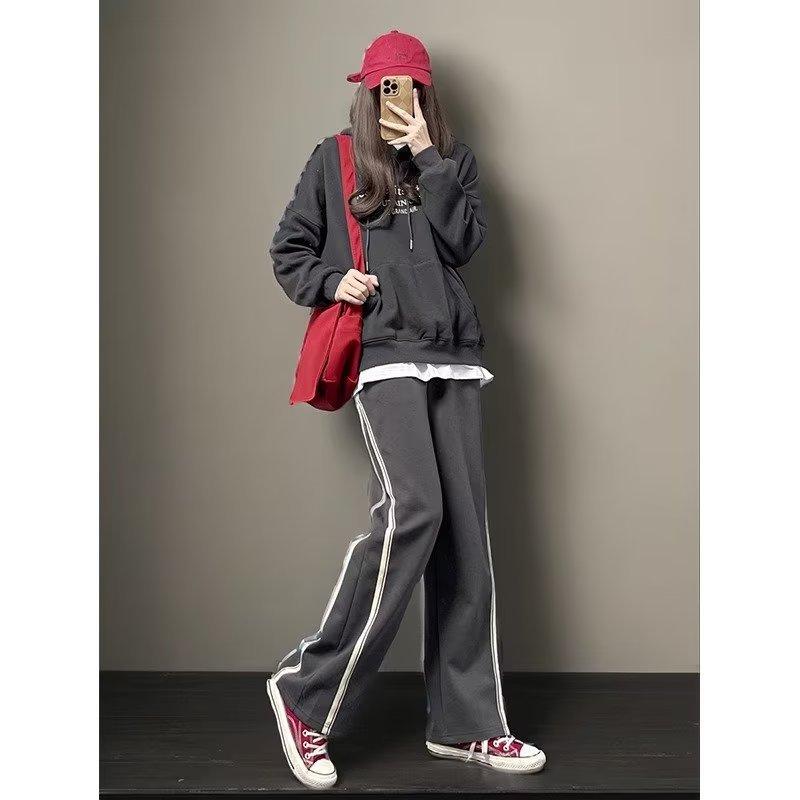 Pantalones deportivos de marca de moda de color sólido estilo americano para mujer, rectos, nuevos pantalones deportivos casuales holgados y elegantes, pantalones de pierna ancha que combinan con todo.