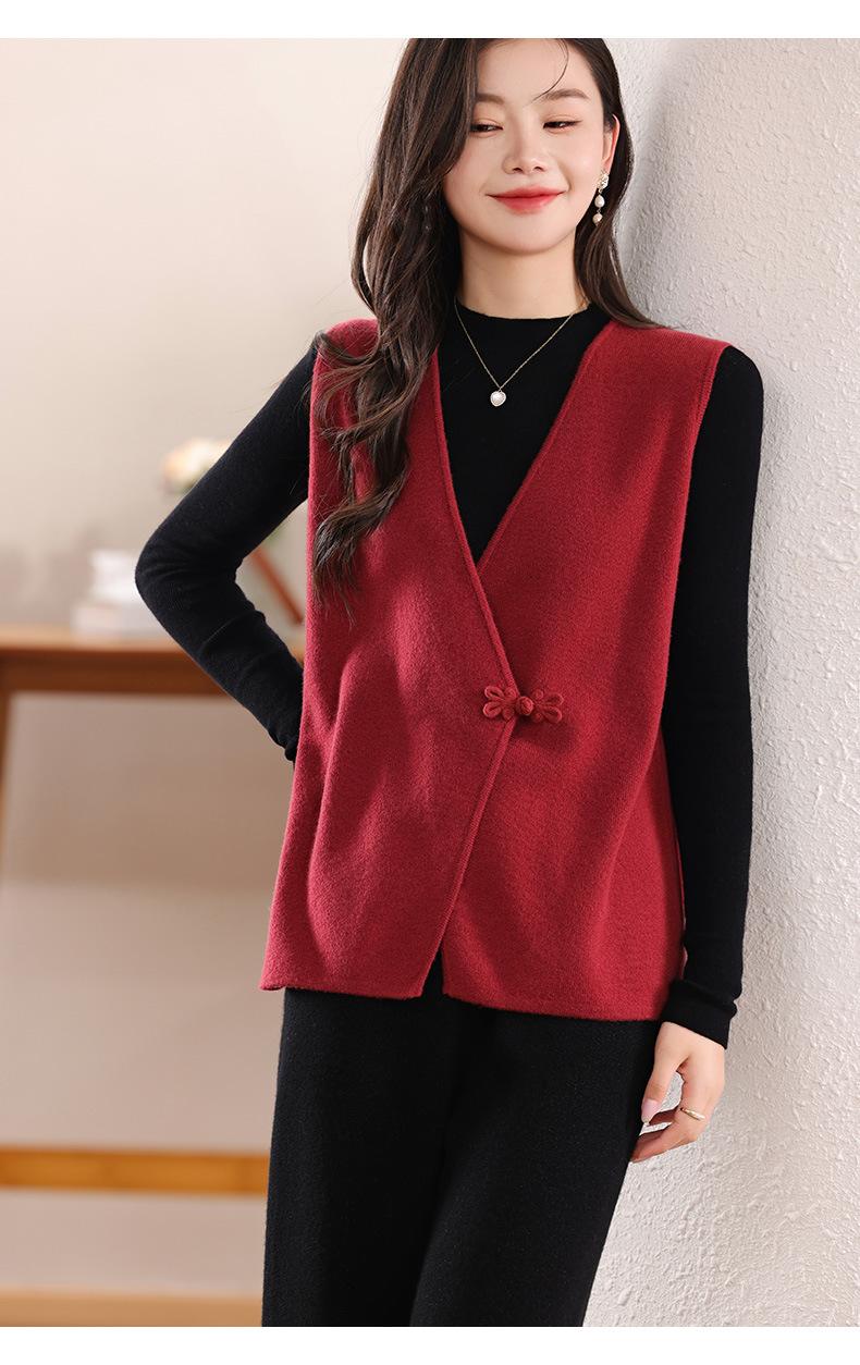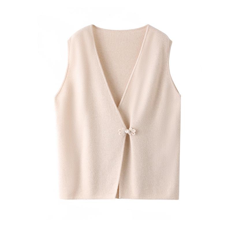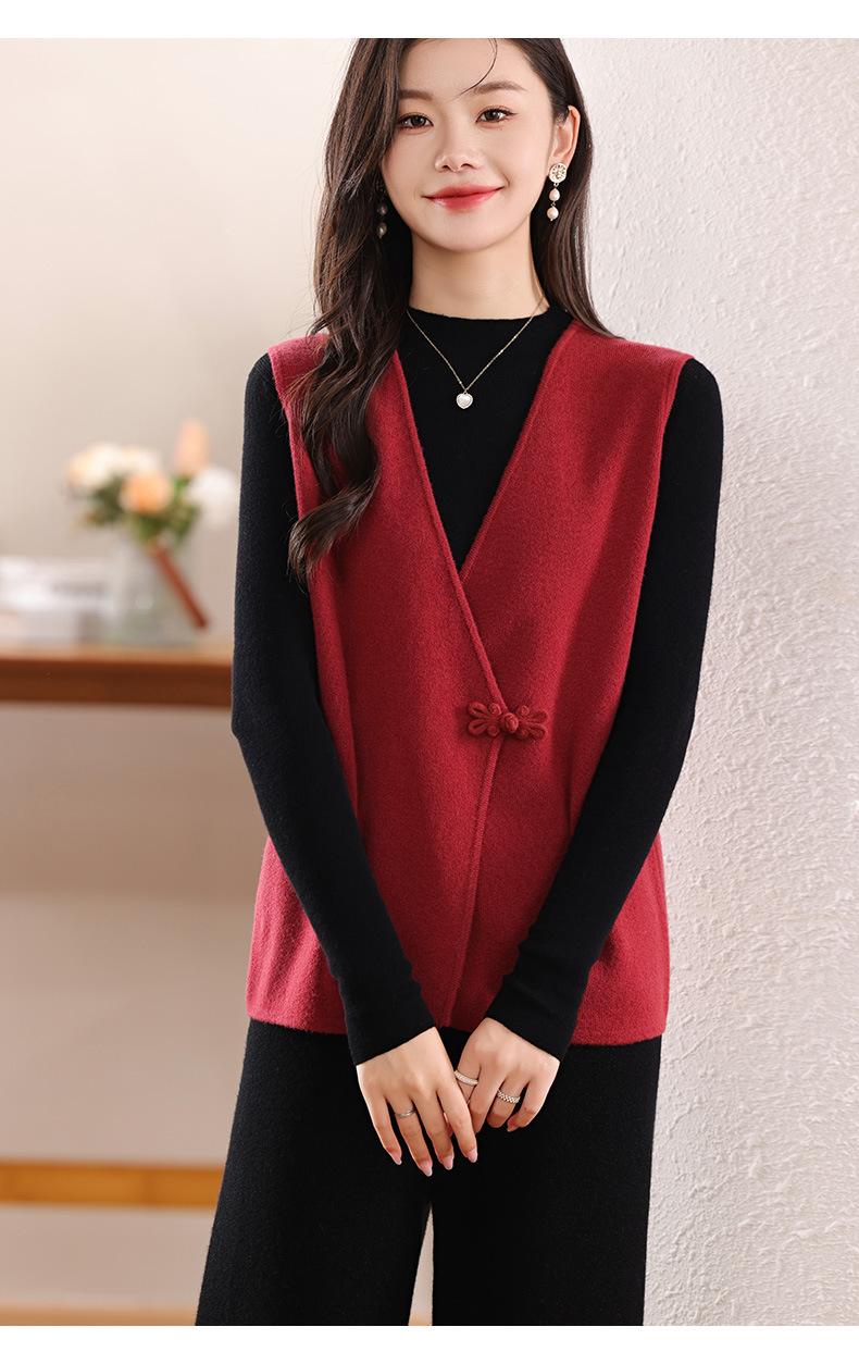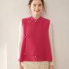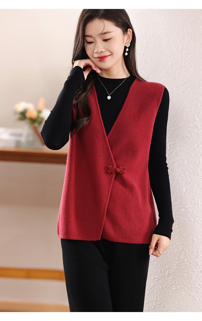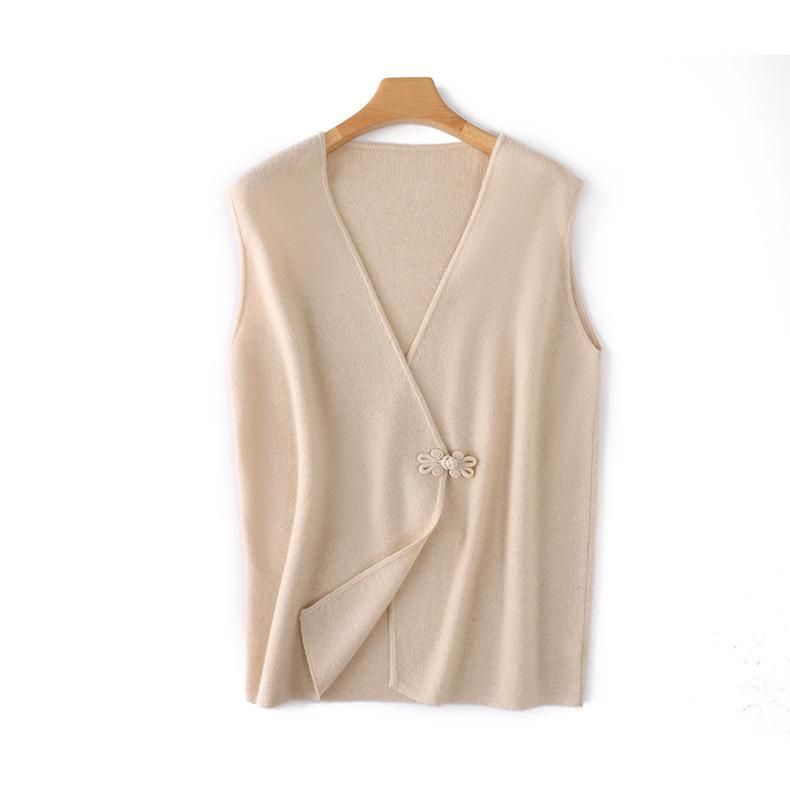 Chaleco Nuevo de Lana Nueva con Hebilla de Estilo Chino Chaleco para Mujer Cuello en V Hebilla de Mariposa Cárdigan Chaleco Otoño e Invierno Suéter sin Mangas