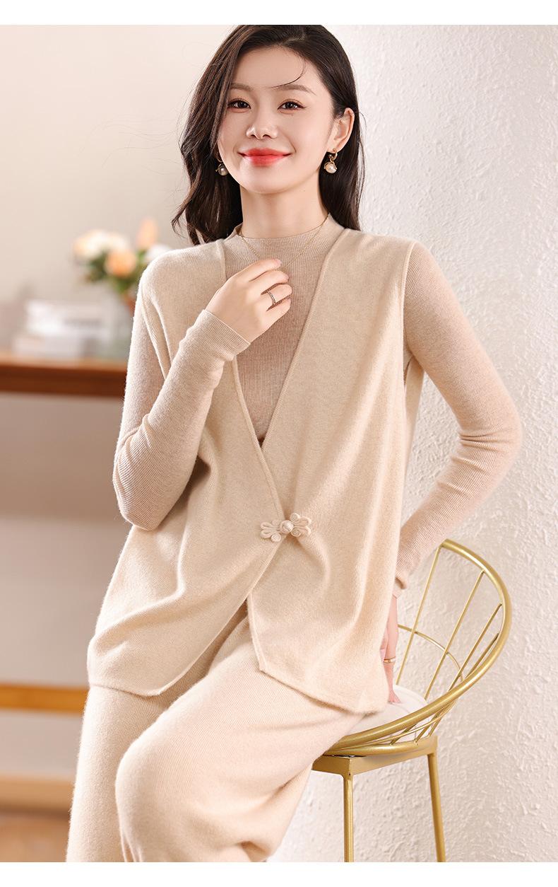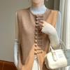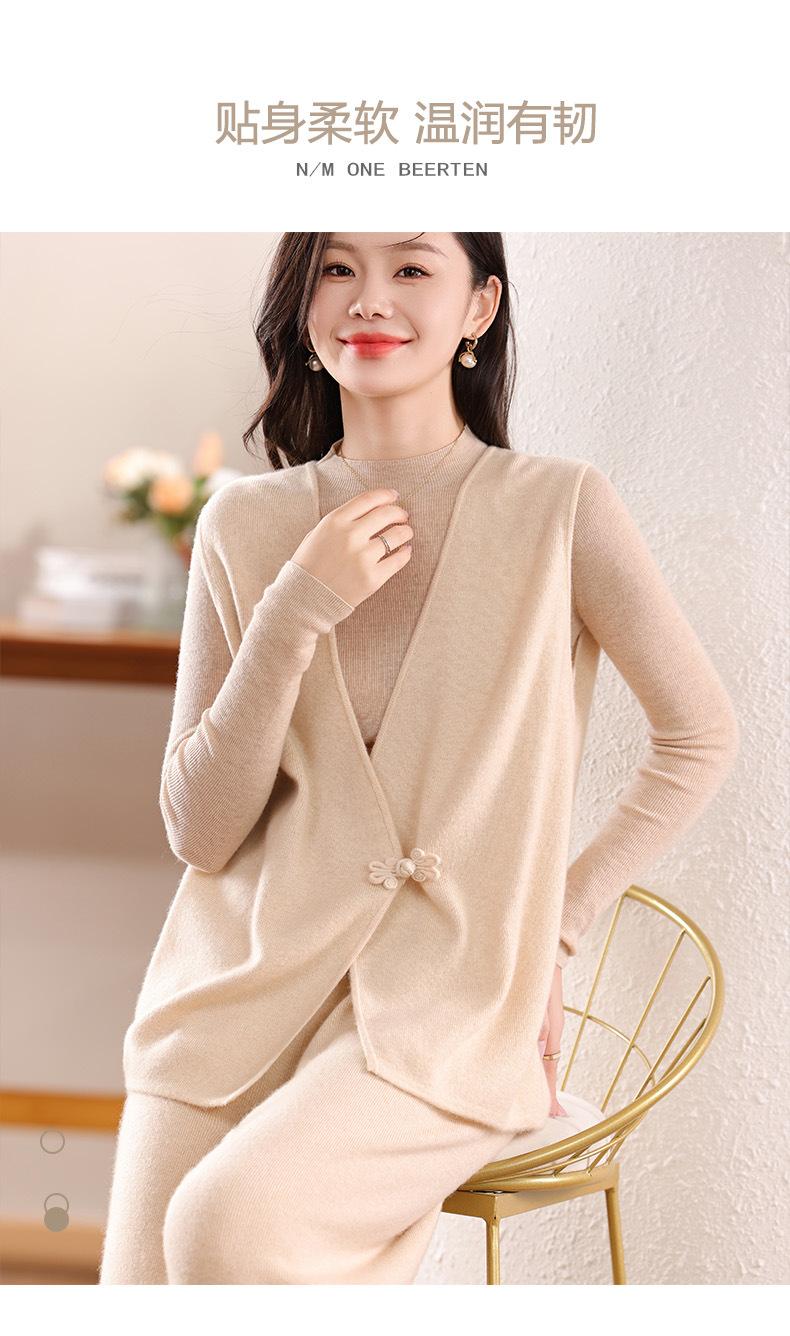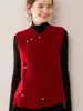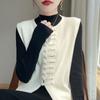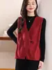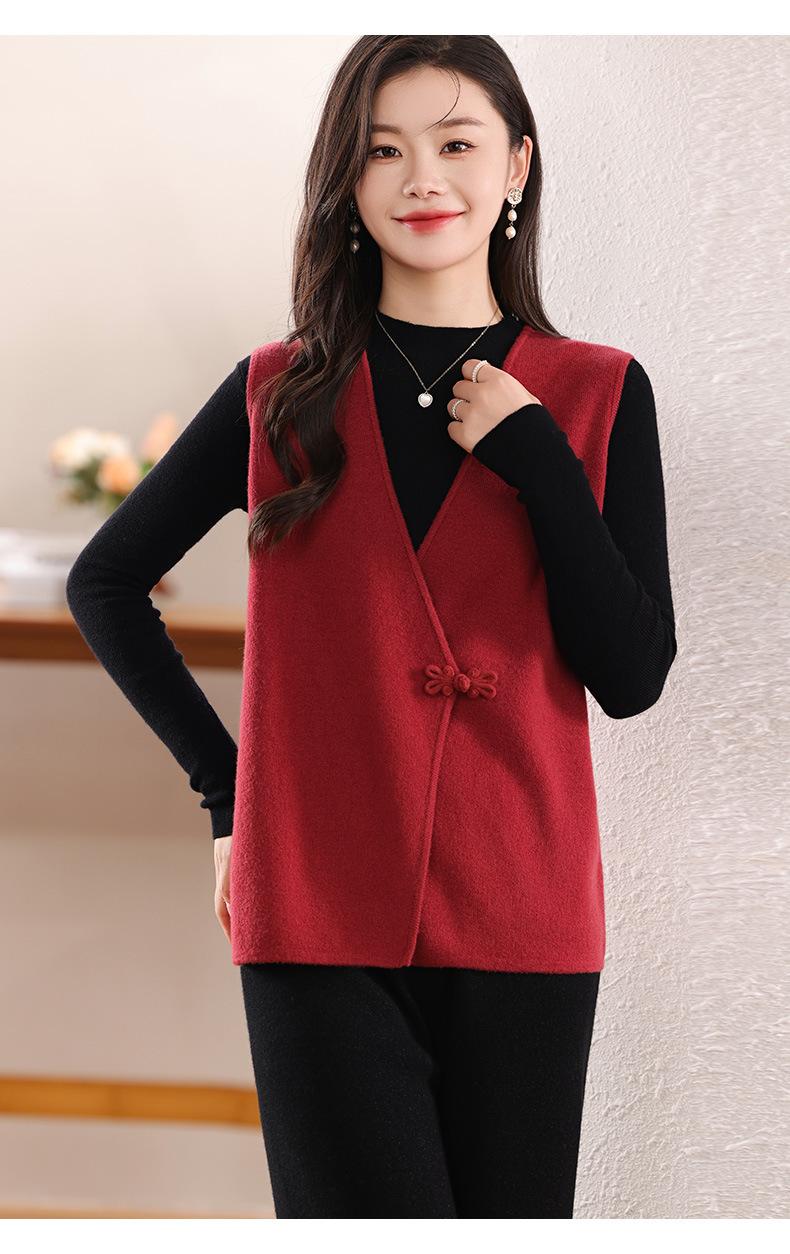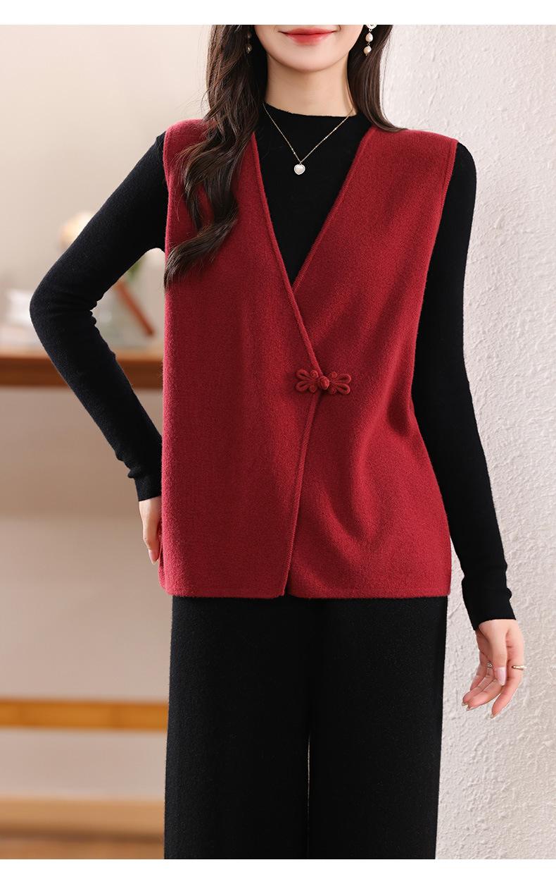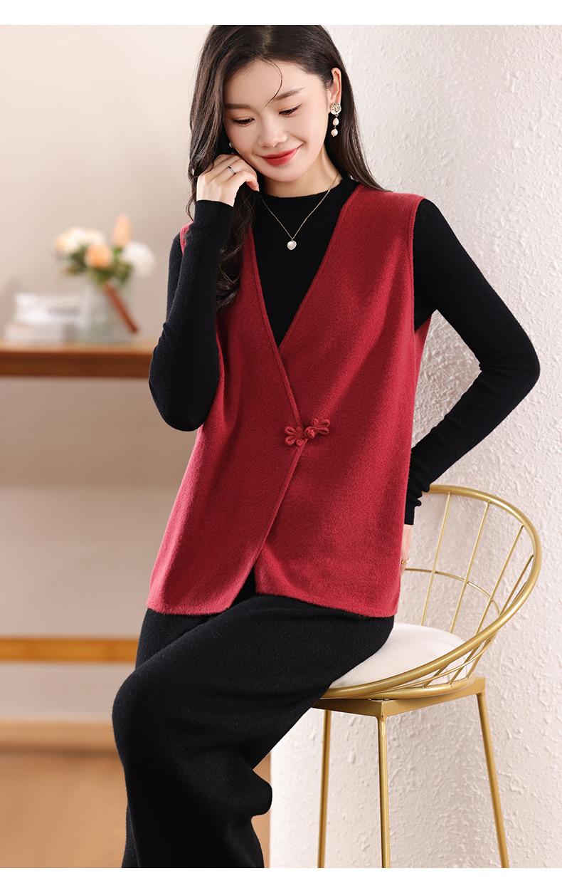 Chaleco Nuevo de Lana Nueva con Hebilla de Estilo Chino Chaleco para Mujer Cuello en V Hebilla de Mariposa Cárdigan Chaleco Otoño e Invierno Suéter sin Mangas