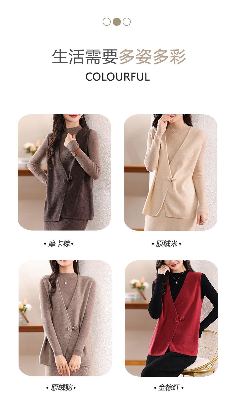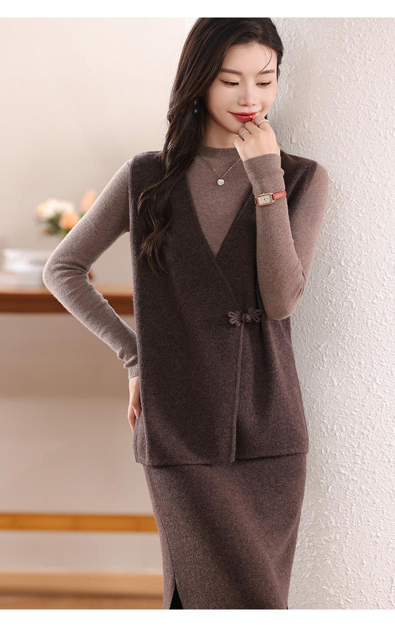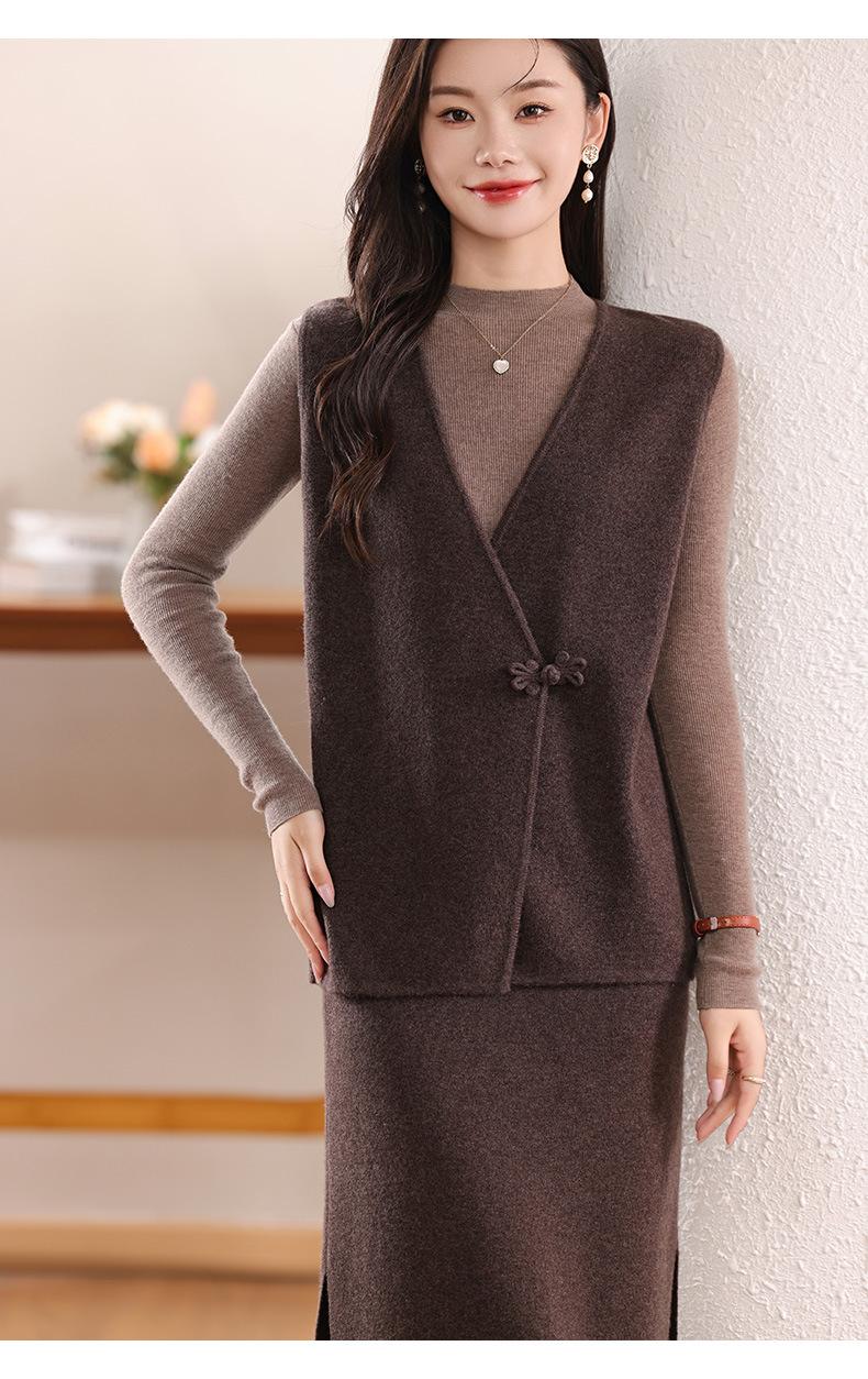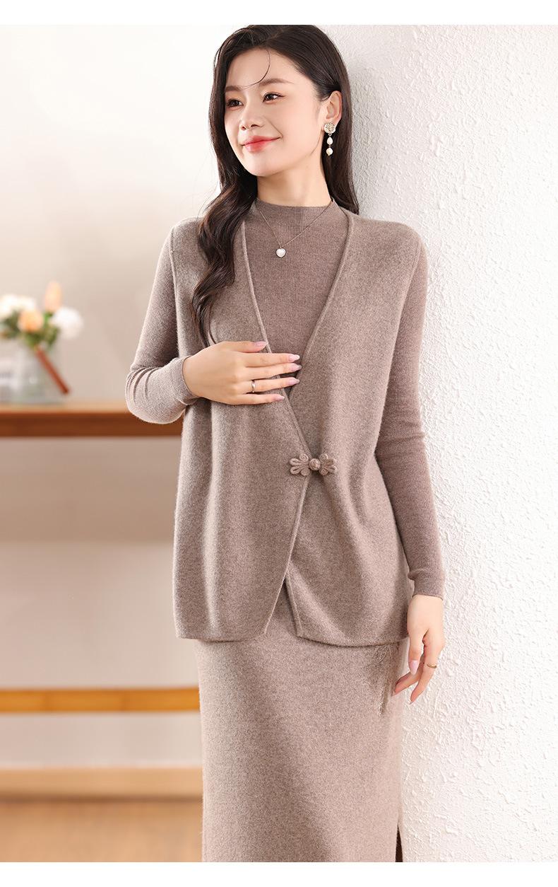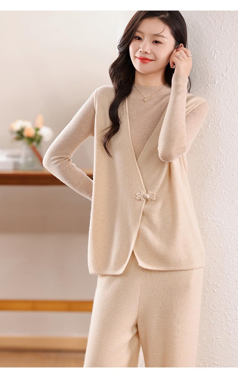Chaleco Nuevo de Lana Nueva con Hebilla de Estilo Chino Chaleco para Mujer Cuello en V Hebilla de Mariposa Cárdigan Chaleco Otoño e Invierno Suéter sin Mangas