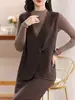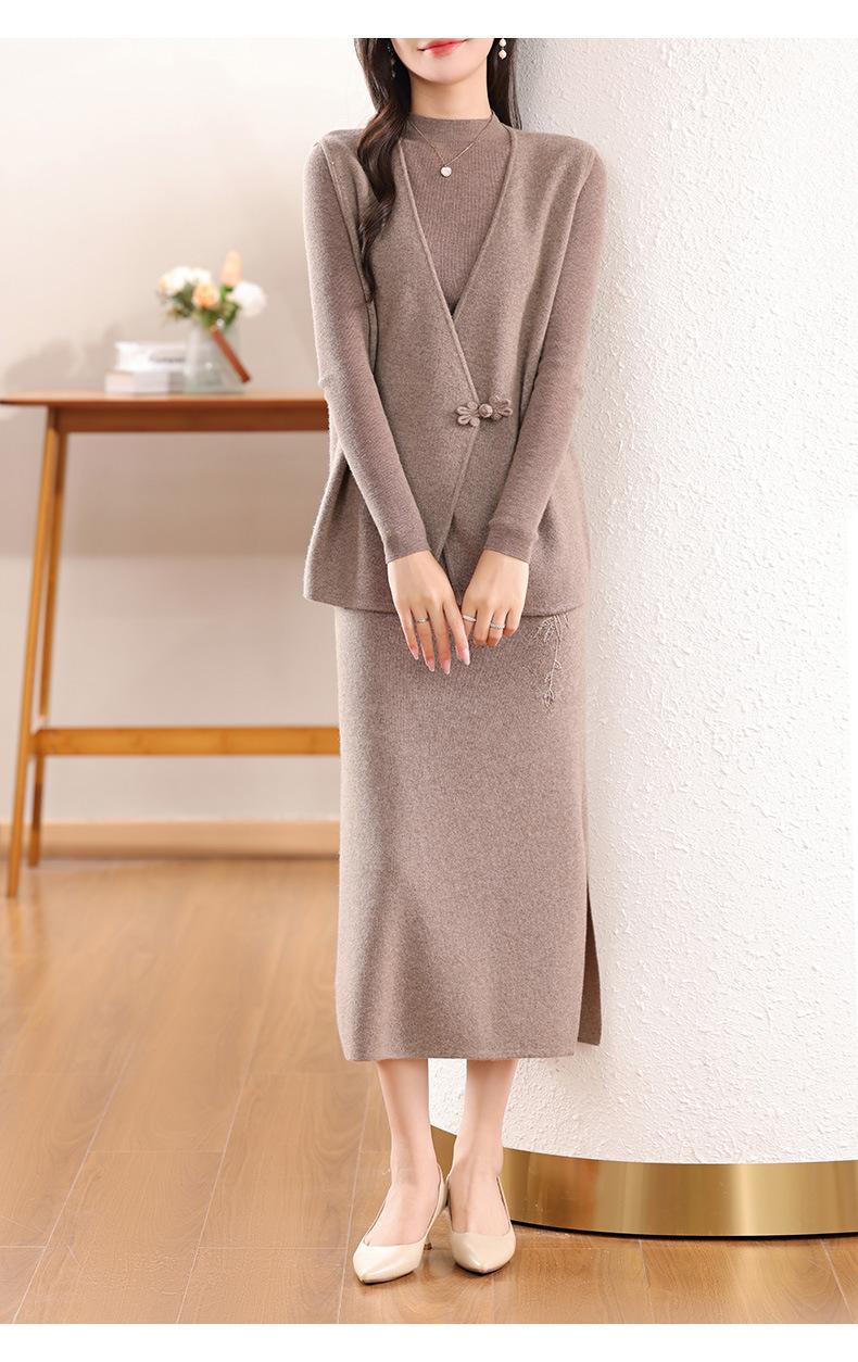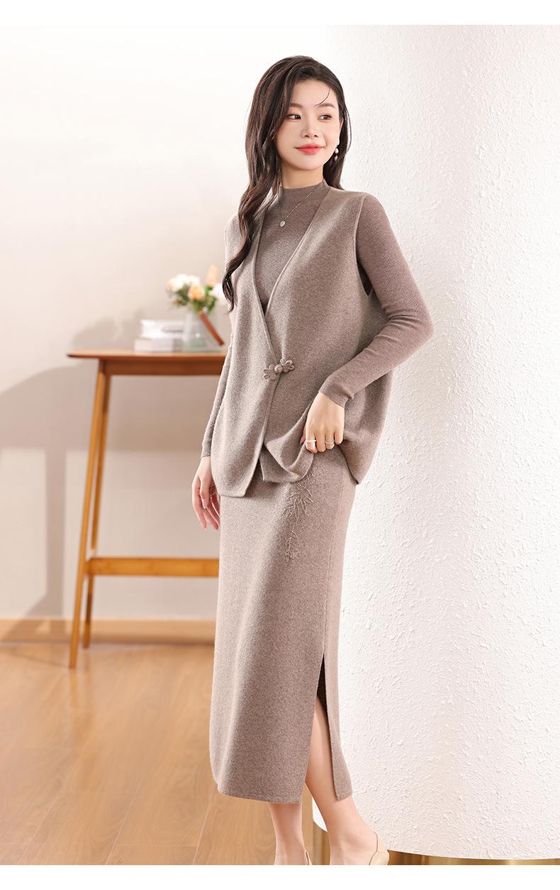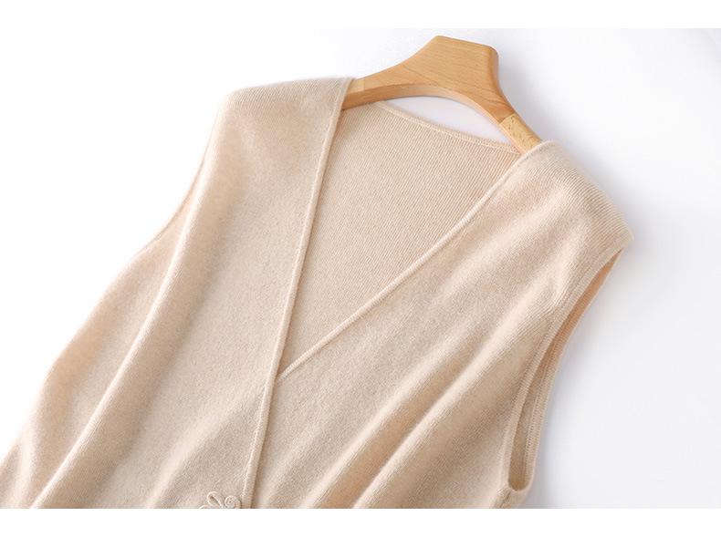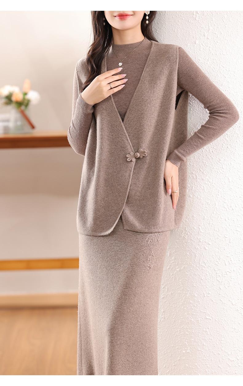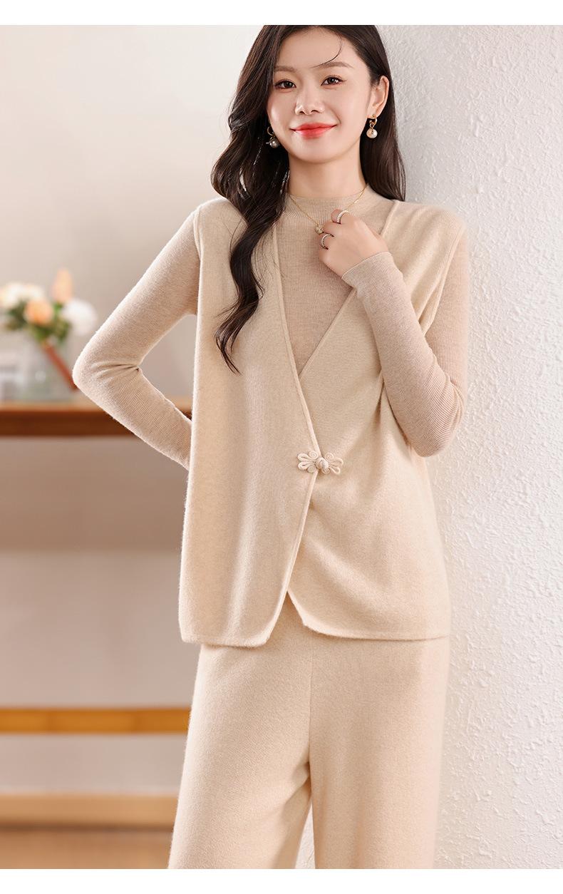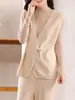 Chaleco Nuevo de Lana Nueva con Hebilla de Estilo Chino Chaleco para Mujer Cuello en V Hebilla de Mariposa Cárdigan Chaleco Otoño e Invierno Suéter sin Mangas