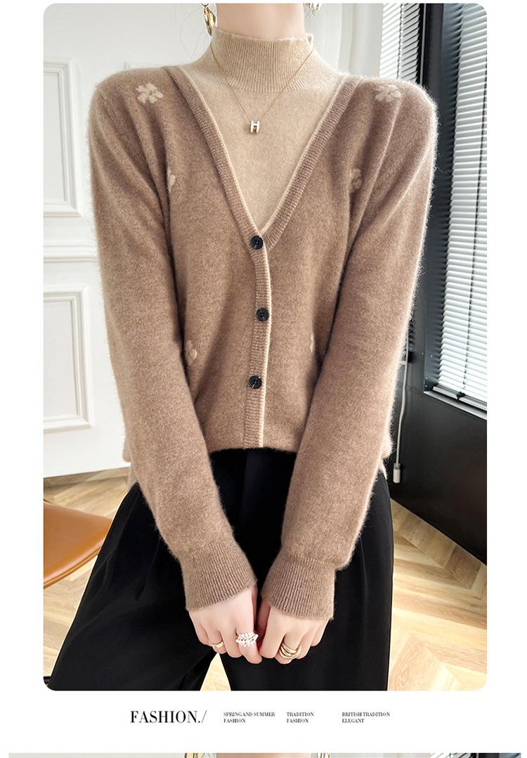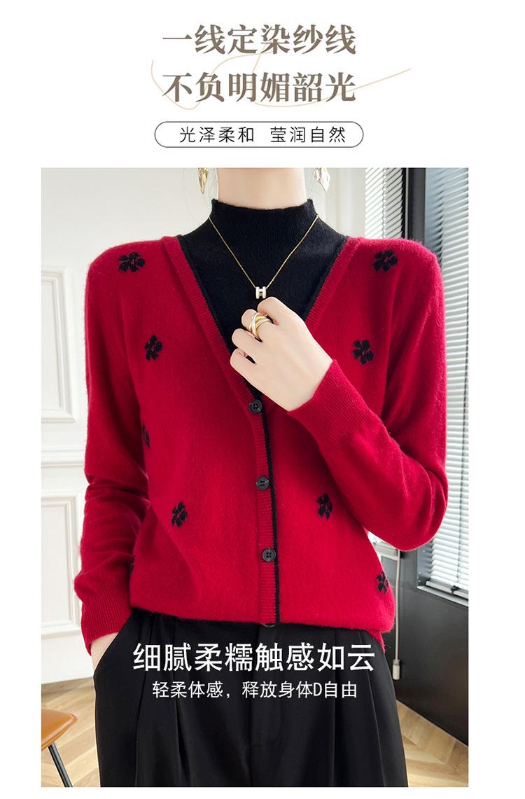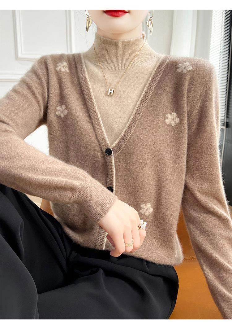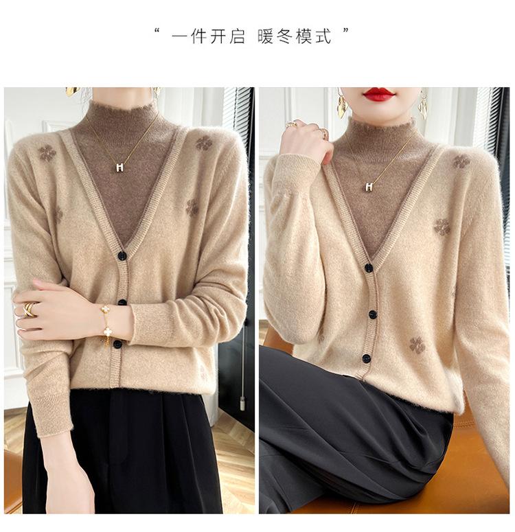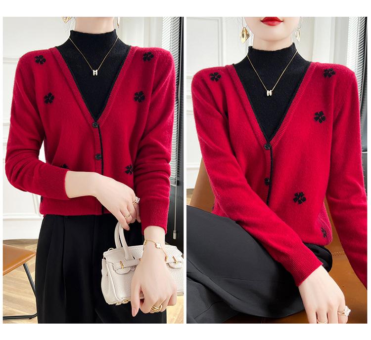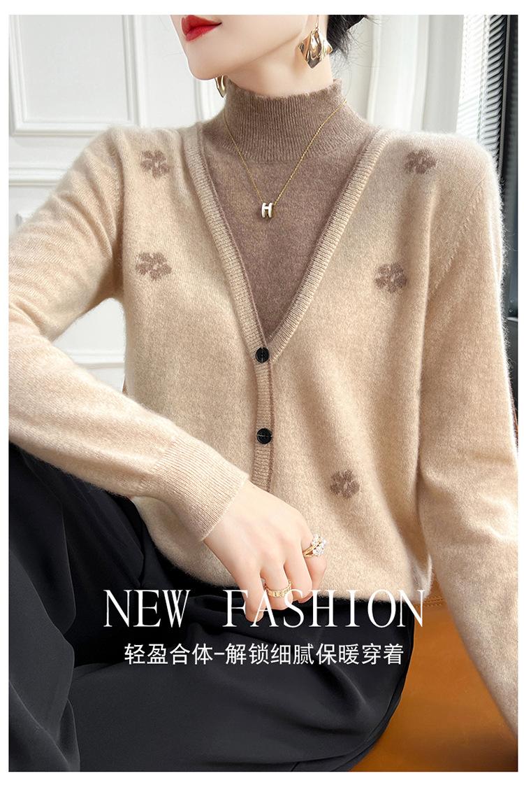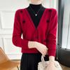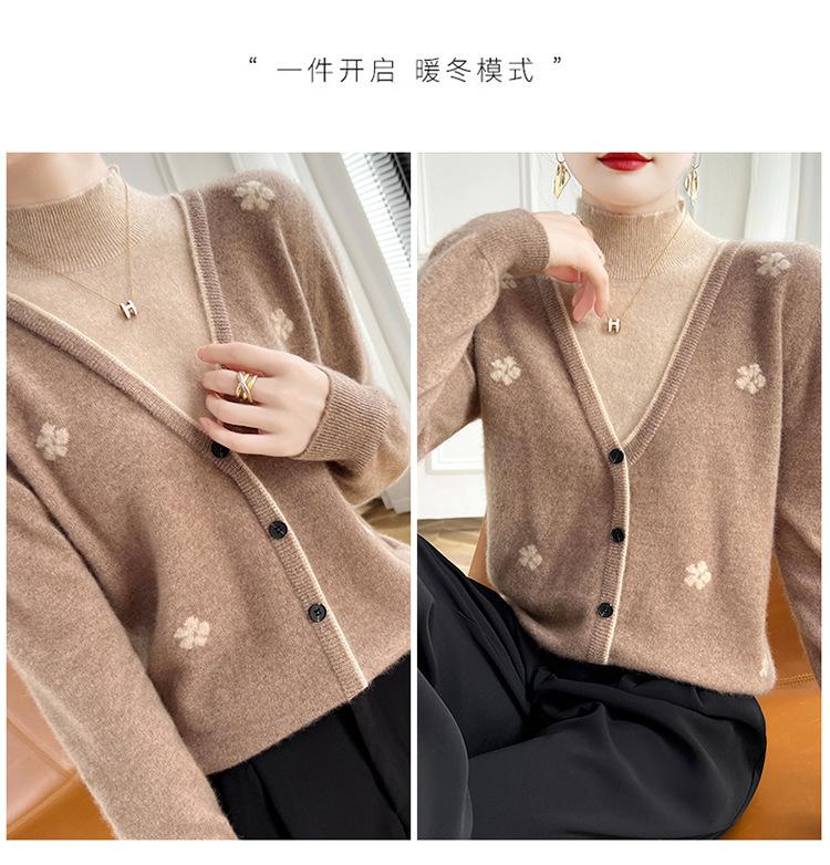 Suéter de lana virgen para mujer, cárdigan de punto de cachemira estilo occidental, holgado, de dos piezas, con cuello en V, estilo jacquard, de moda, de manga larga, para otoño e invierno.