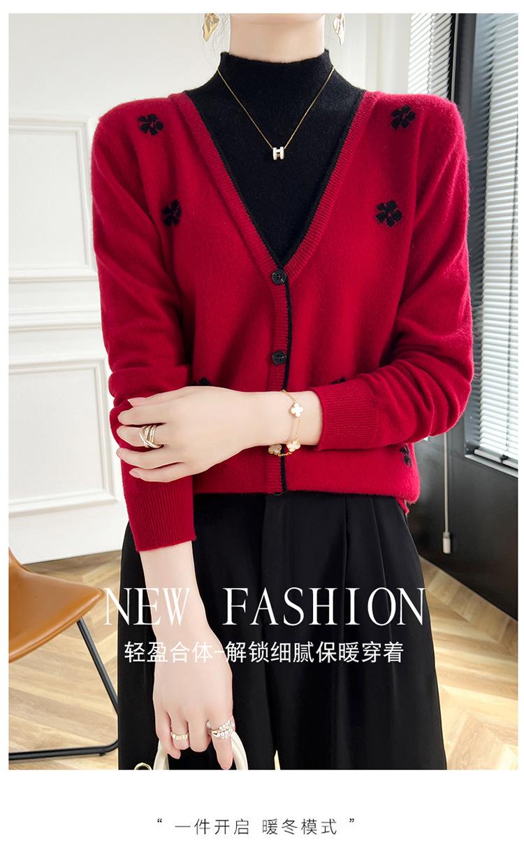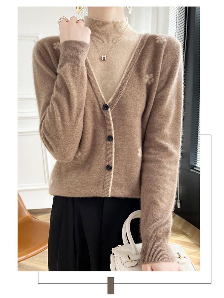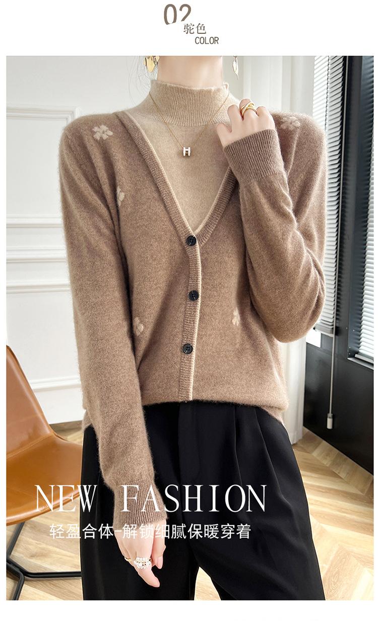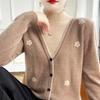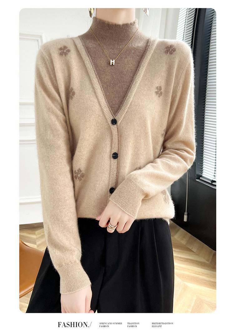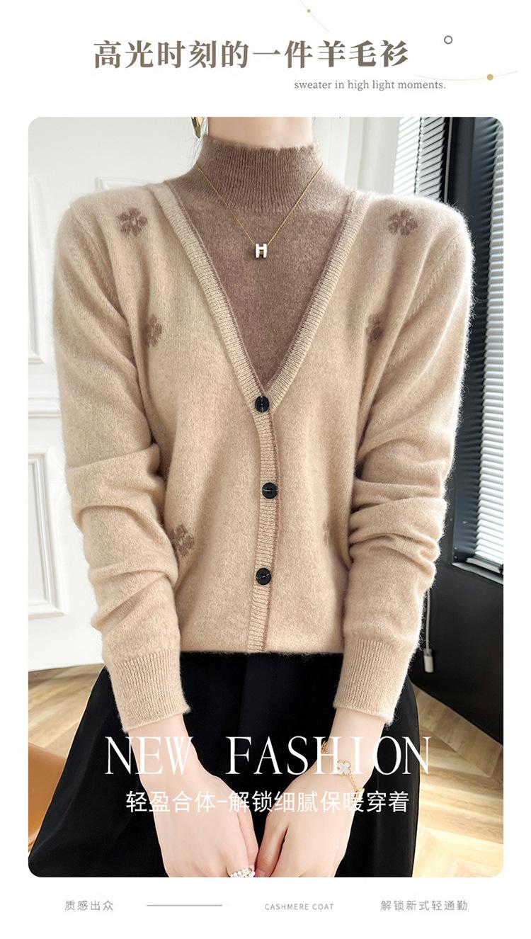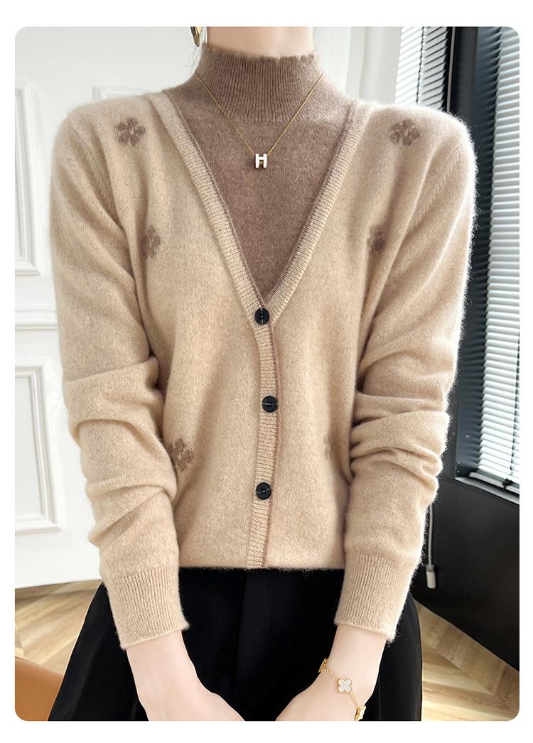 Suéter de lana virgen para mujer, cárdigan de punto de cachemira estilo occidental, holgado, de dos piezas, con cuello en V, estilo jacquard, de moda, de manga larga, para otoño e invierno.