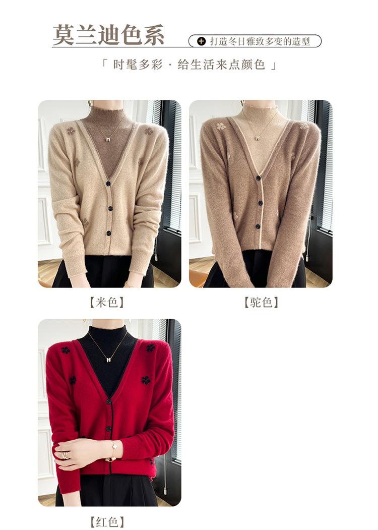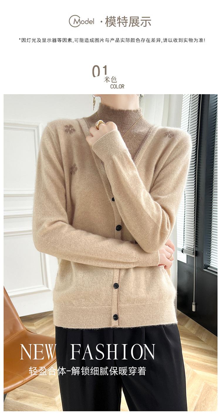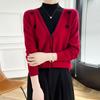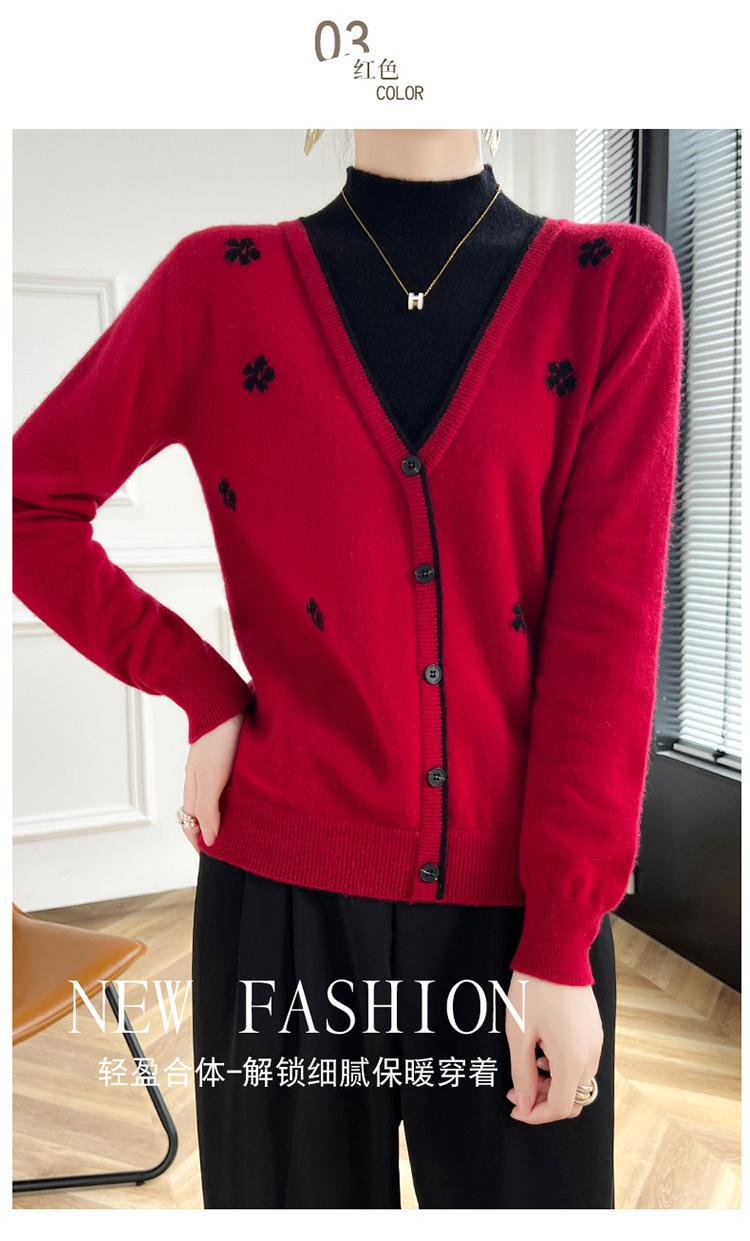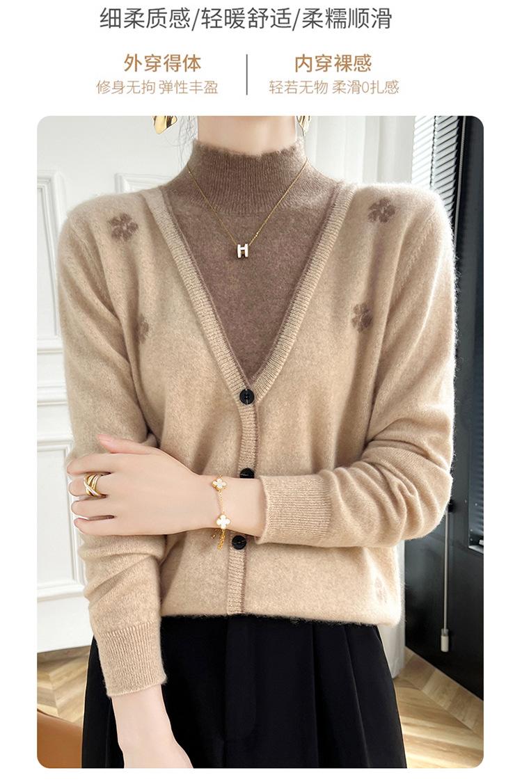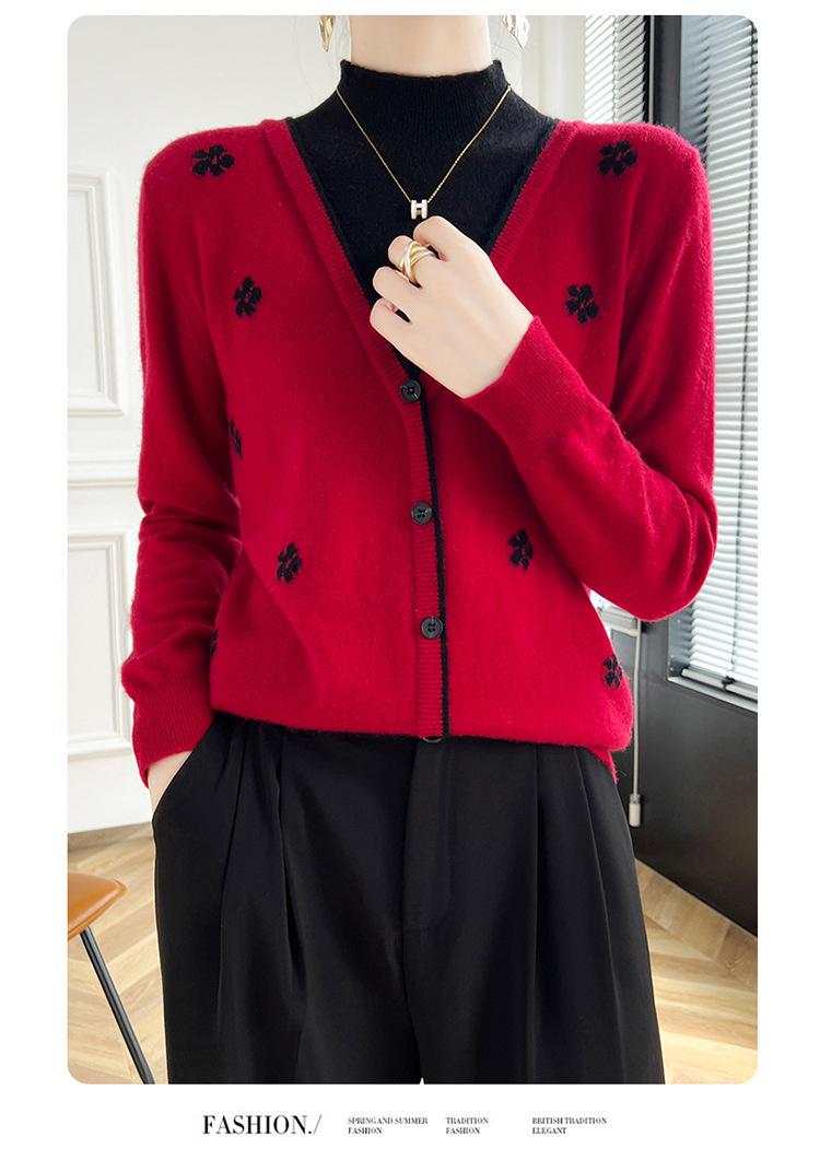 Suéter de lana virgen para mujer, cárdigan de punto de cachemira estilo occidental, holgado, de dos piezas, con cuello en V, estilo jacquard, de moda, de manga larga, para otoño e invierno.