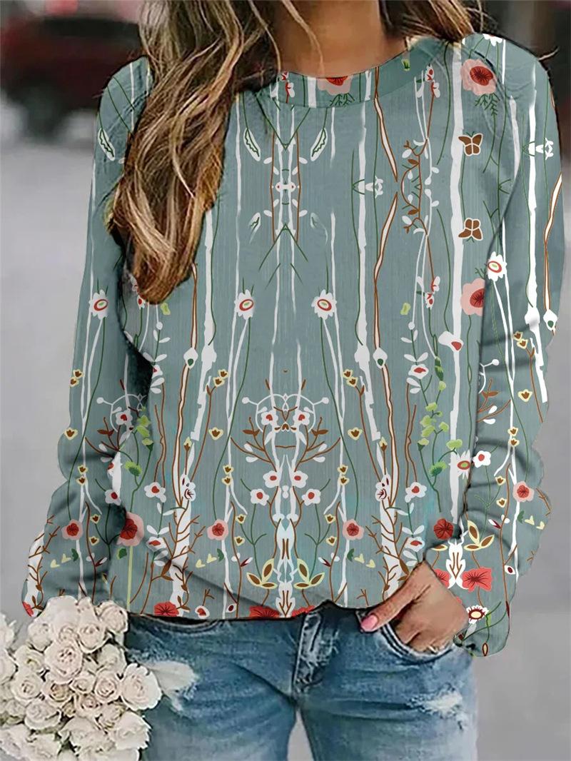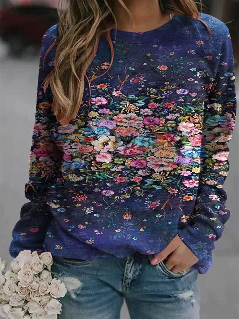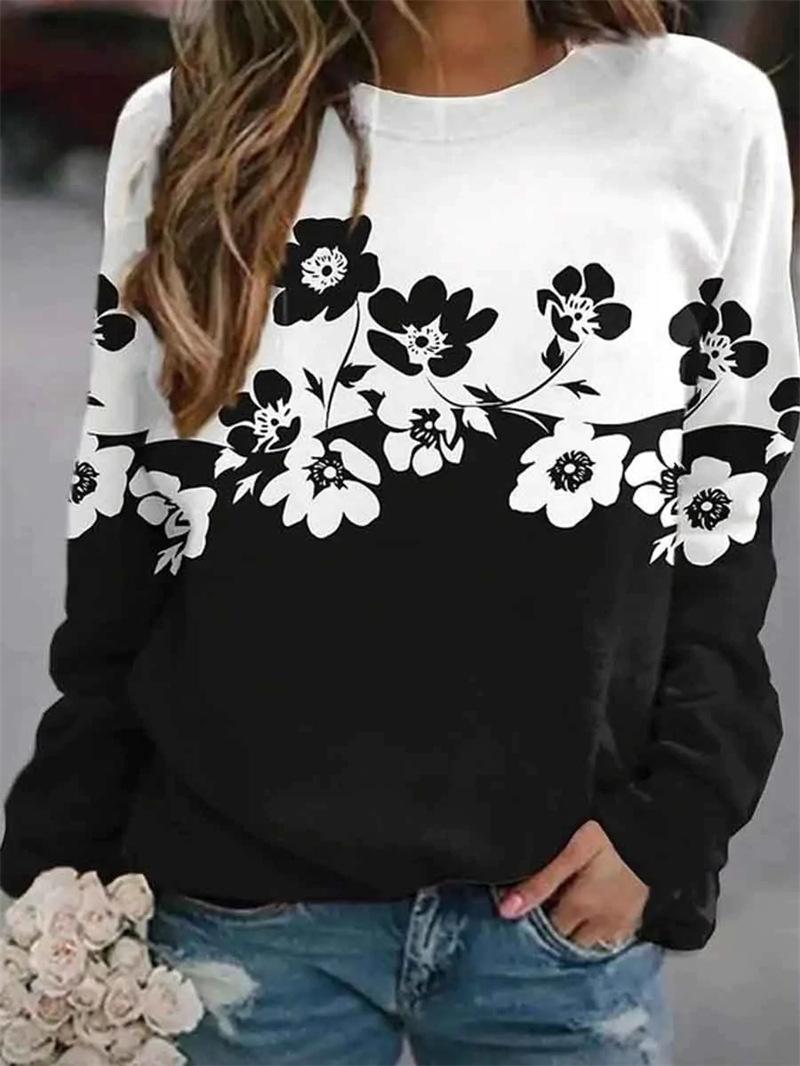 Suéter de manga larga raglán con cuello redondo y flores de otoño e invierno transfronterizo de Europa y América con estampado de flores de Amazon
