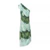 Vestido sexy de verano para mujer, estilo europeo y americano, con aspecto adelgazante, malla sencilla, hombros inclinados y cordón ajustable.