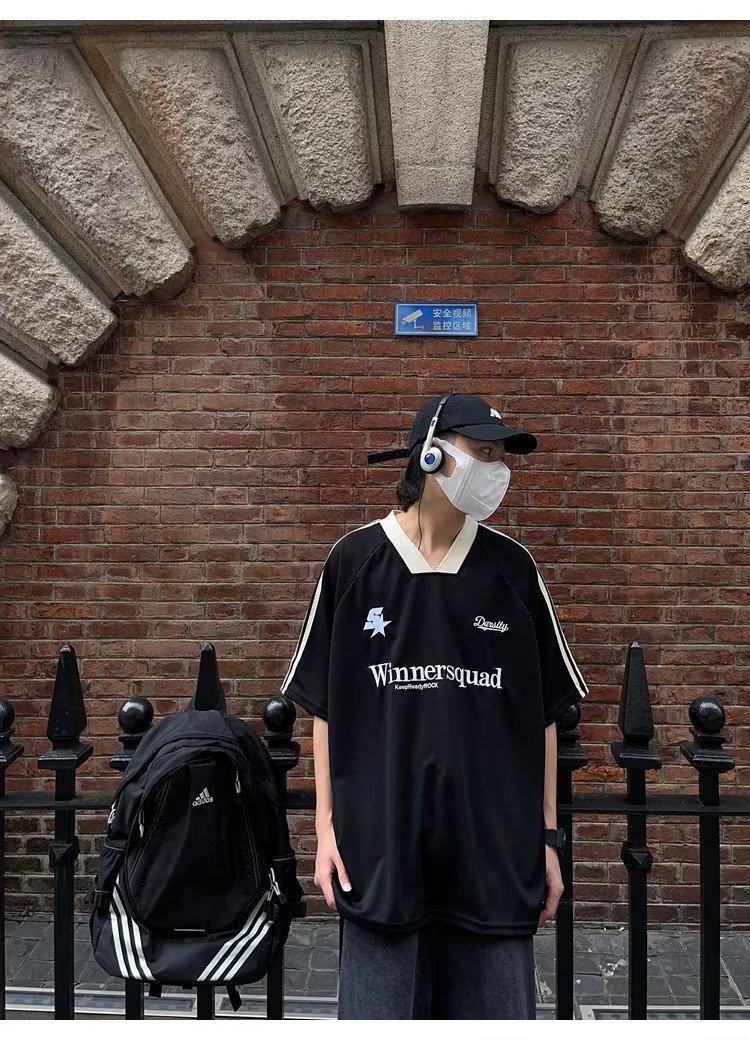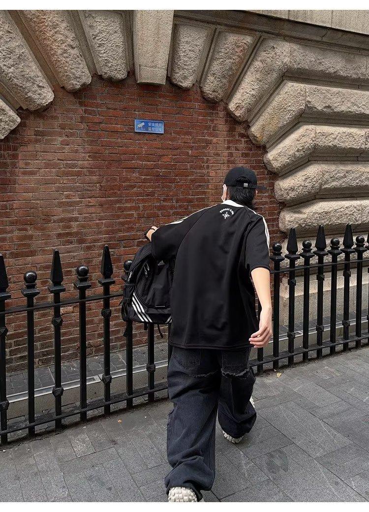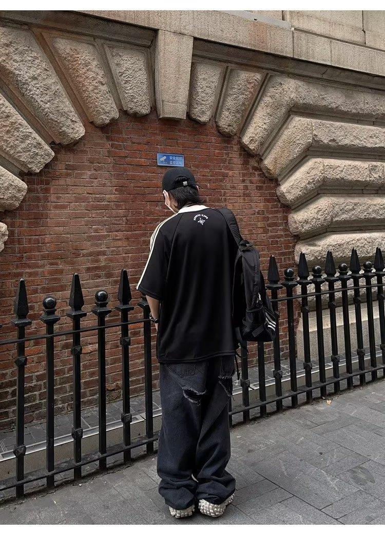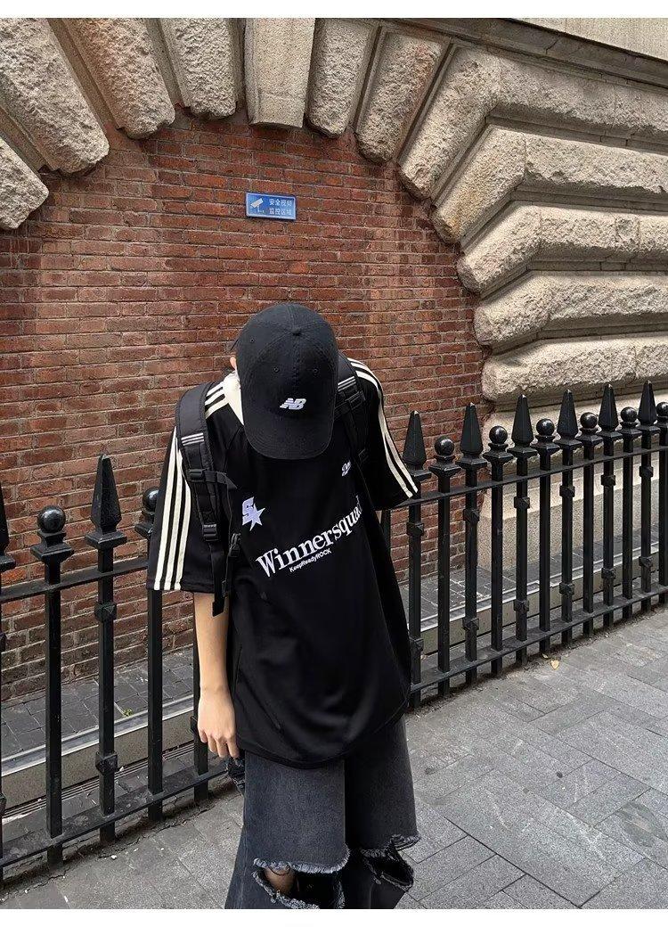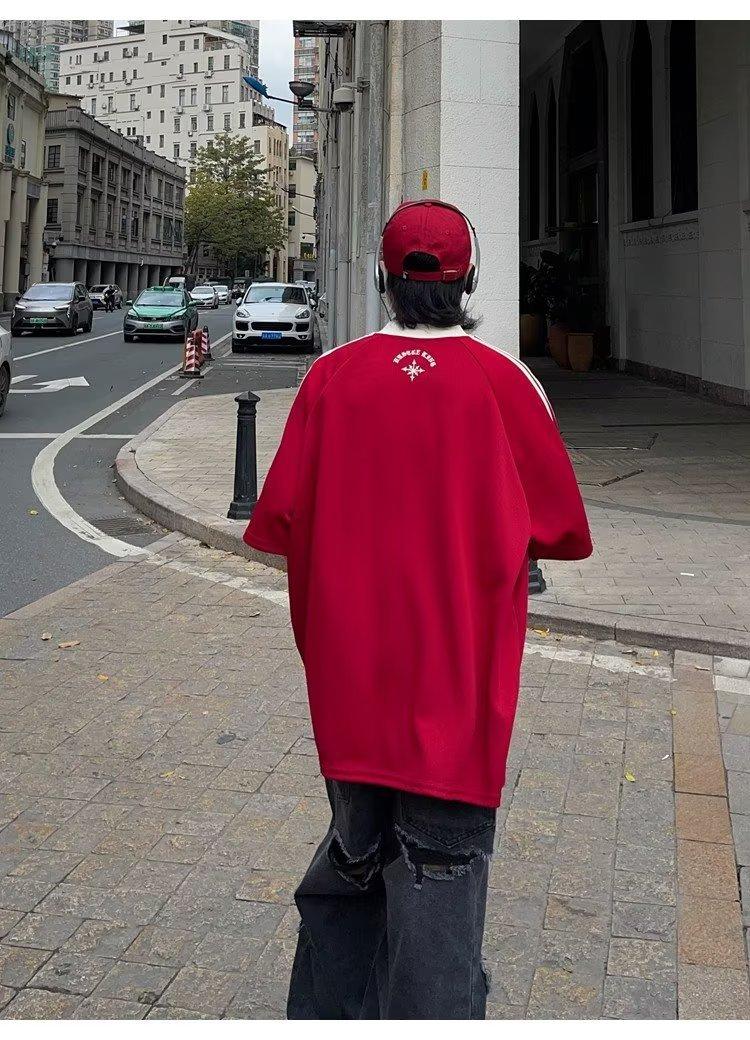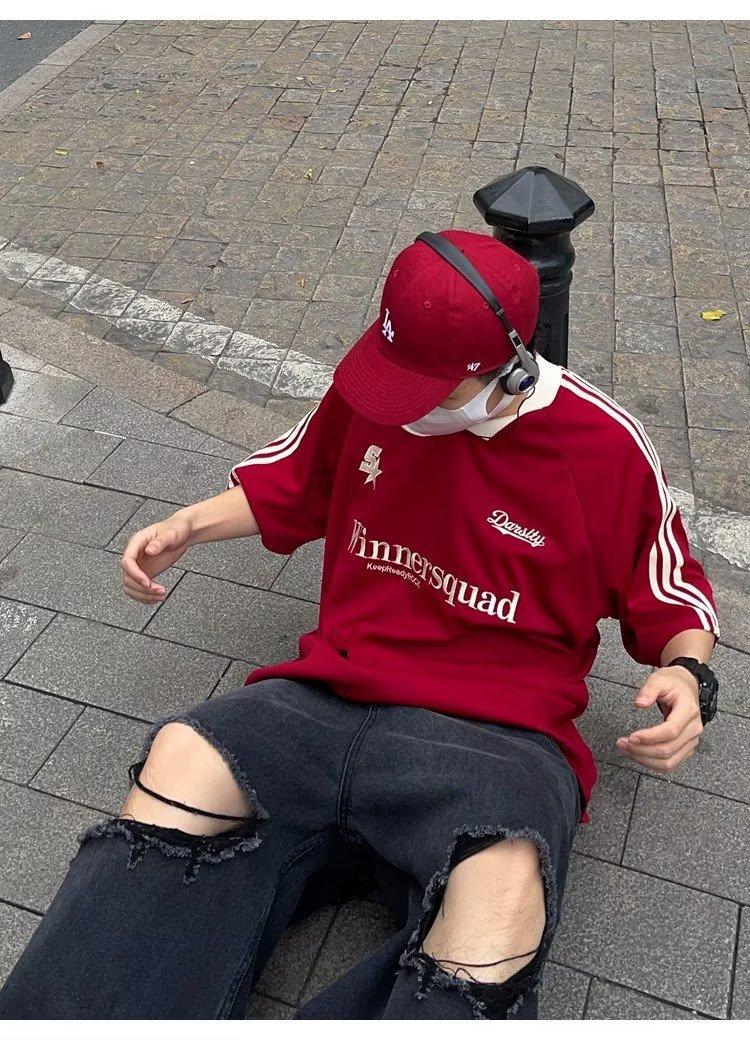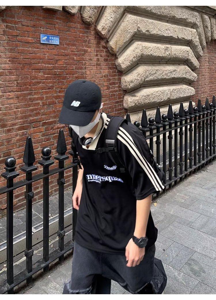 Camiseta de manga corta con costuras de color en contraste para hombre, marca de moda estadounidense de verano, ropa de motociclista de alto sentido, carreras Ruan, hermosa media manga