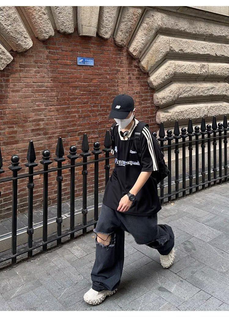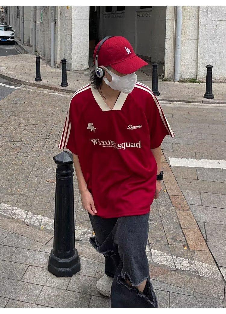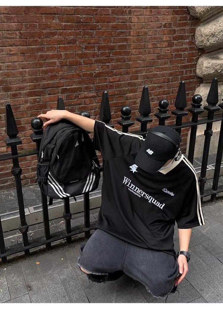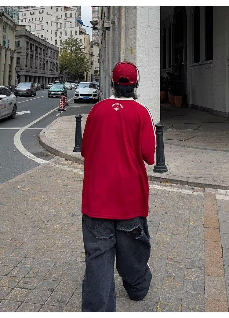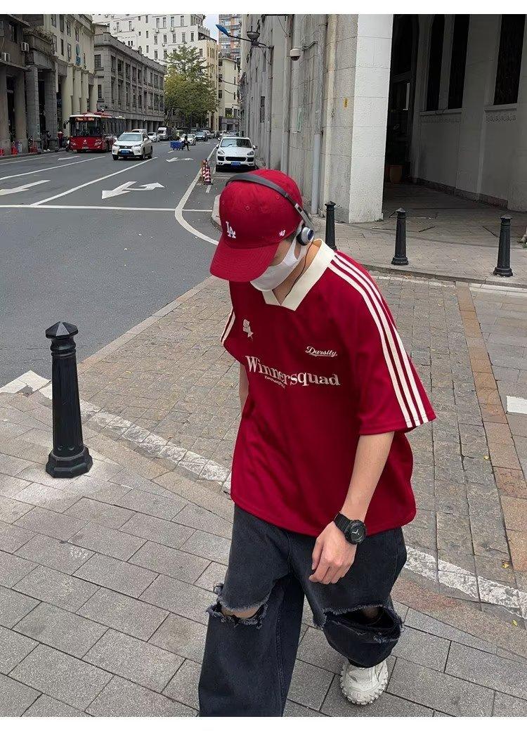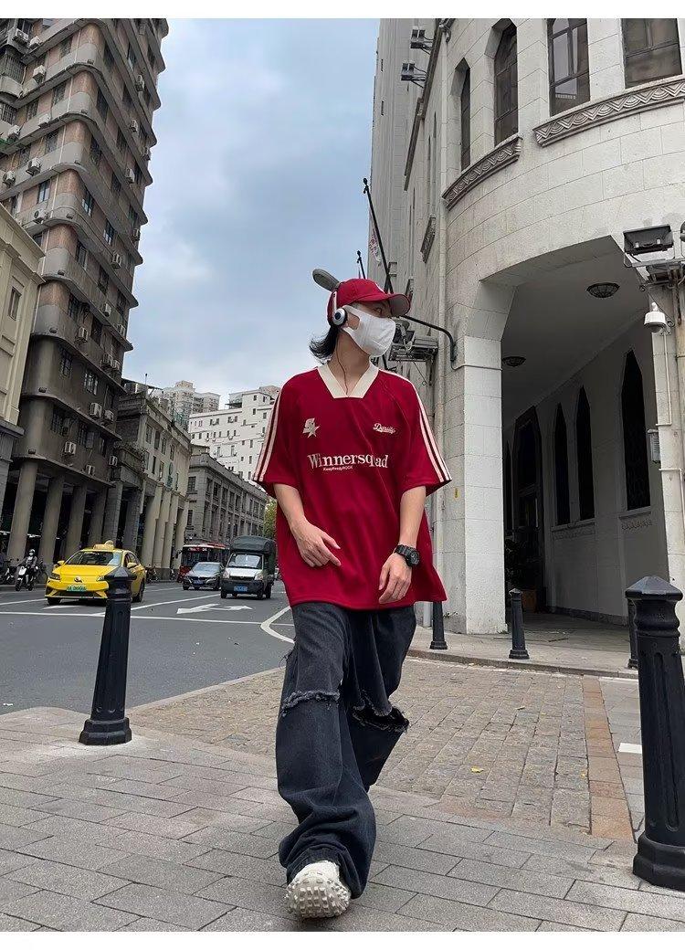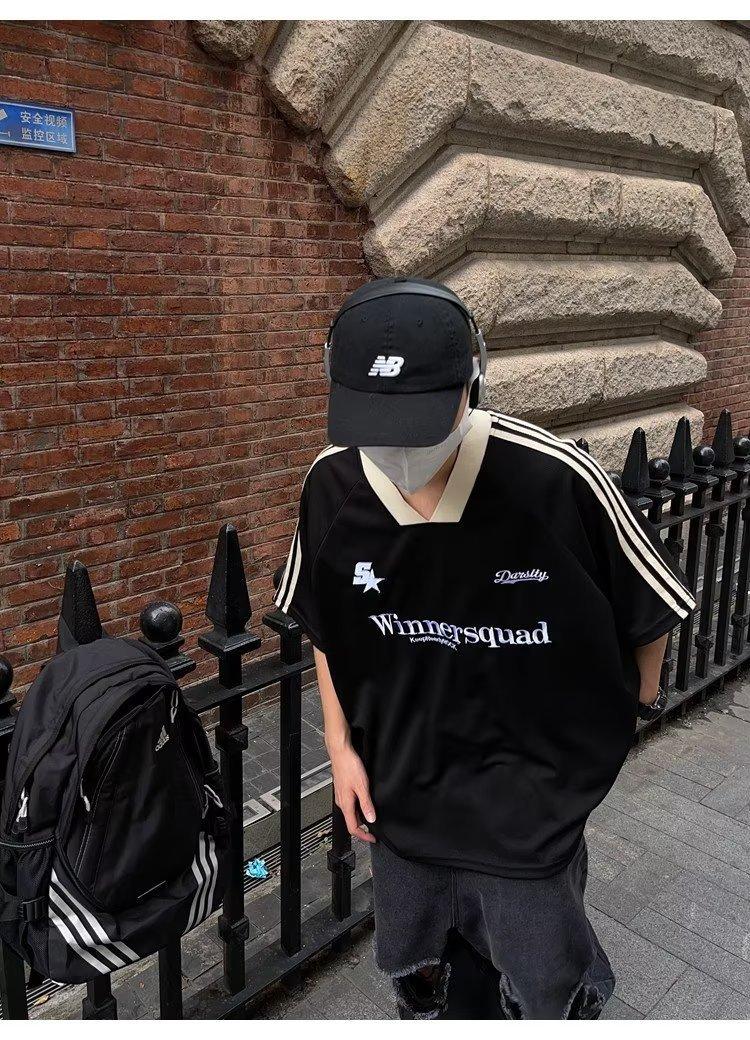 Camiseta de manga corta con costuras de color en contraste para hombre, marca de moda estadounidense de verano, ropa de motociclista de alto sentido, carreras Ruan, hermosa media manga
