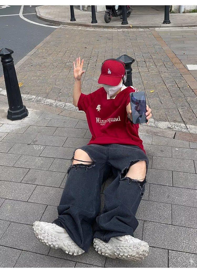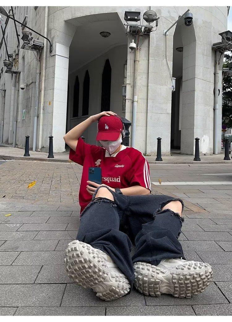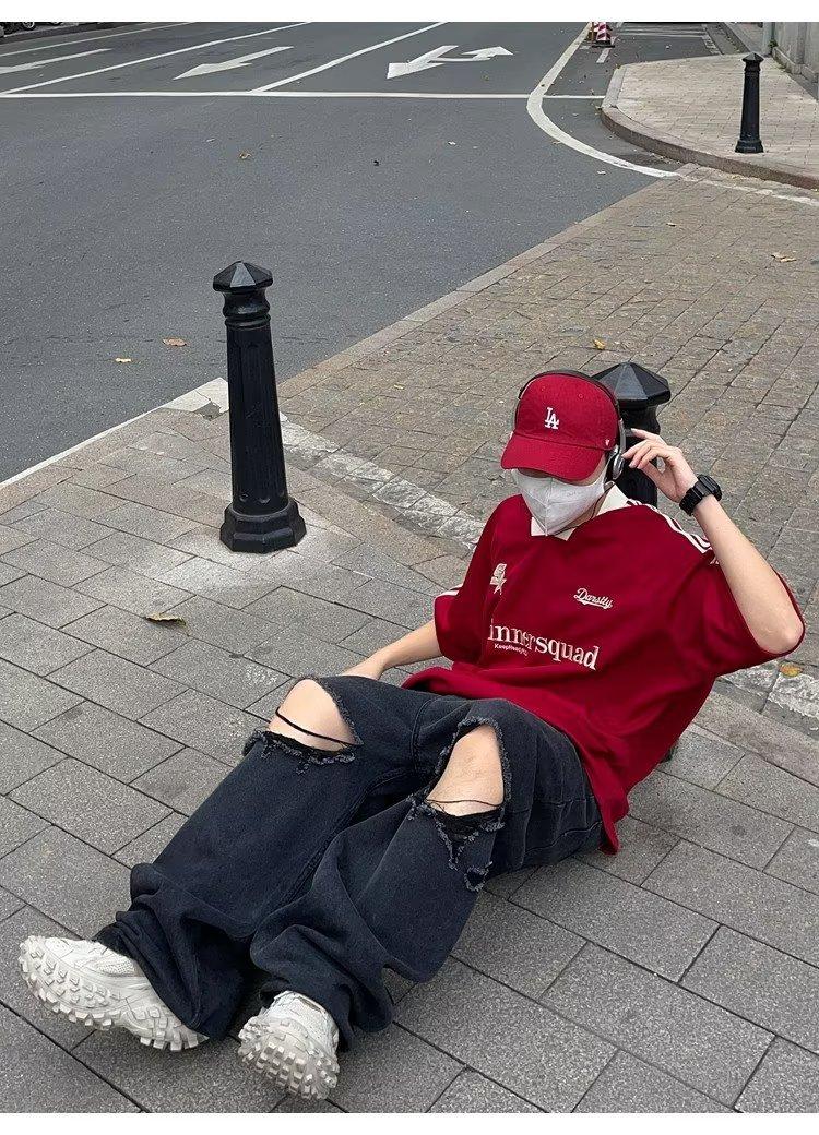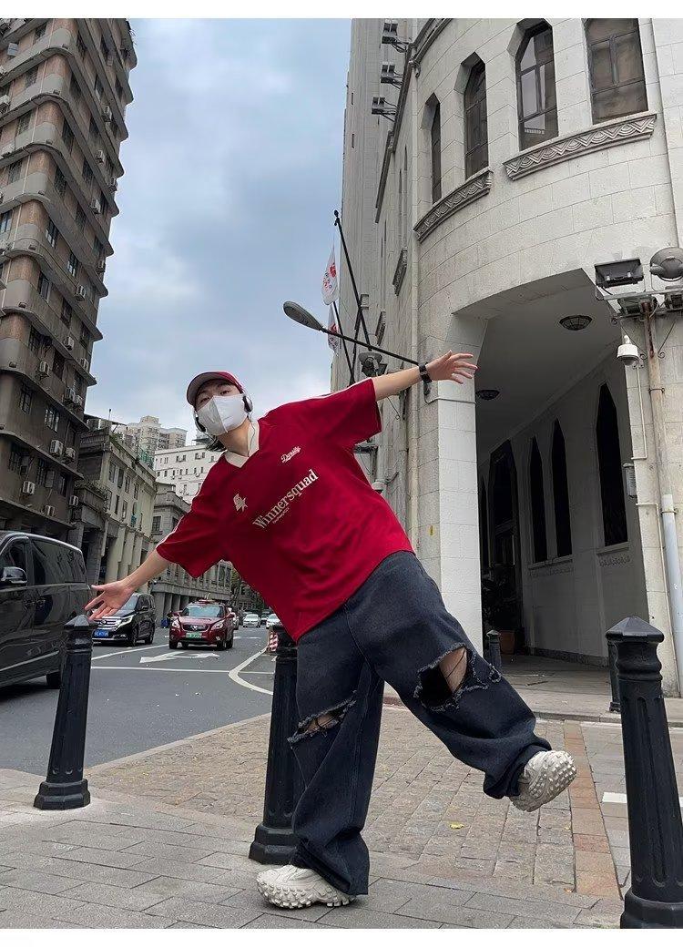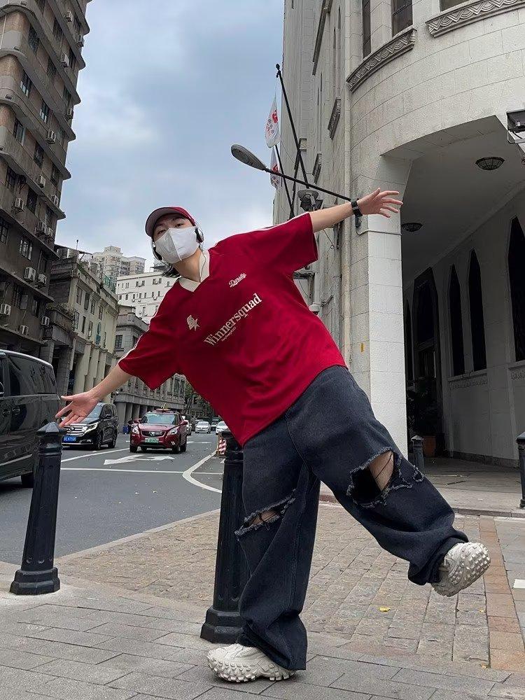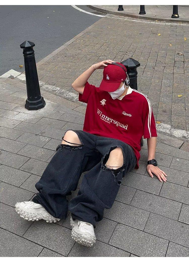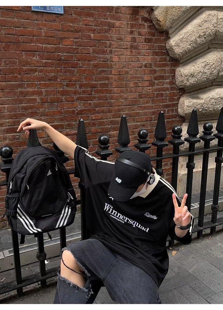 Camiseta de manga corta con costuras de color en contraste para hombre, marca de moda estadounidense de verano, ropa de motociclista de alto sentido, carreras Ruan, hermosa media manga