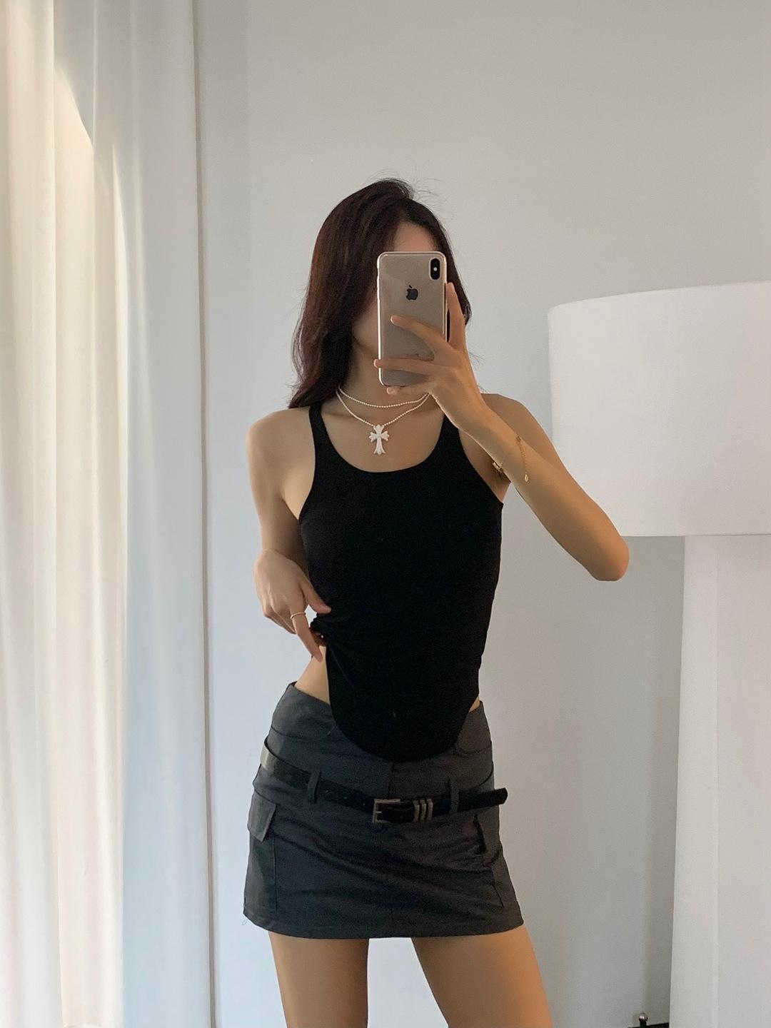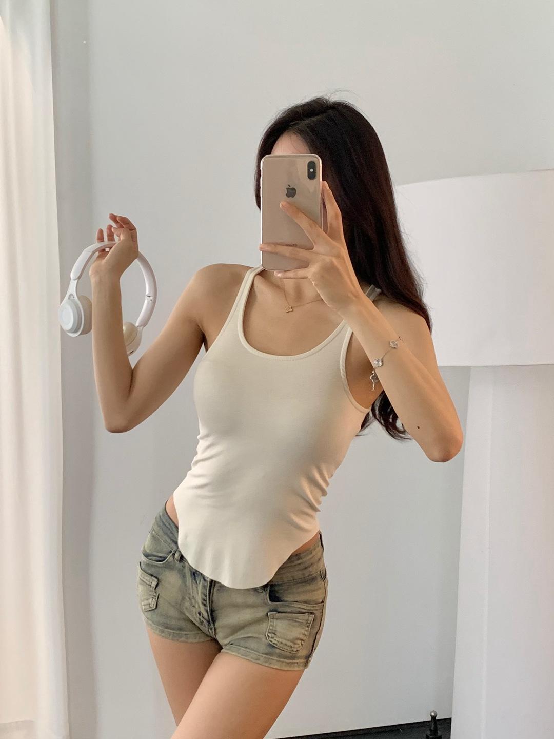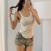Camisola sexy con cuello en U para mujer, verano 2024, nuevo estilo, estilo Pure Desire, corte ajustado, diseño elástico, prenda exterior Sense