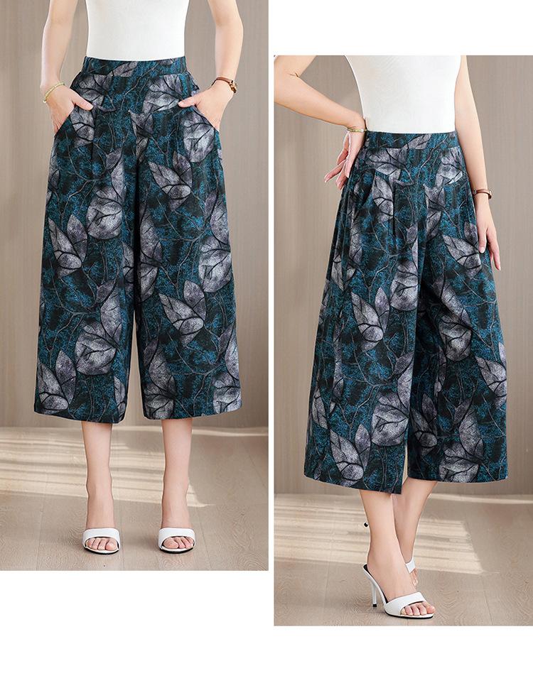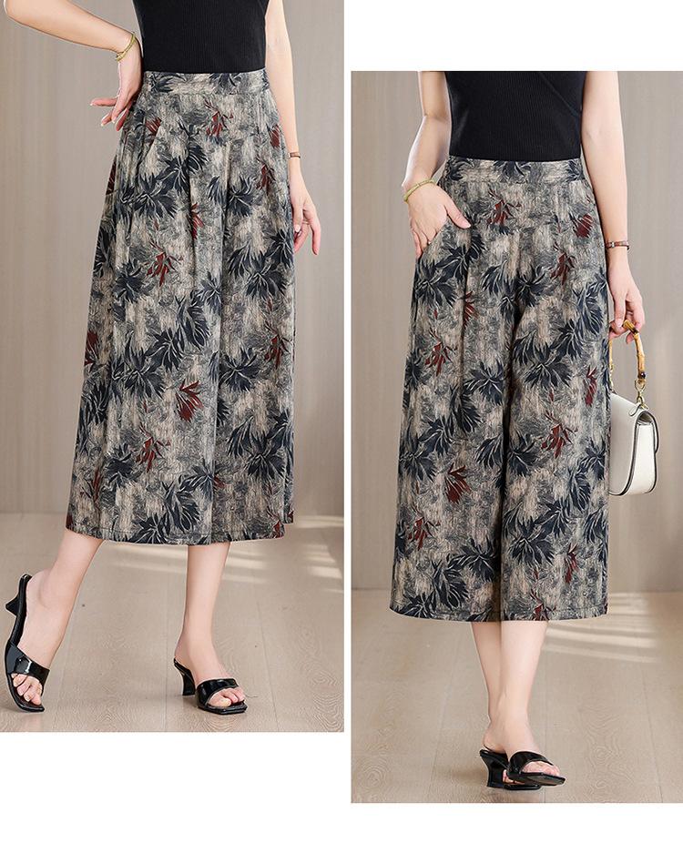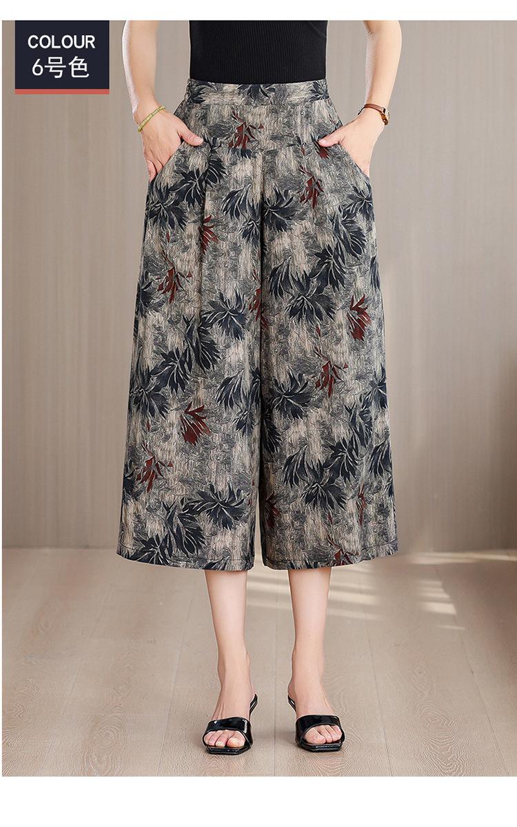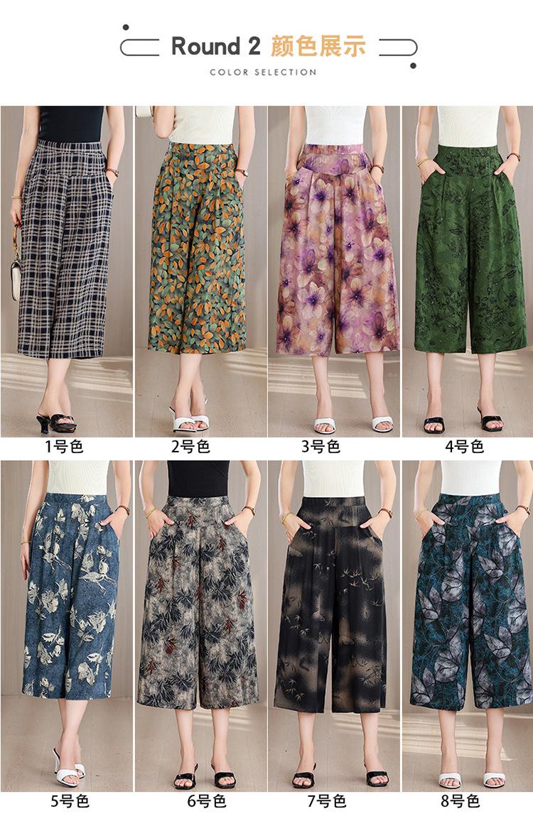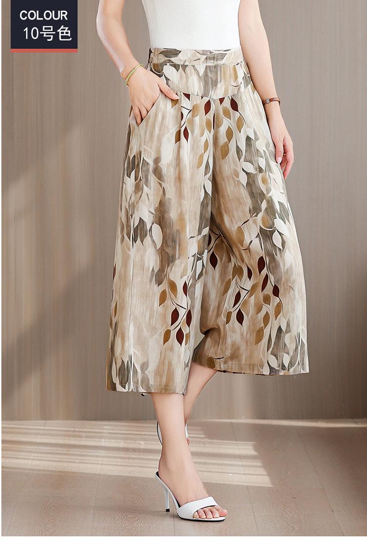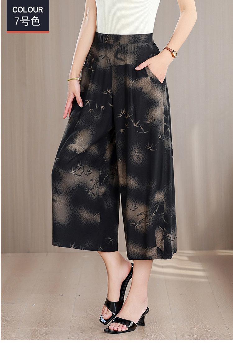 Pantalones de Pierna Ancha de Algodón Seda para Madre de Mediana Edad Estilo Occidental de Cintura Alta Ropa de Verano para Mujer Culottes de Mediana Edad Pantalones Jóvenes para Baile Cuadrado