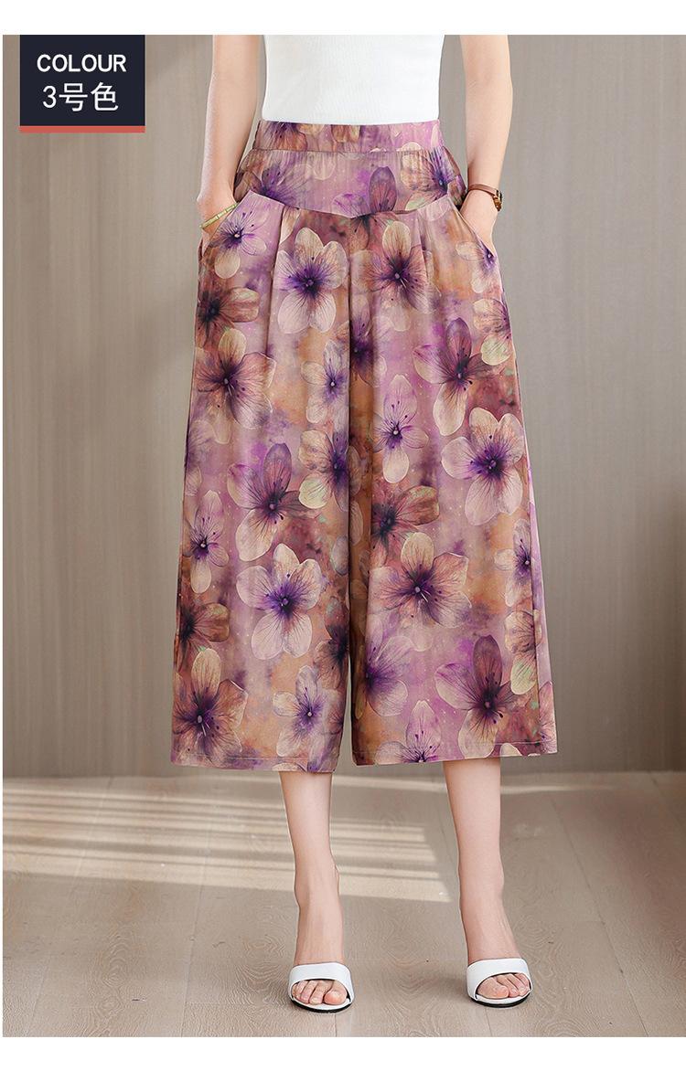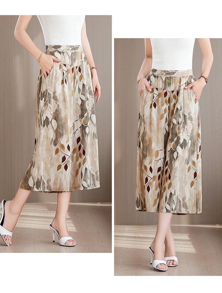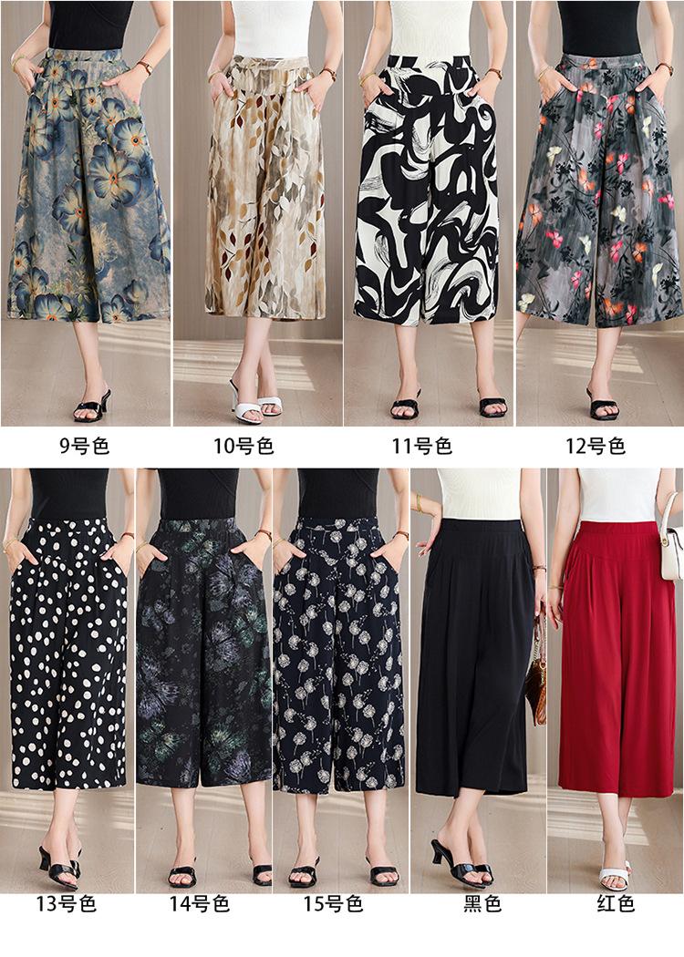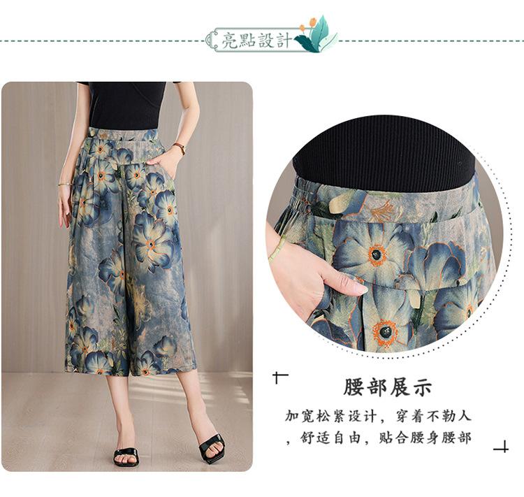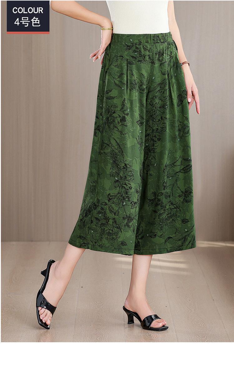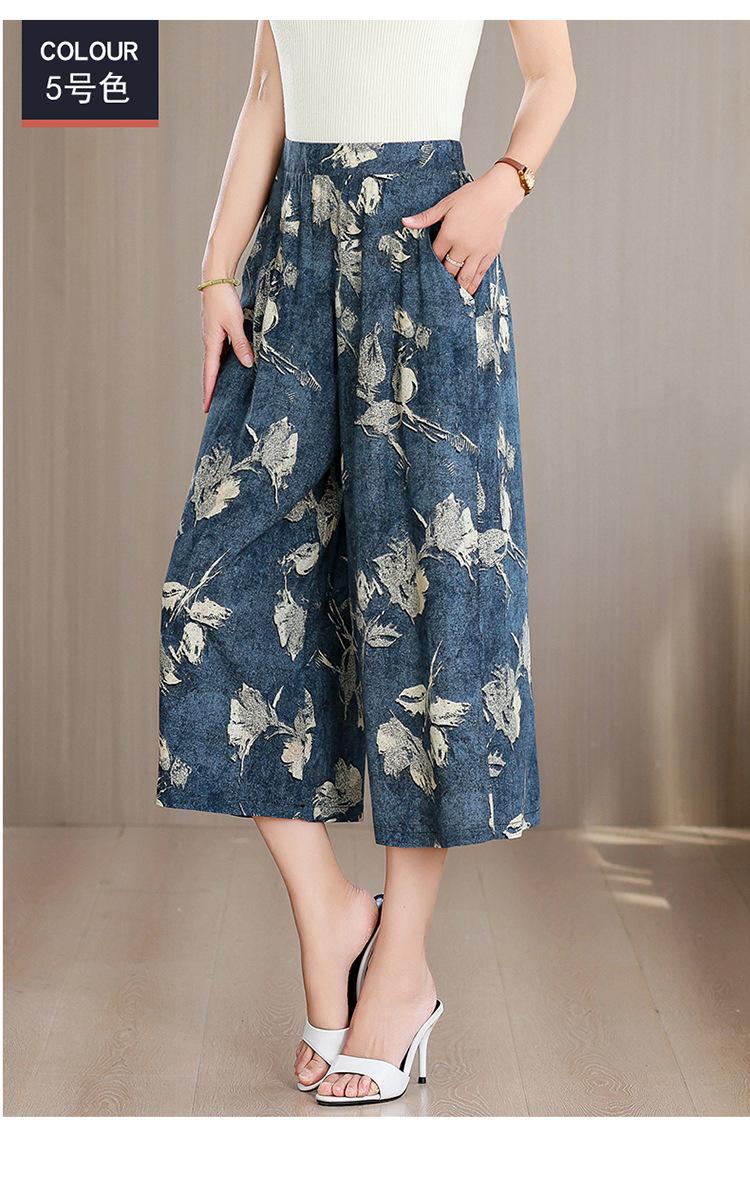 Pantalones de Pierna Ancha de Algodón Seda para Madre de Mediana Edad Estilo Occidental de Cintura Alta Ropa de Verano para Mujer Culottes de Mediana Edad Pantalones Jóvenes para Baile Cuadrado