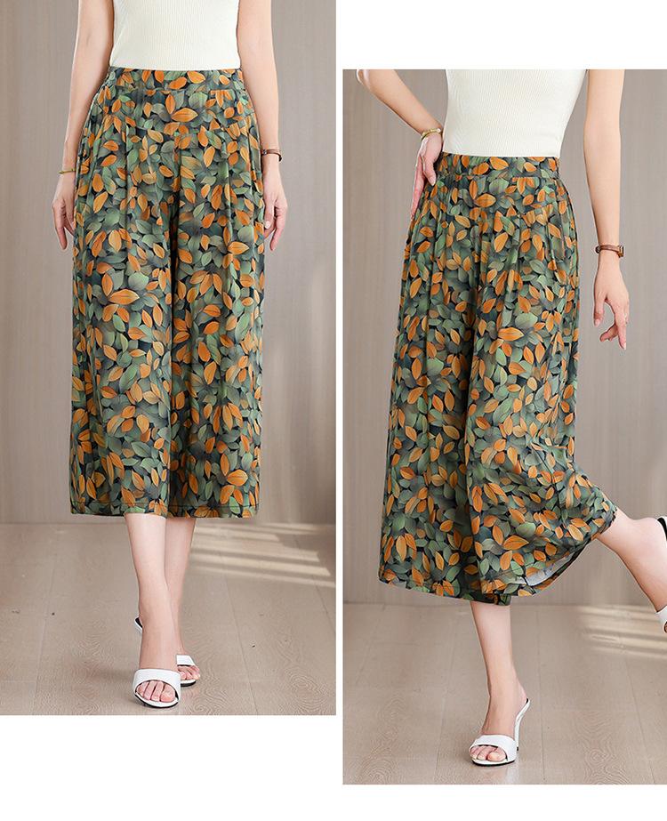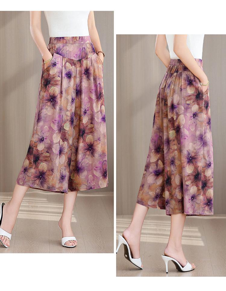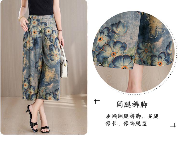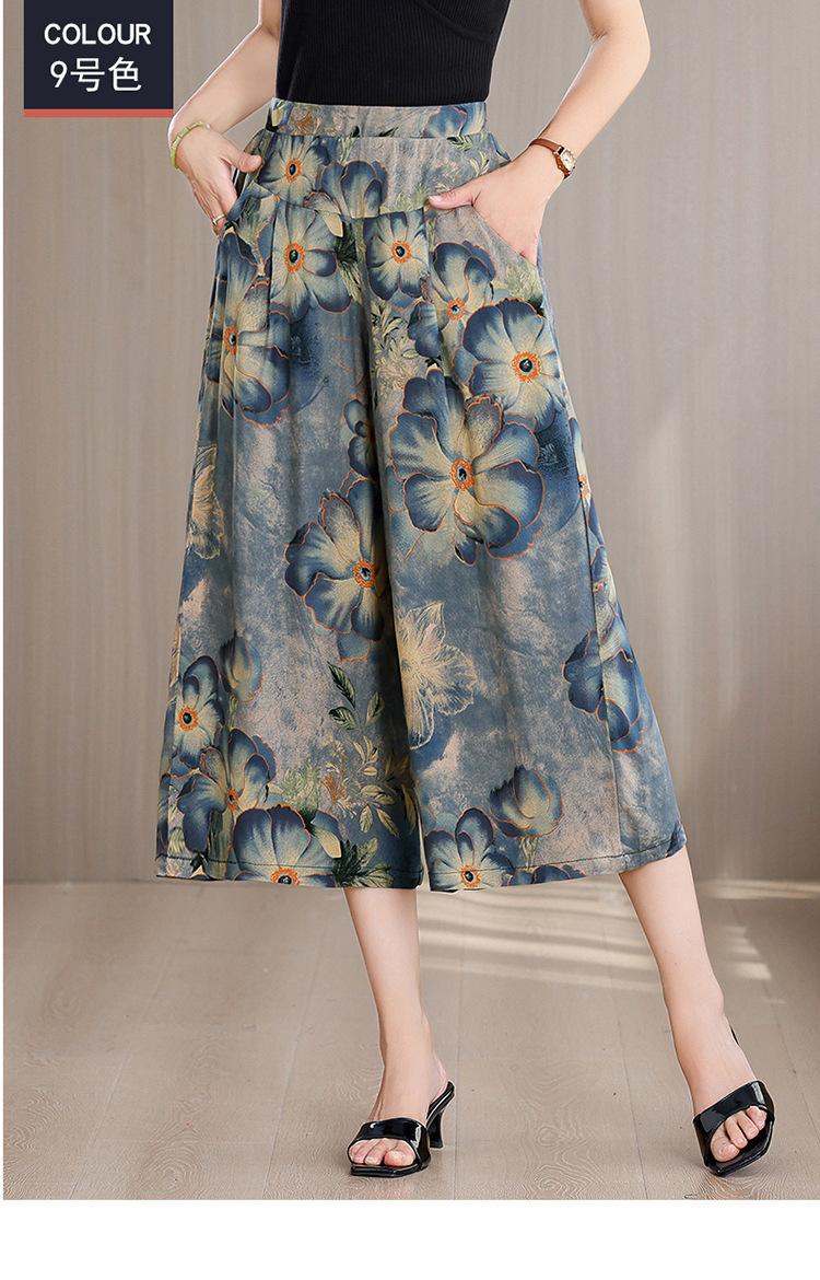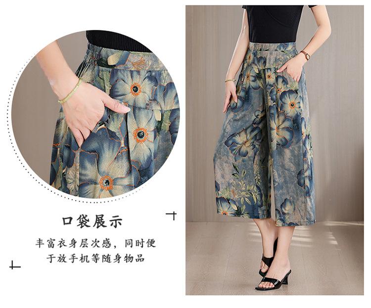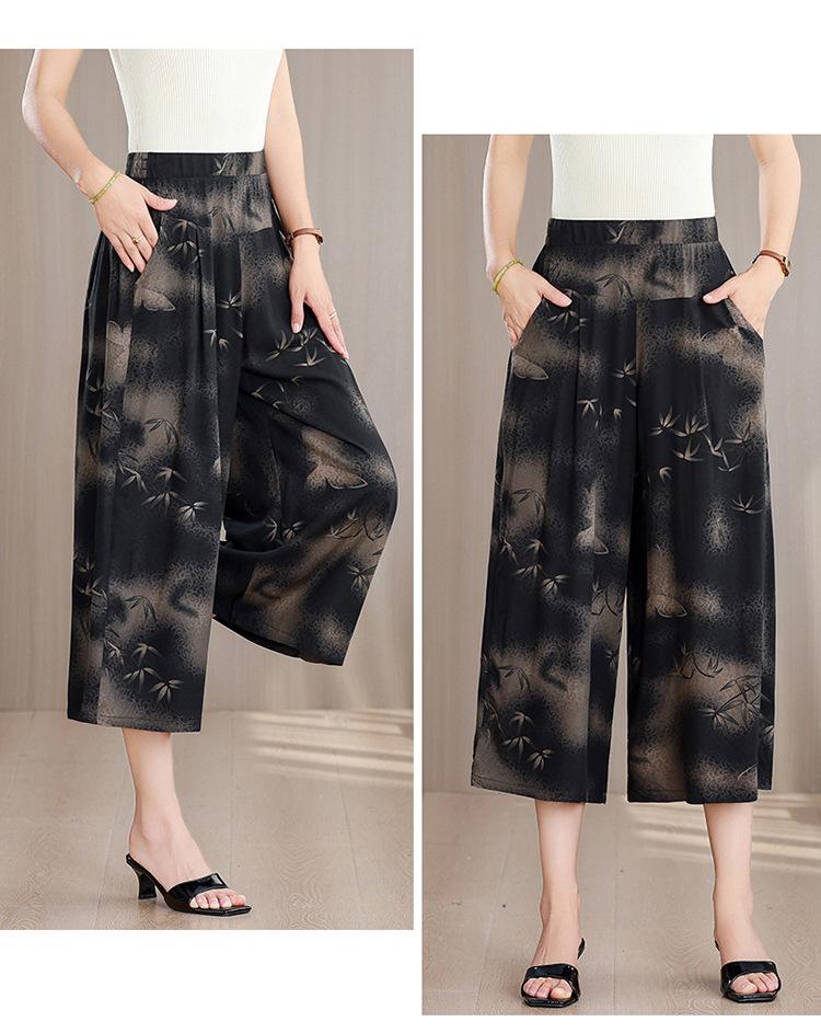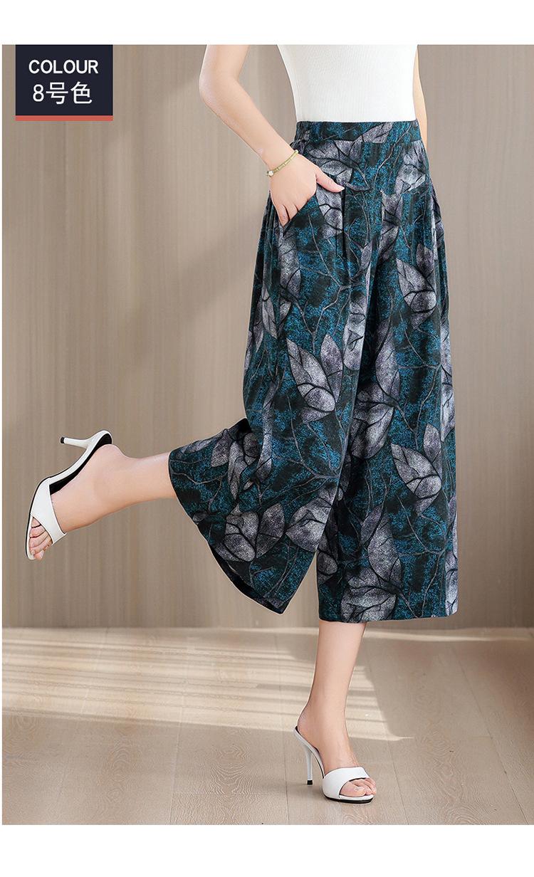 Pantalones de Pierna Ancha de Algodón Seda para Madre de Mediana Edad Estilo Occidental de Cintura Alta Ropa de Verano para Mujer Culottes de Mediana Edad Pantalones Jóvenes para Baile Cuadrado