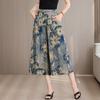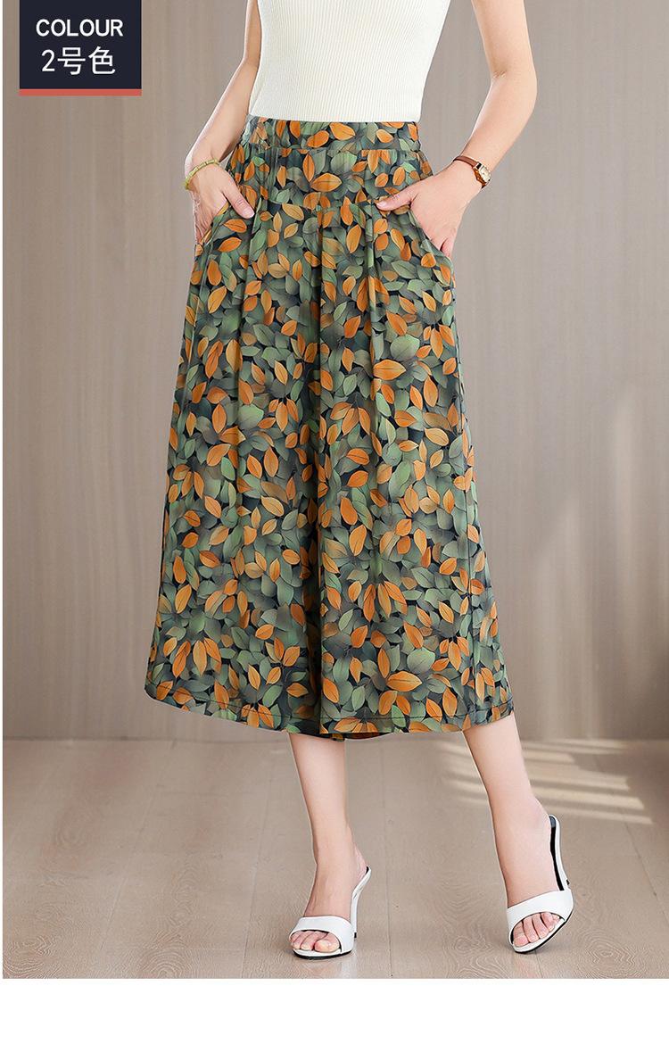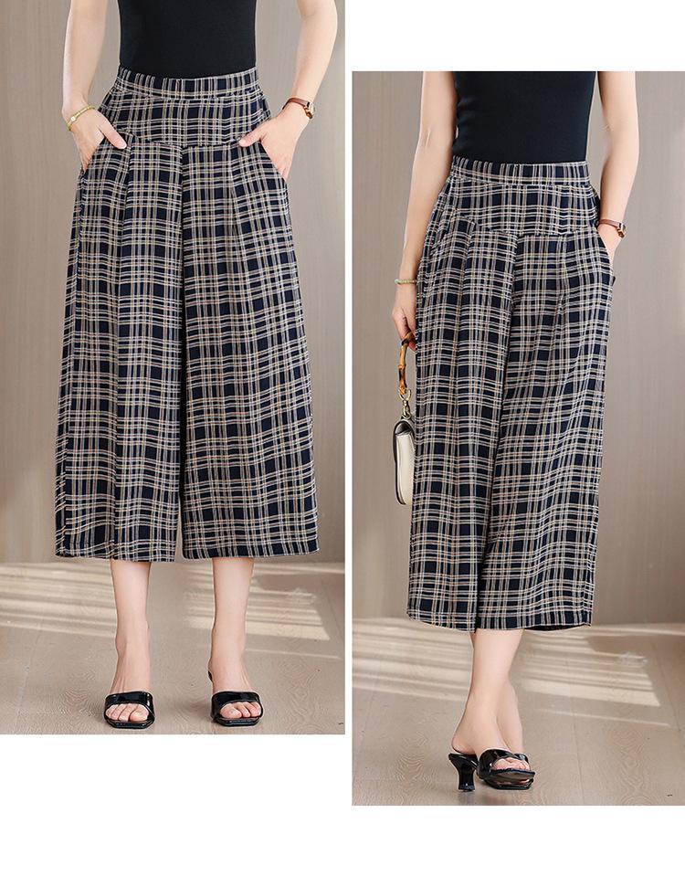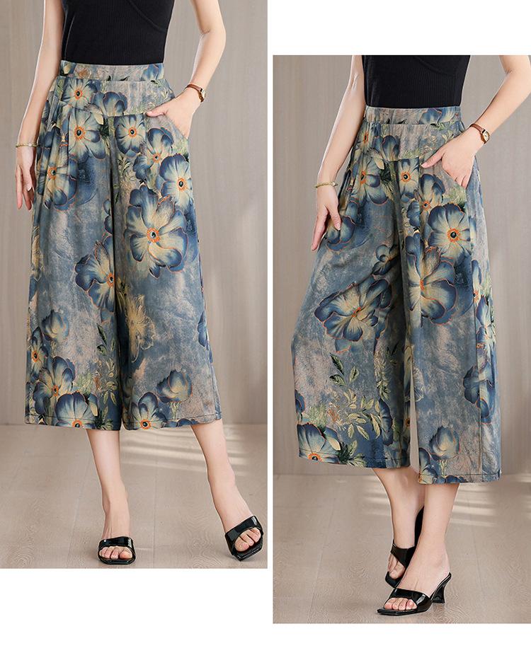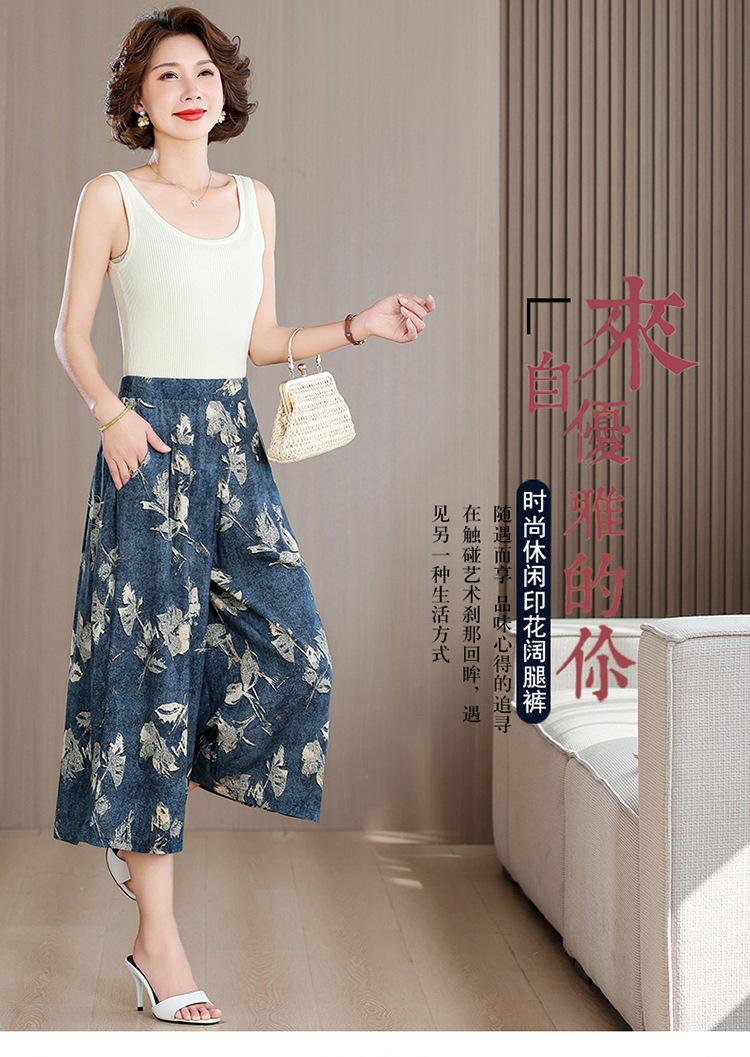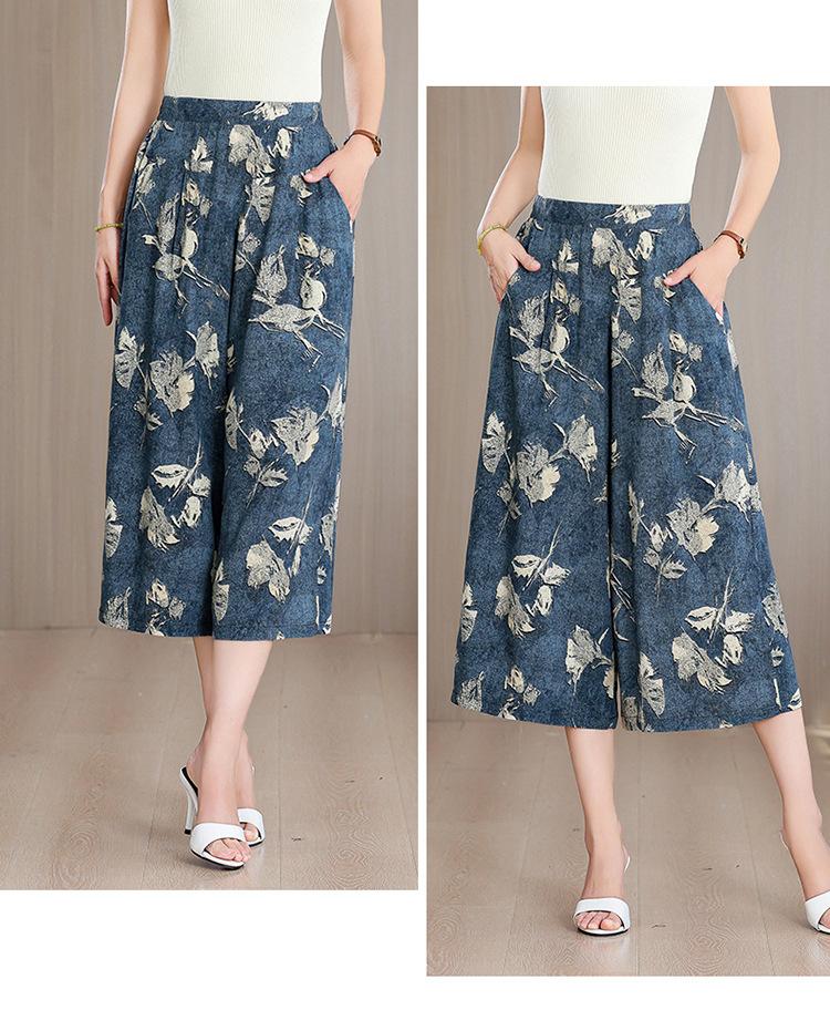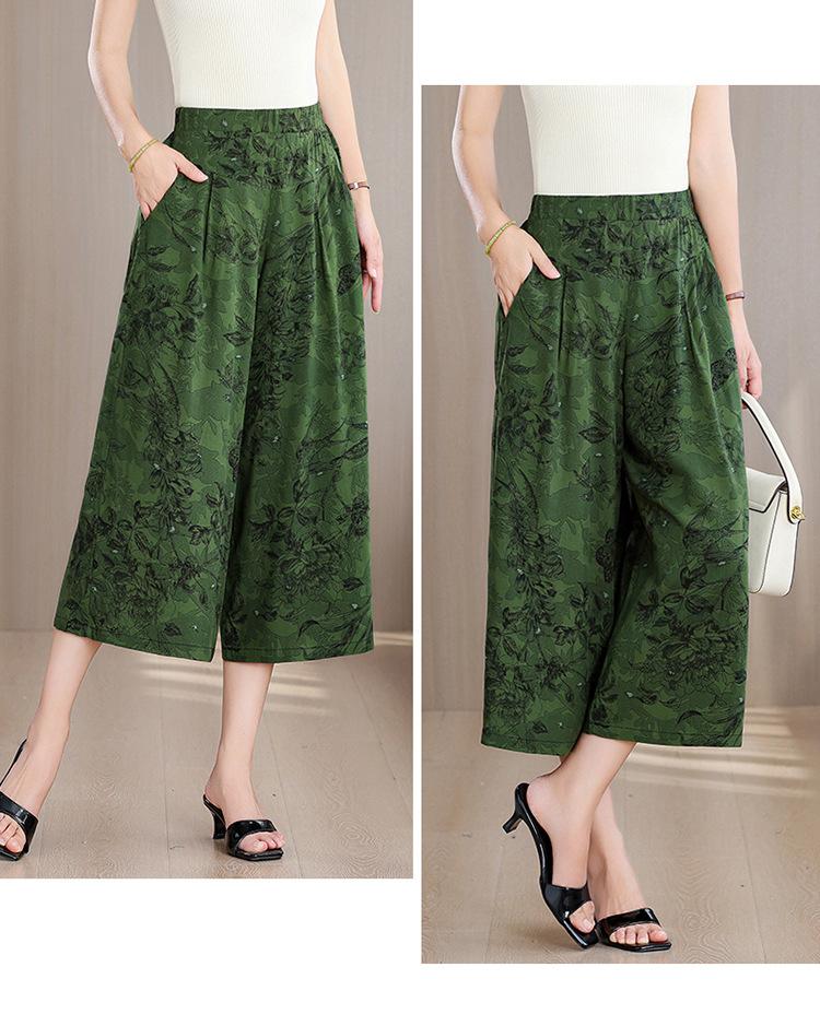 Pantalones de Pierna Ancha de Algodón Seda para Madre de Mediana Edad Estilo Occidental de Cintura Alta Ropa de Verano para Mujer Culottes de Mediana Edad Pantalones Jóvenes para Baile Cuadrado