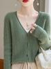 Cárdigan de Punto Jacquard Calado de Lana con Cuello en V para Otoño e Invierno para Mujer, Suéter de Manga Larga Holgado de Cachemira, Top Exterior Moderno