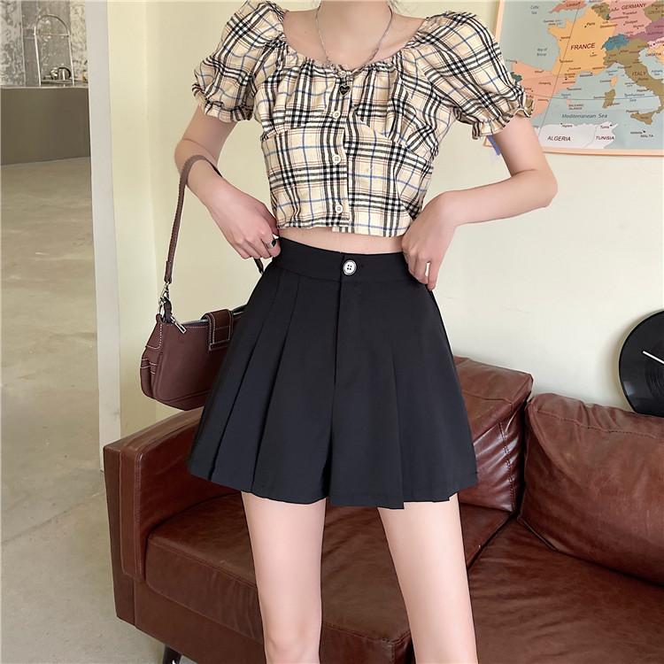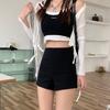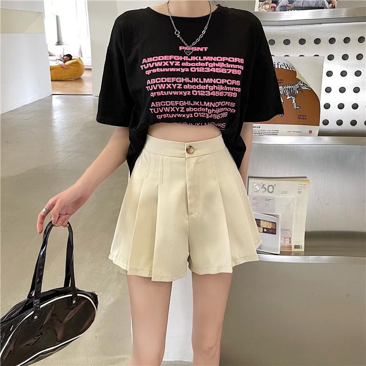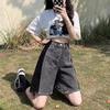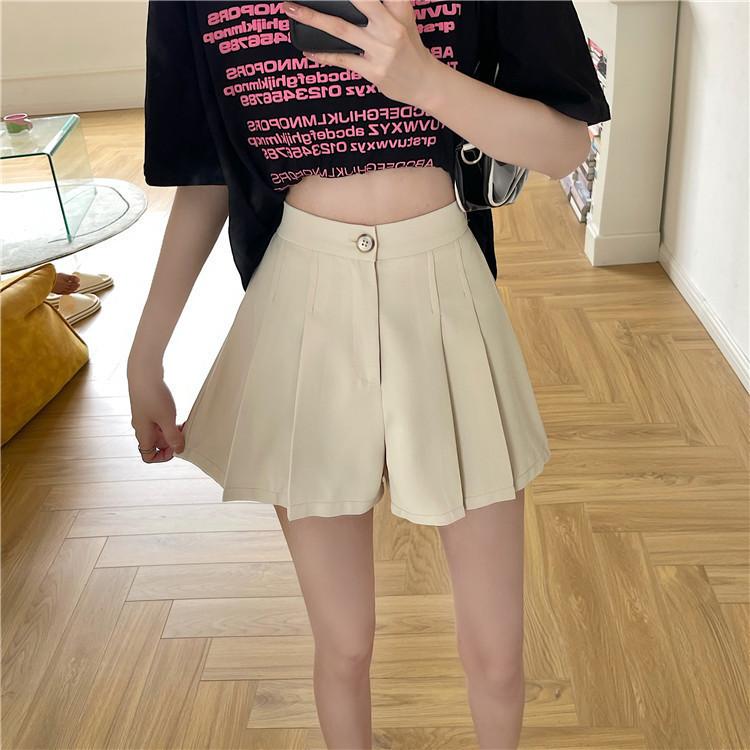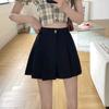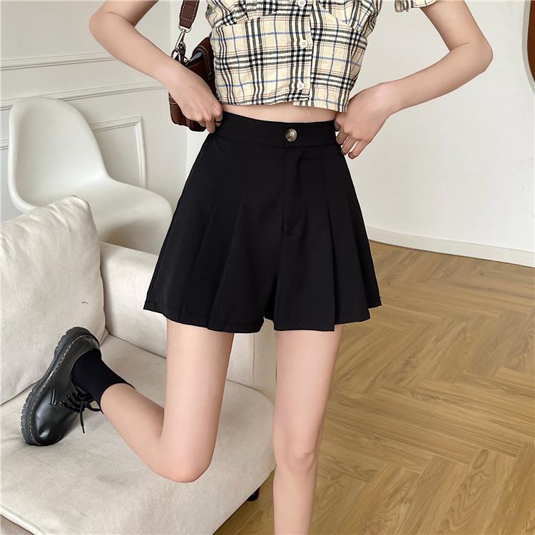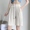 Pantalones cortos negros de cintura alta para mujer, nuevos, informales, holgados, de talla grande, de corte A, con pierna ancha, finos, de verano