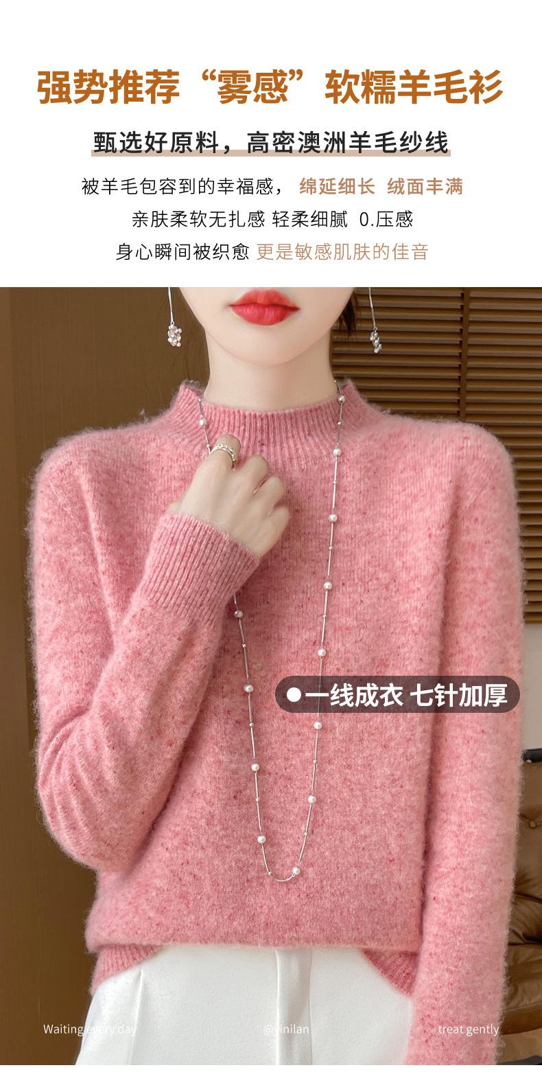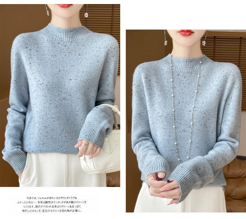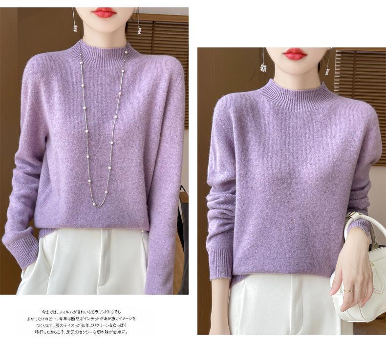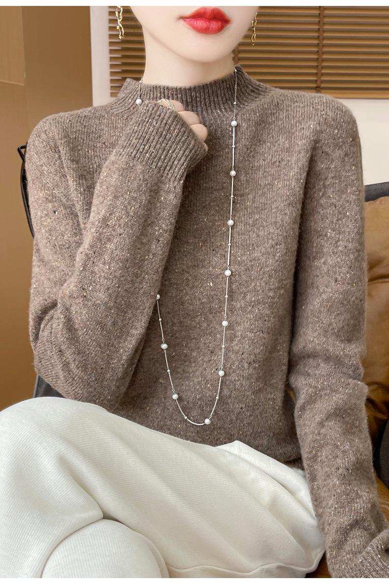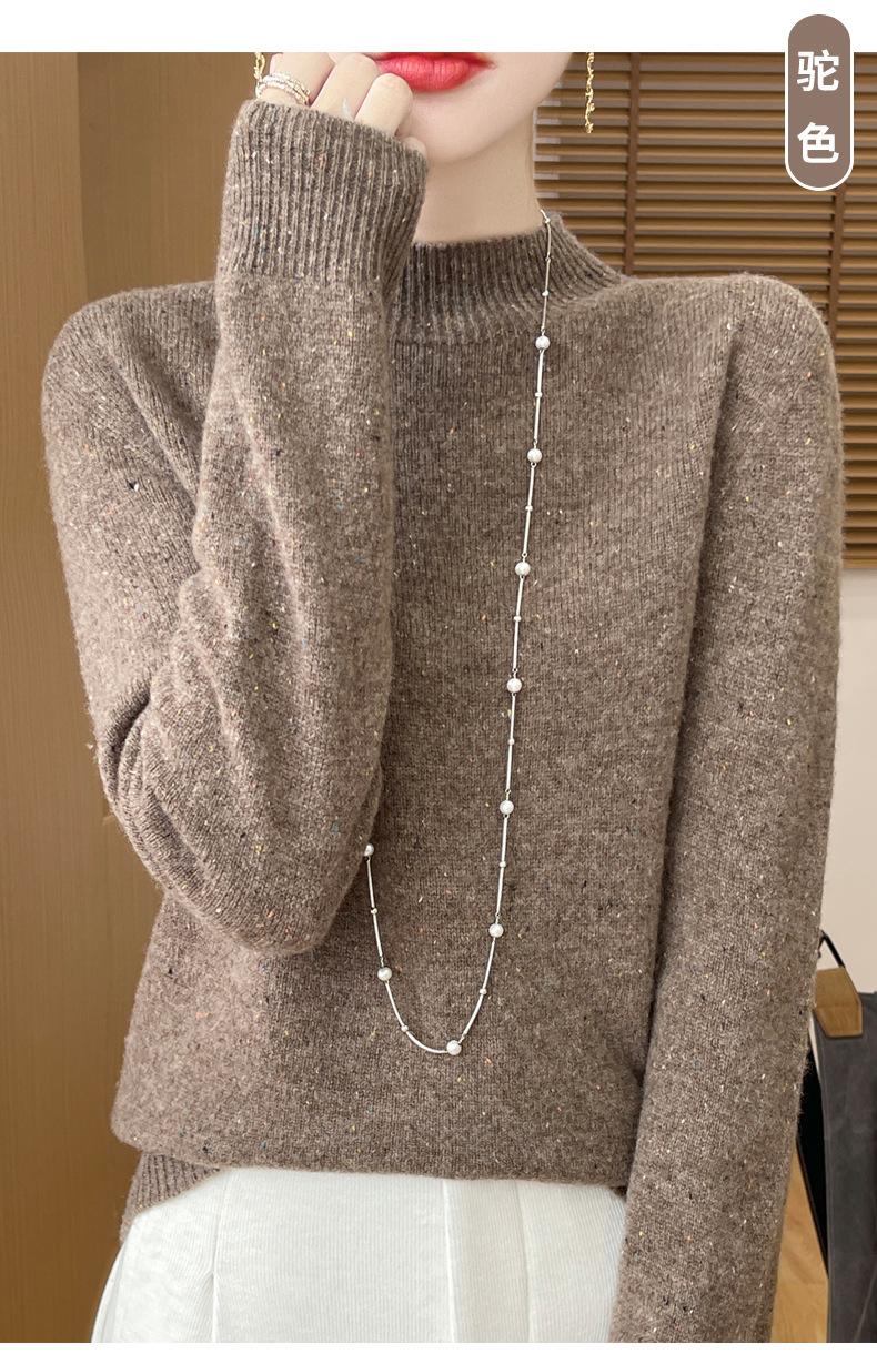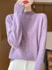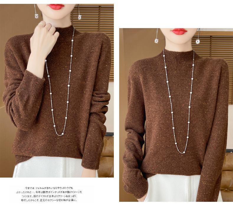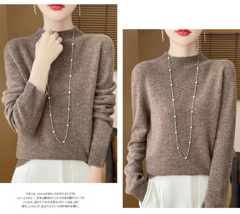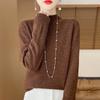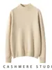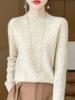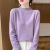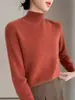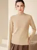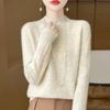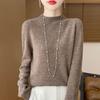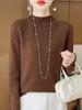 Suéter de cuello alto medio de primera línea de siete puntadas sin costuras de lana pura para mujer, jersey holgado de manga larga