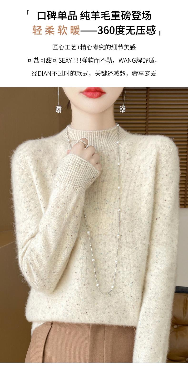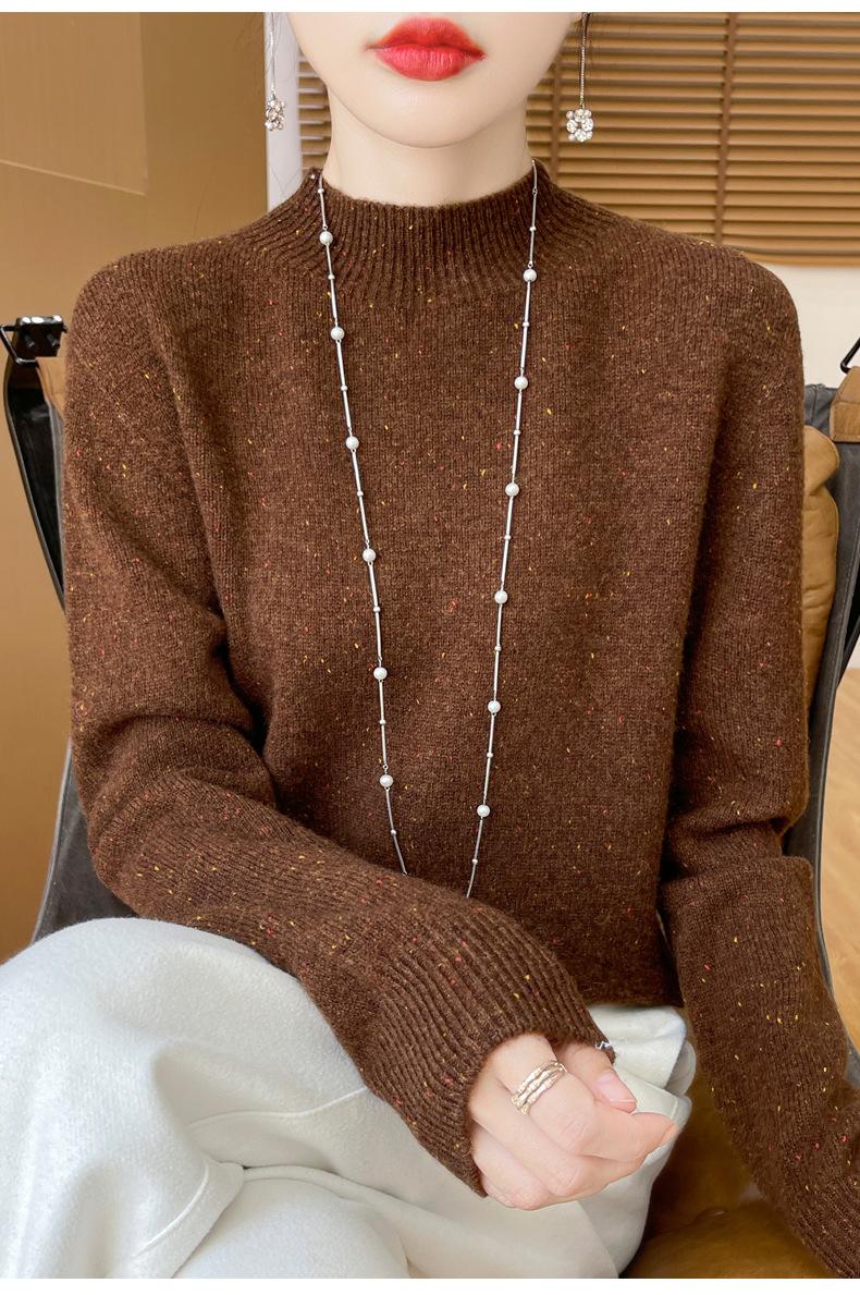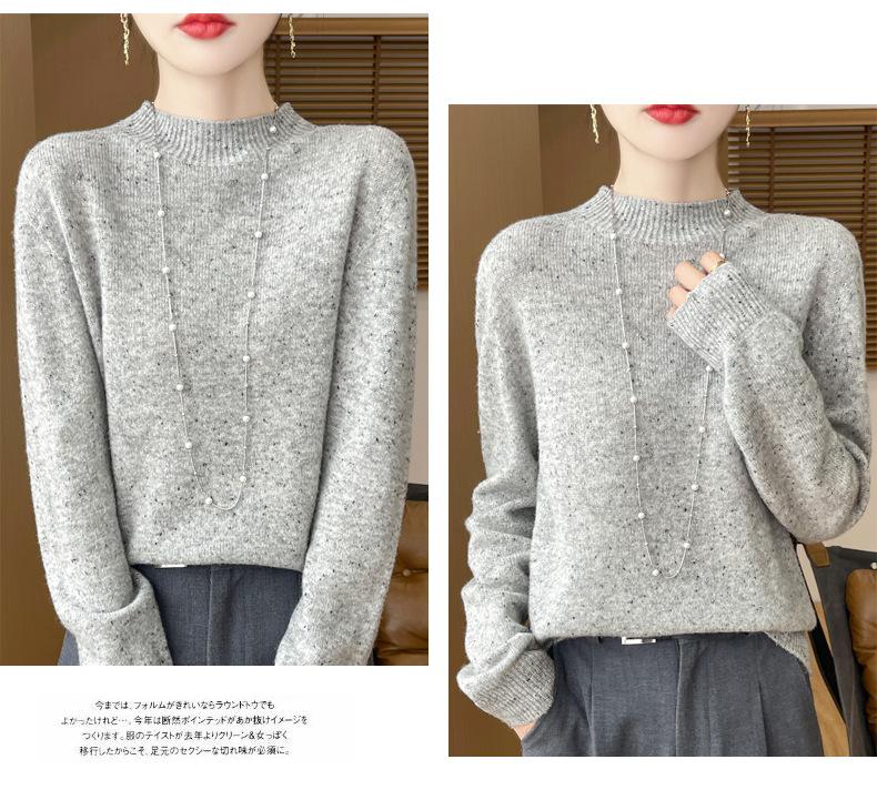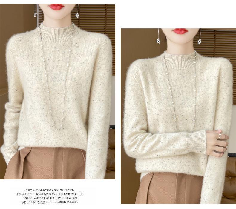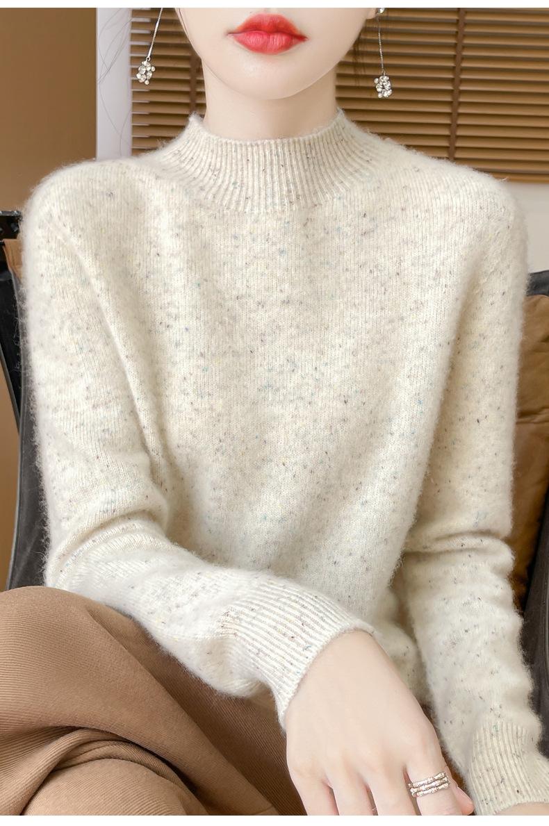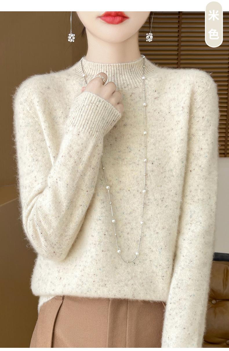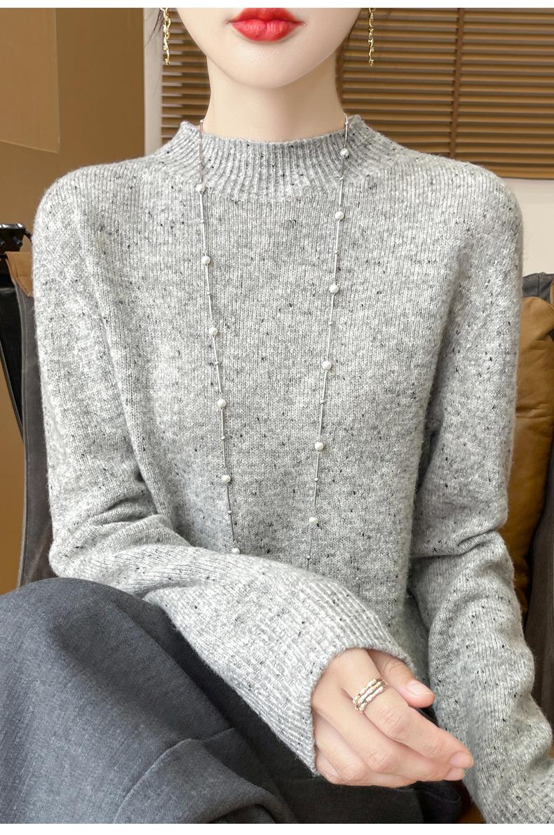 Suéter de cuello alto medio de primera línea de siete puntadas sin costuras de lana pura para mujer, jersey holgado de manga larga