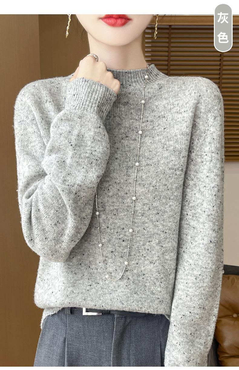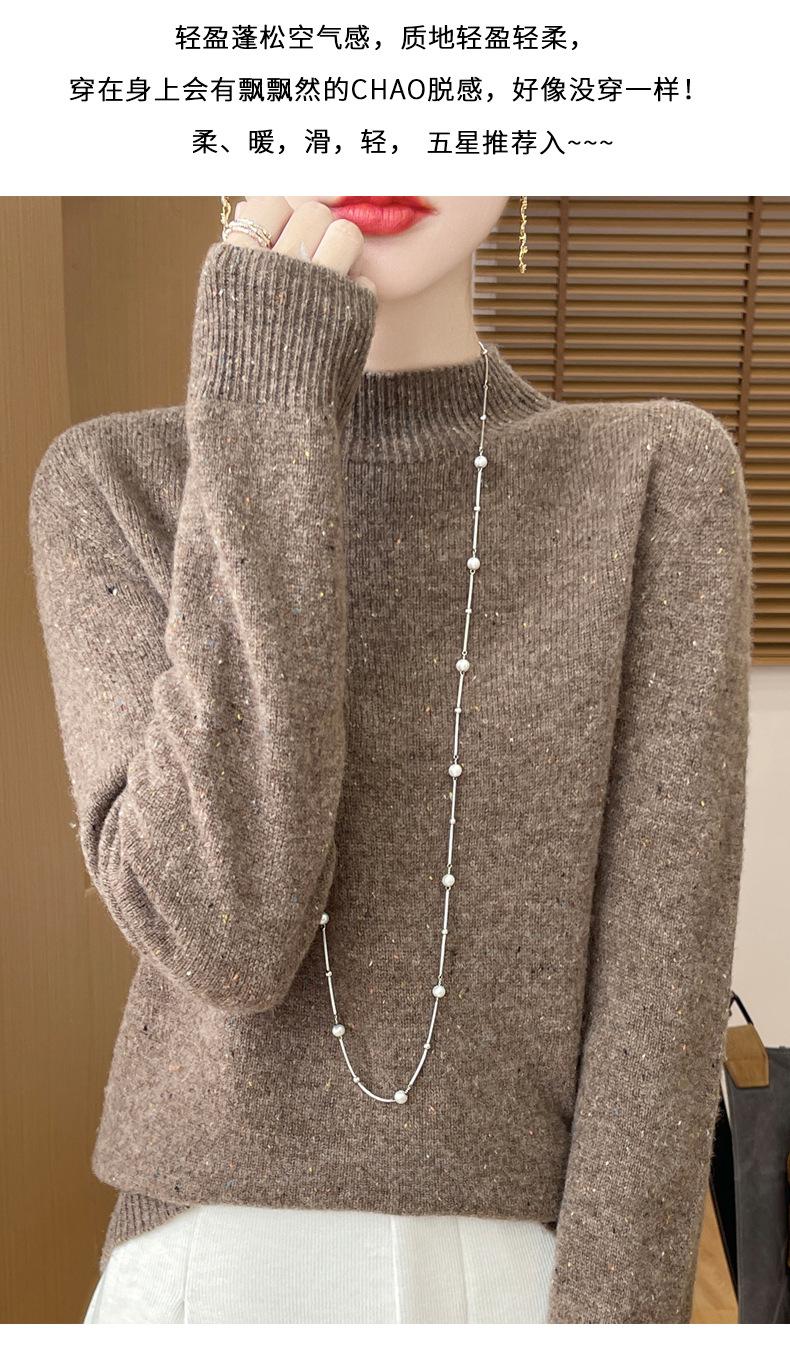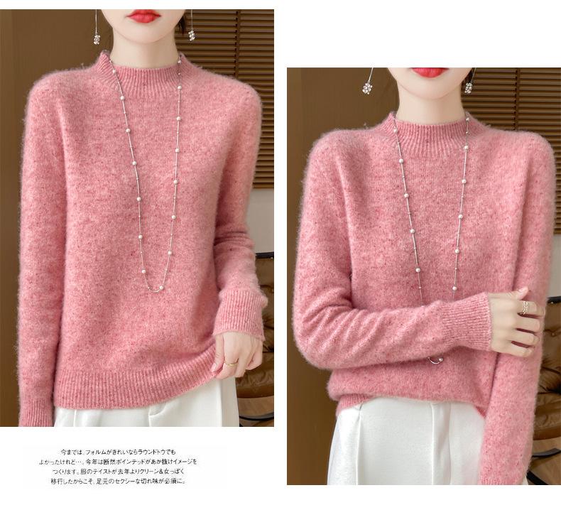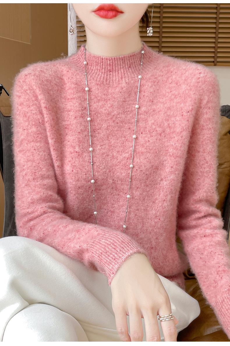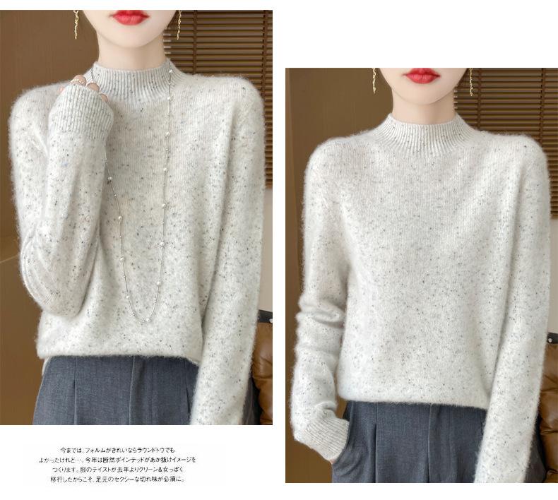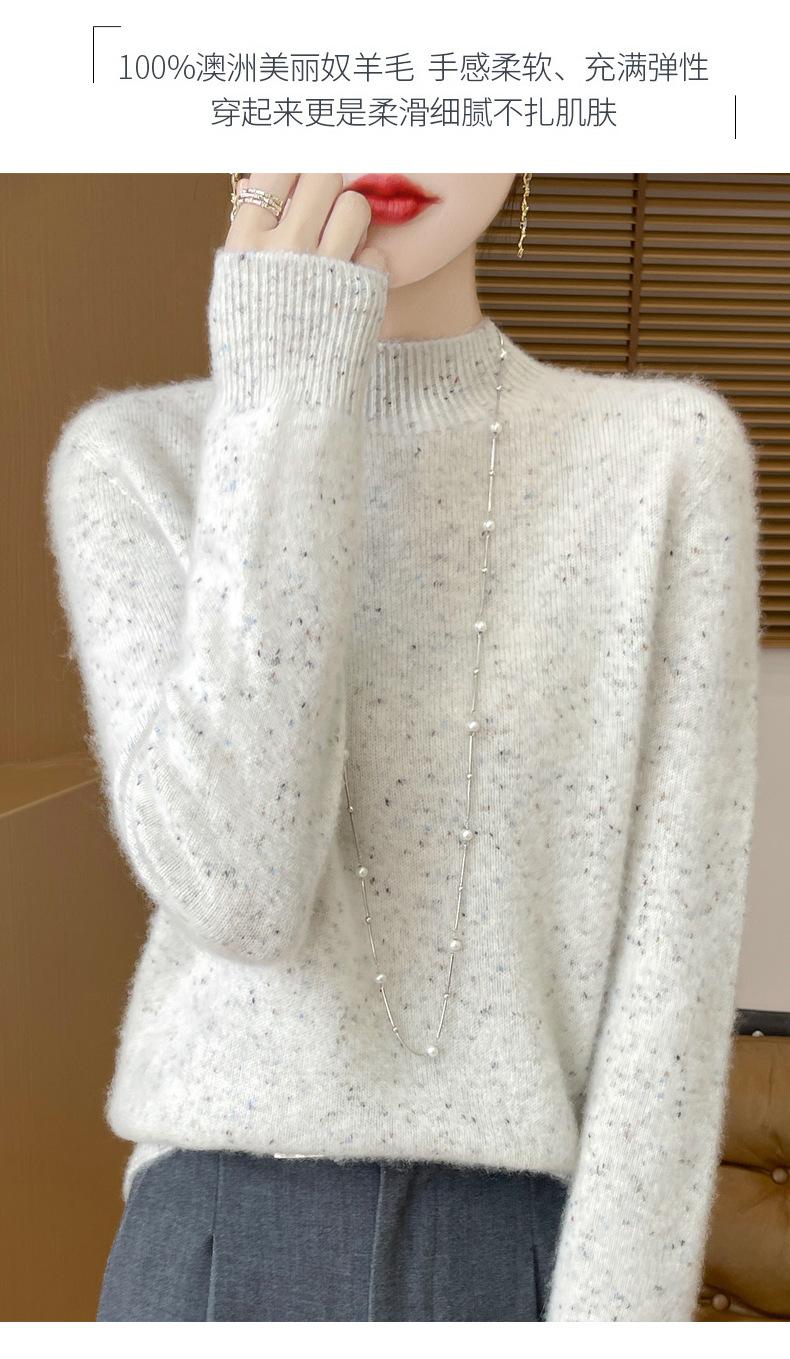 Suéter de cuello alto medio de primera línea de siete puntadas sin costuras de lana pura para mujer, jersey holgado de manga larga