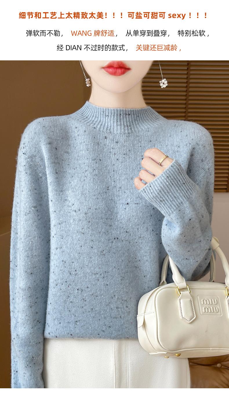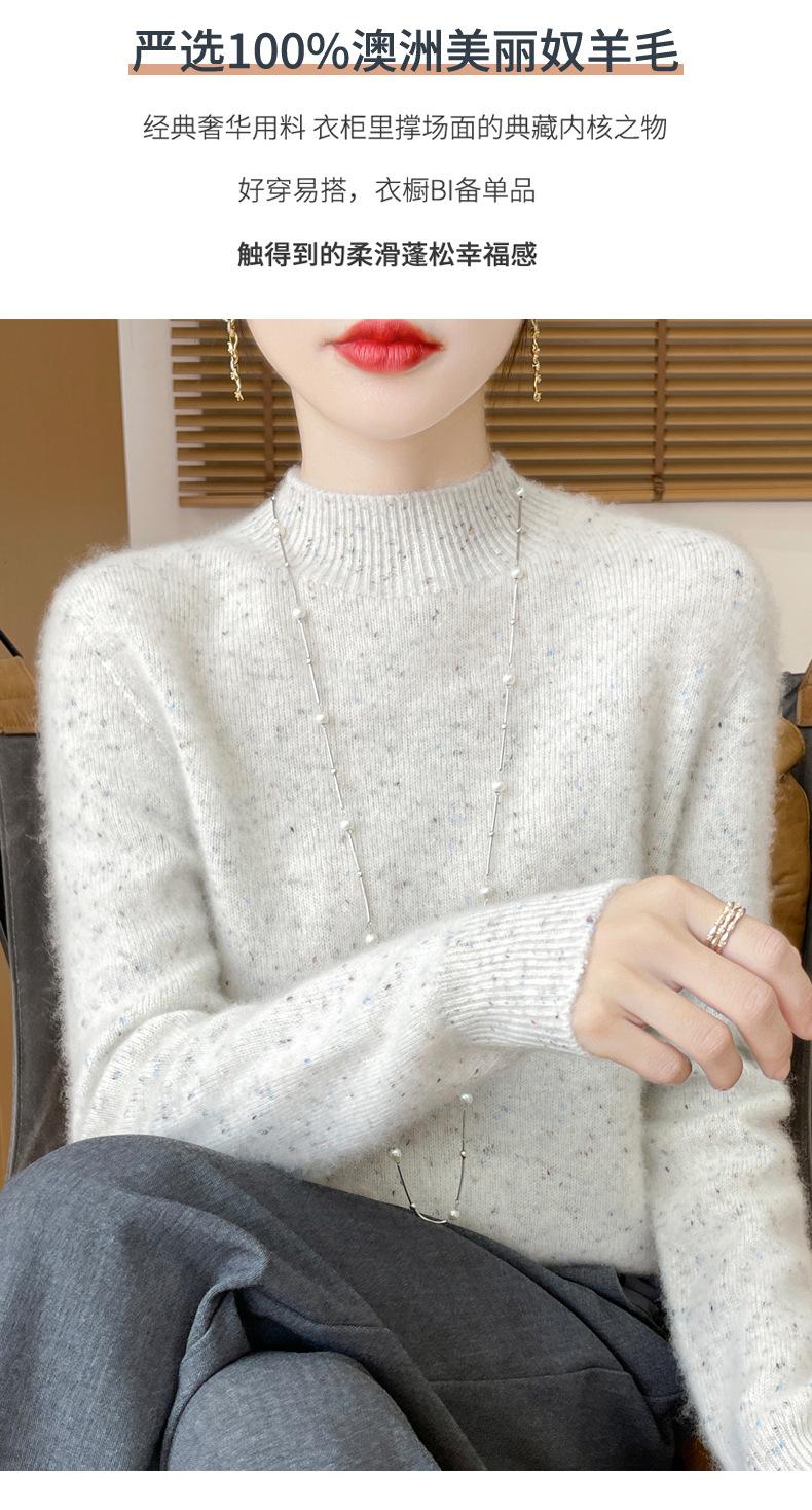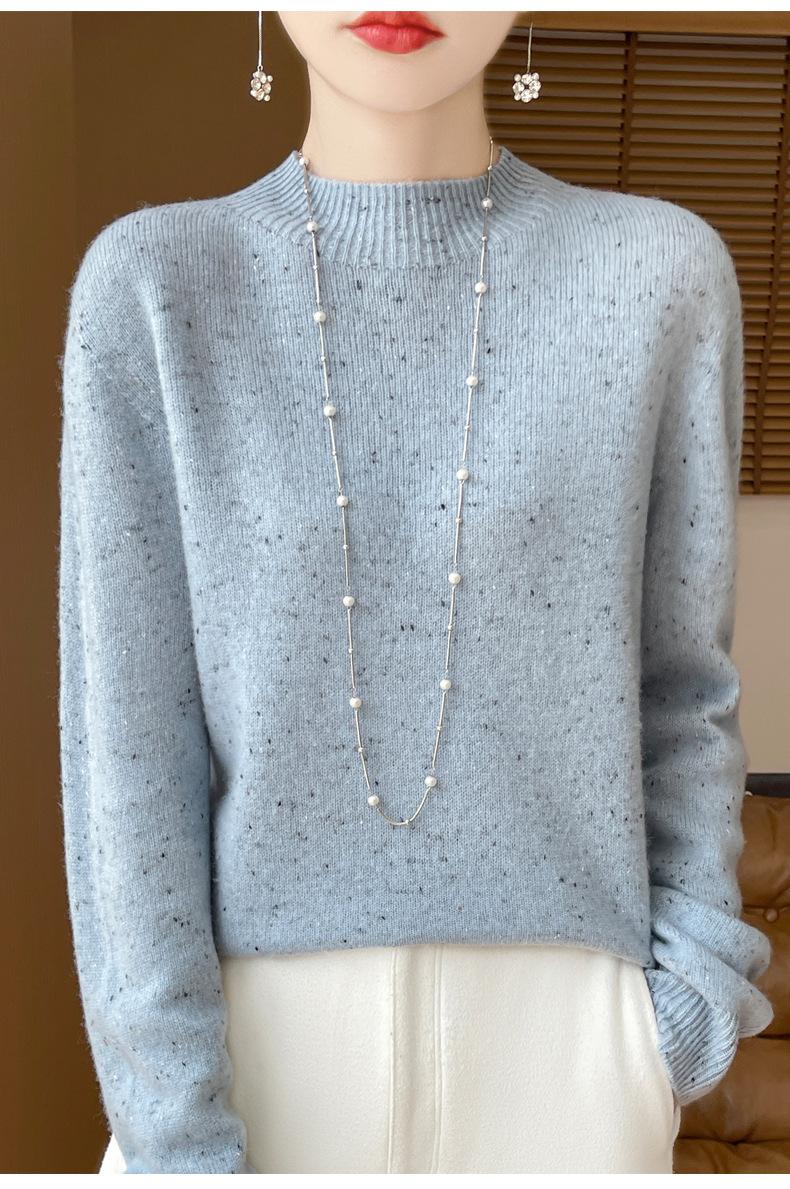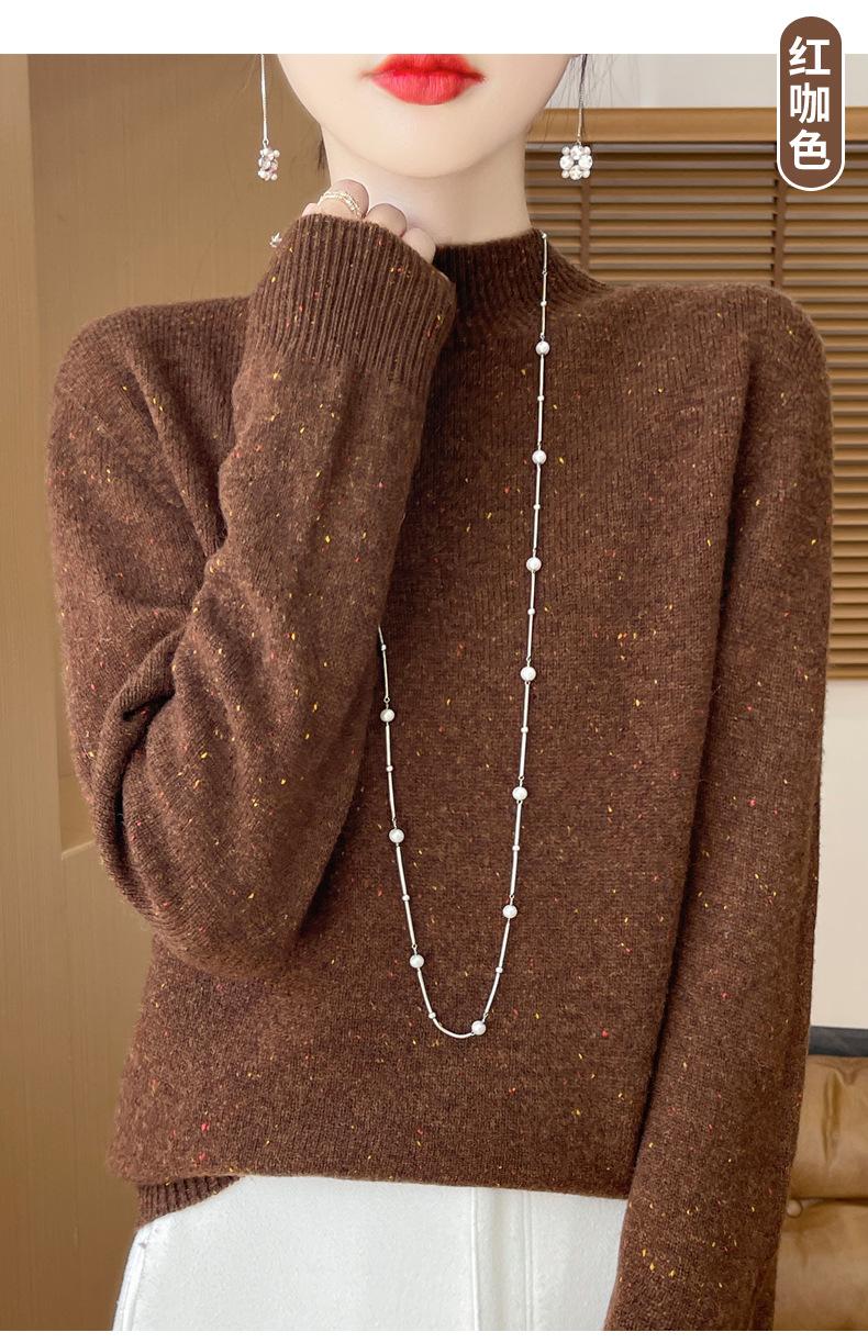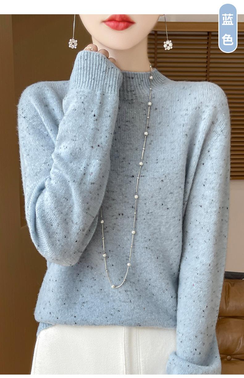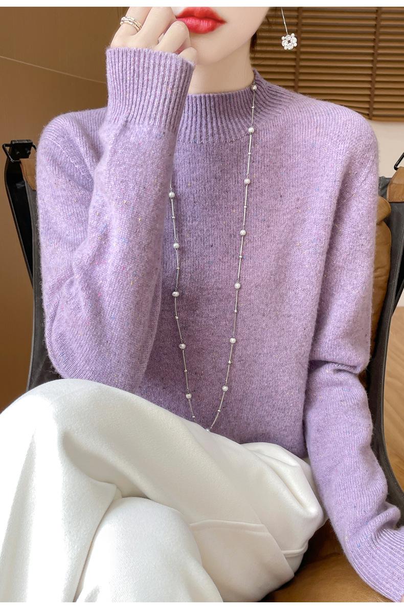 Suéter de cuello alto medio de primera línea de siete puntadas sin costuras de lana pura para mujer, jersey holgado de manga larga
