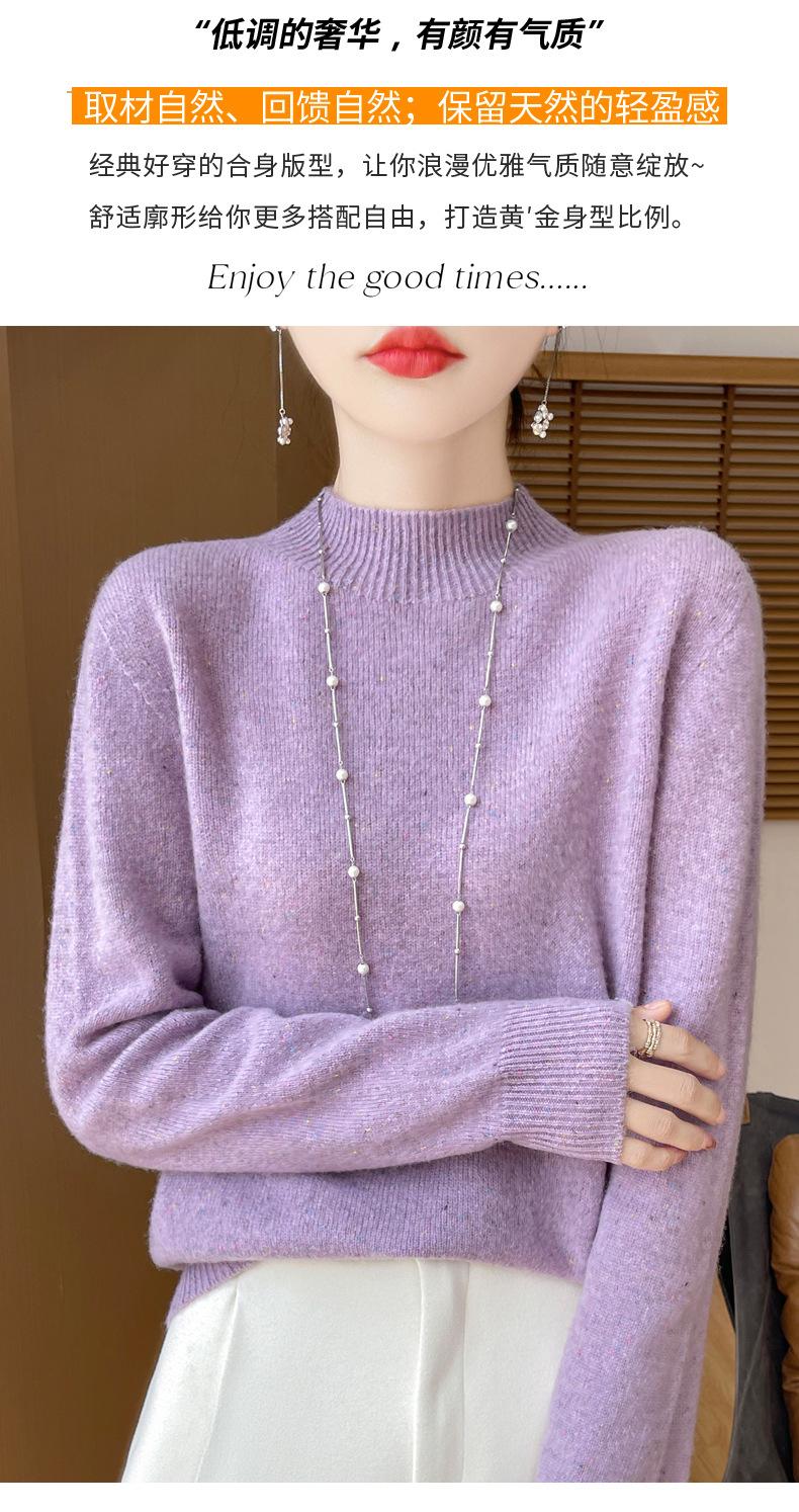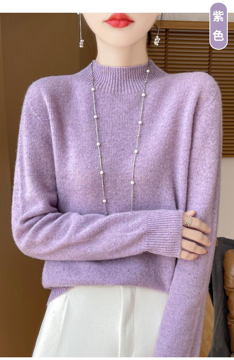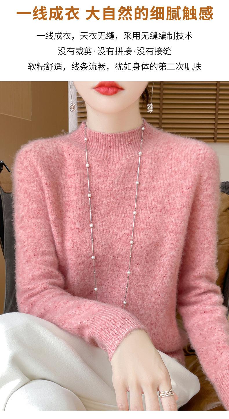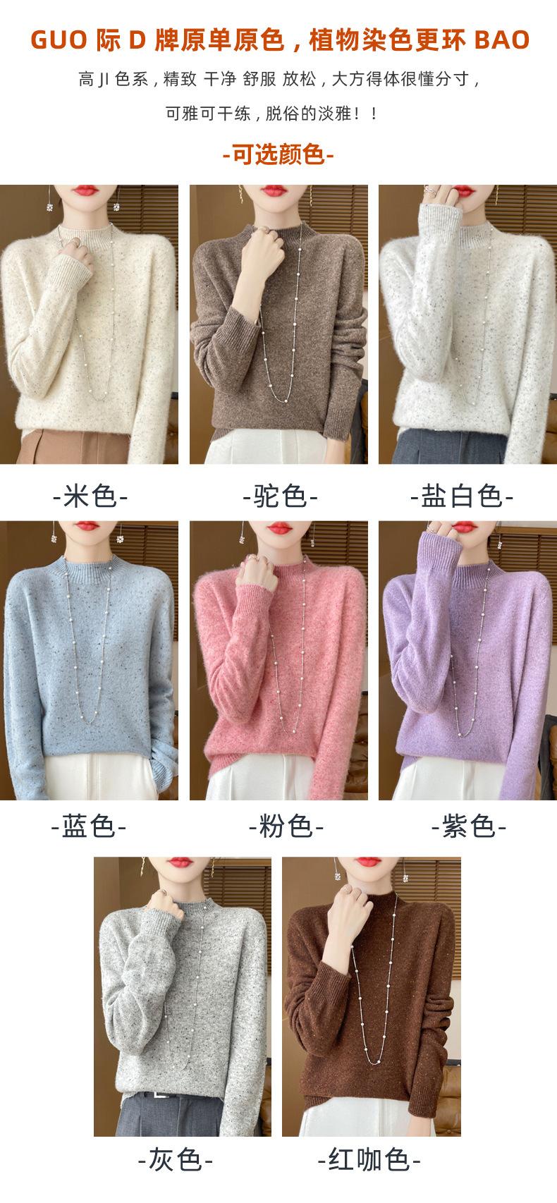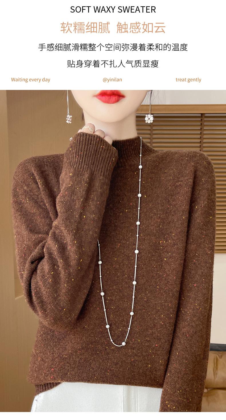 Suéter de cuello alto medio de primera línea de siete puntadas sin costuras de lana pura para mujer, jersey holgado de manga larga
