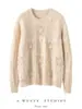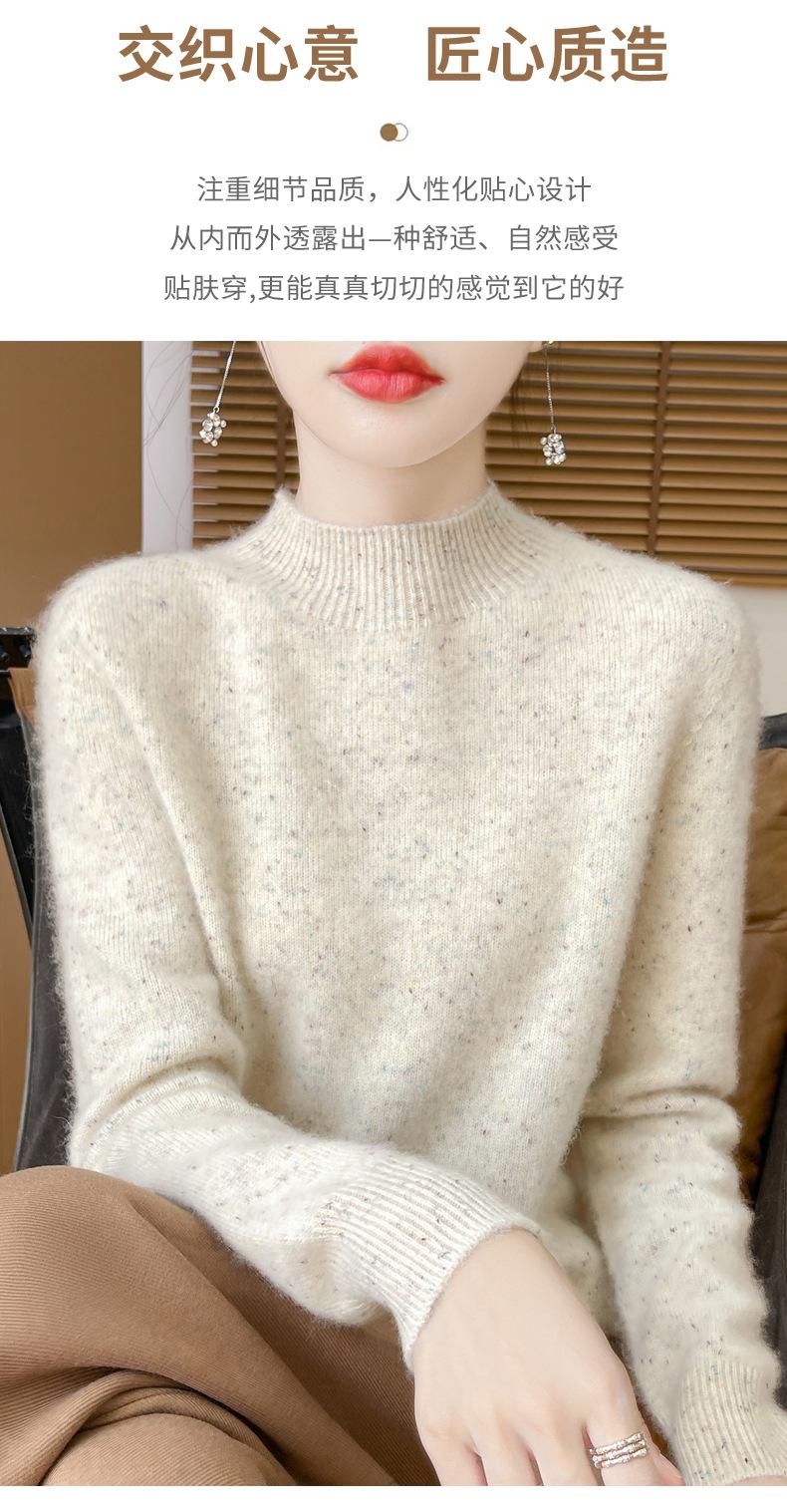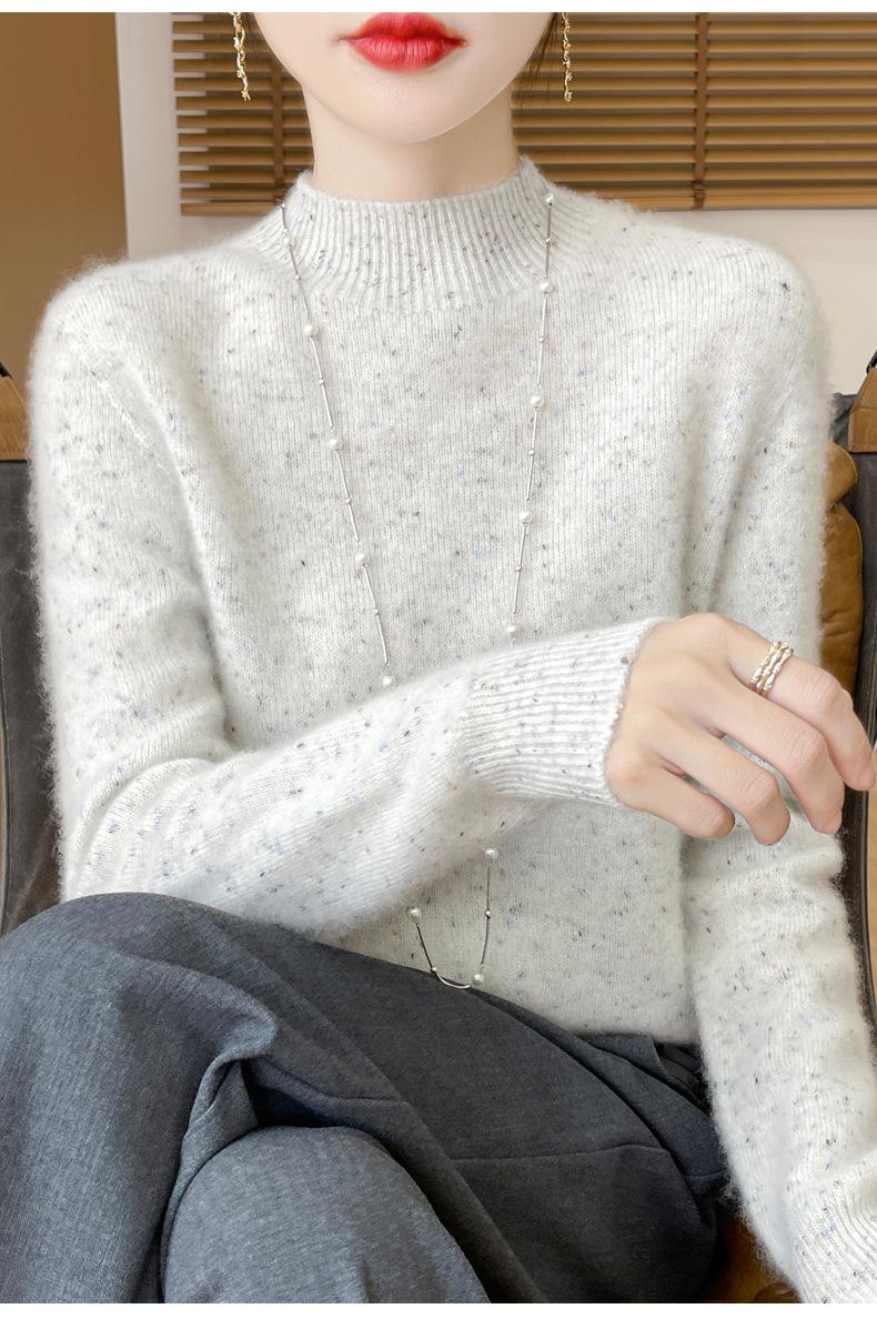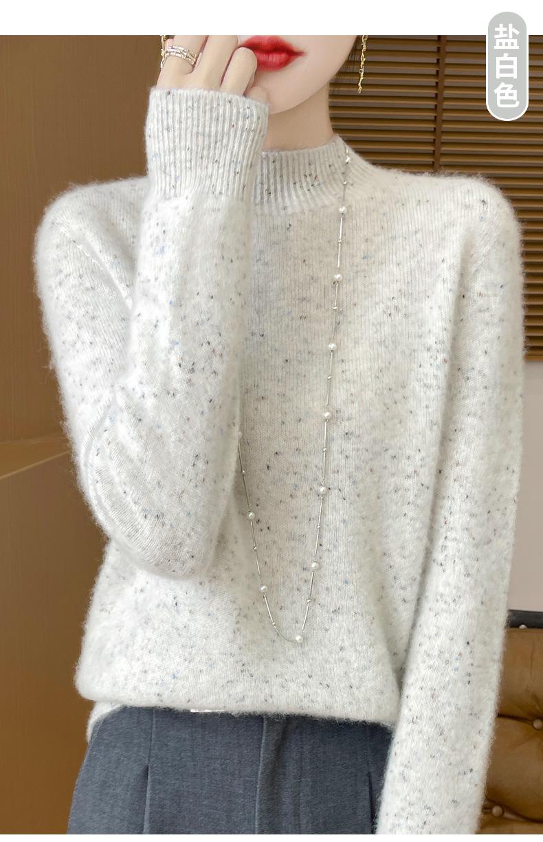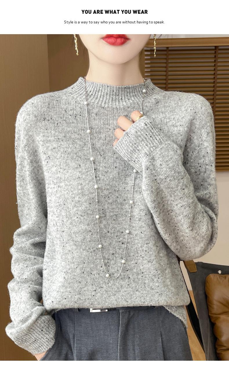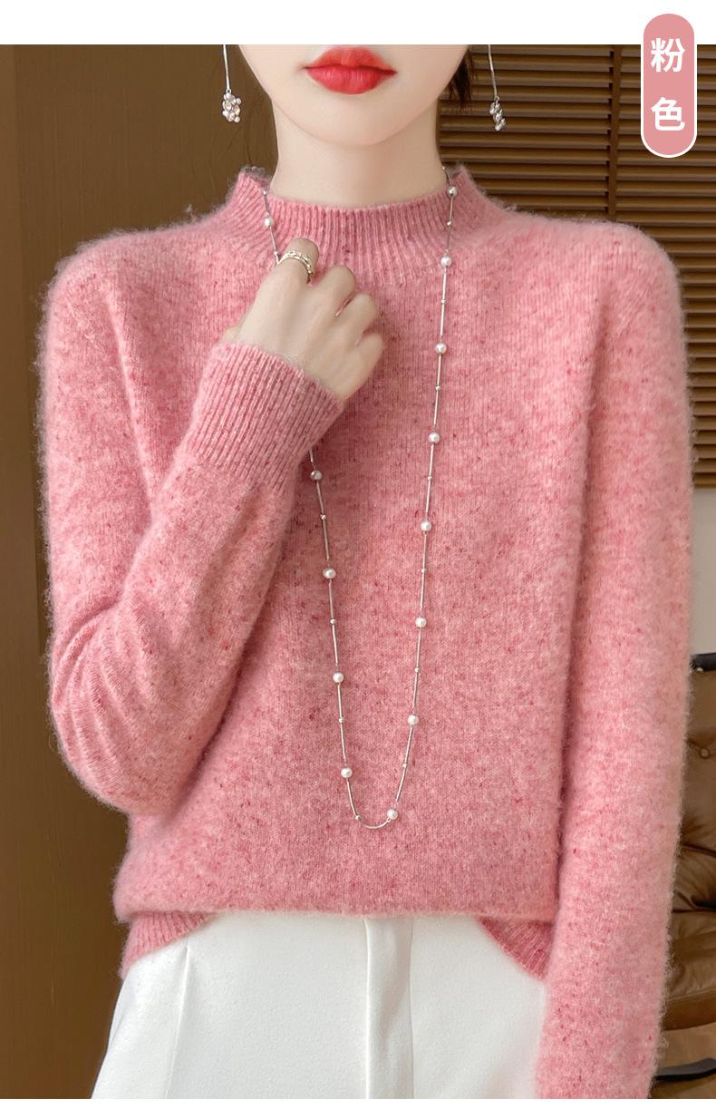 Suéter de cuello alto medio de primera línea de siete puntadas sin costuras de lana pura para mujer, jersey holgado de manga larga