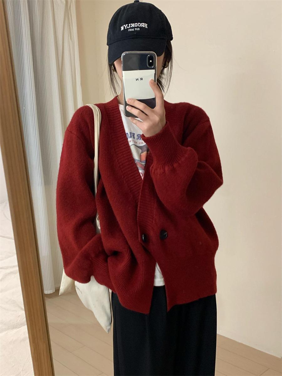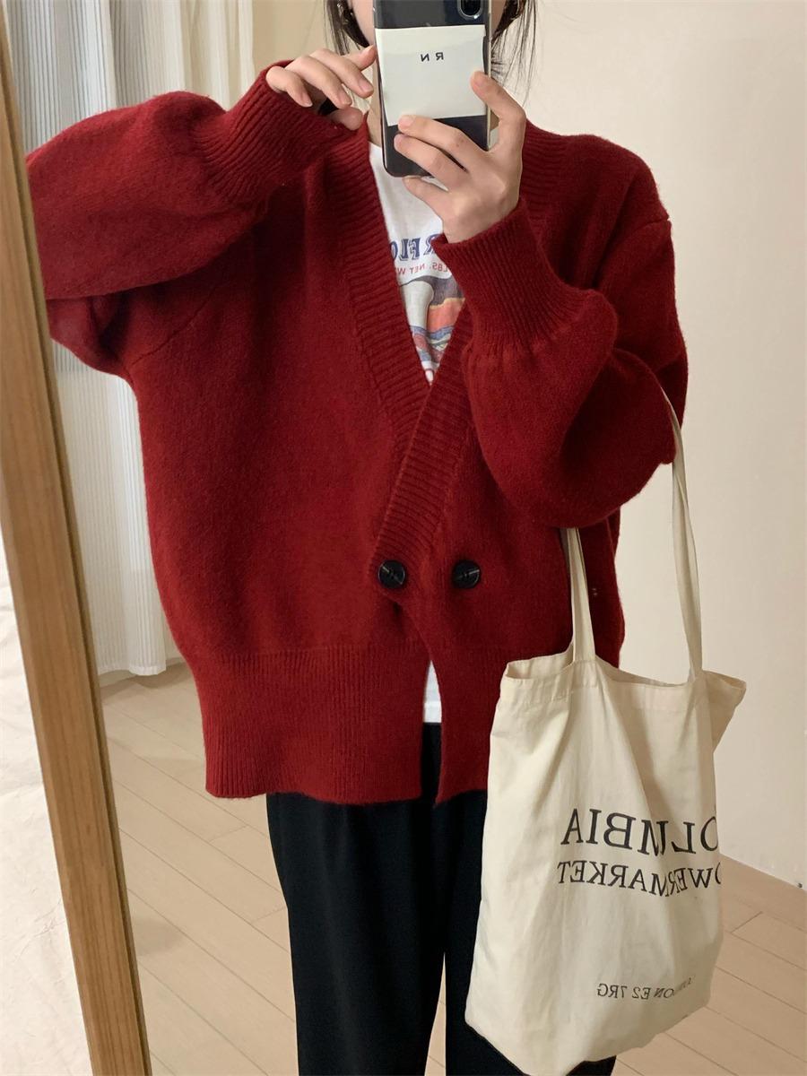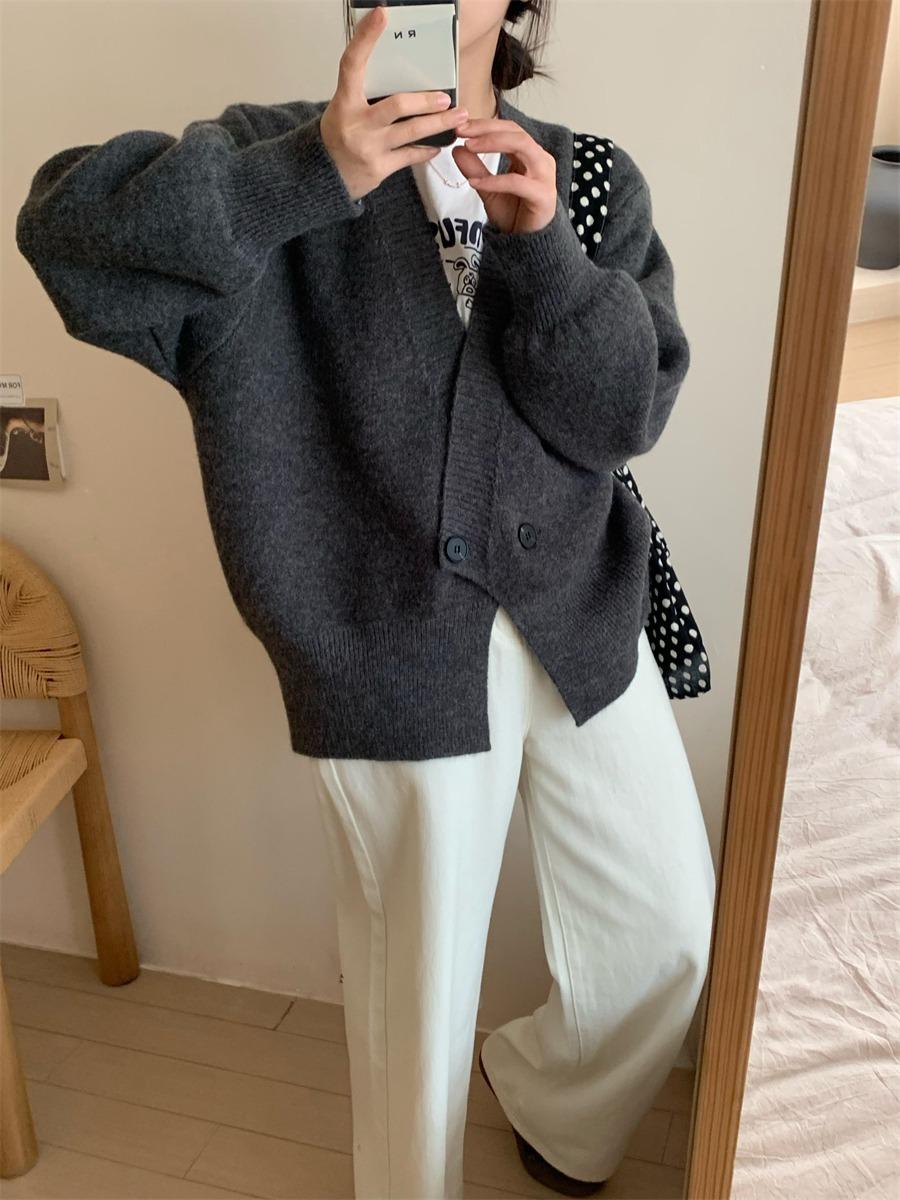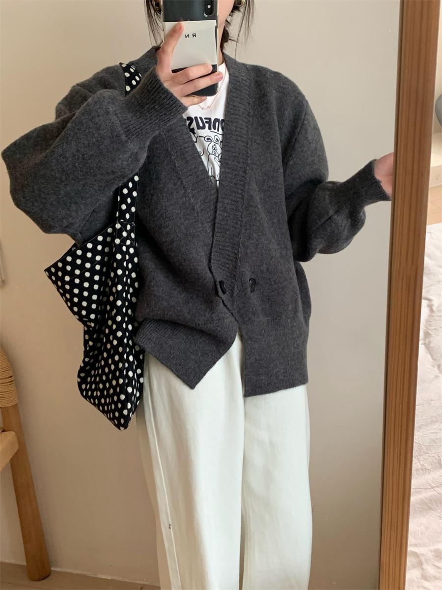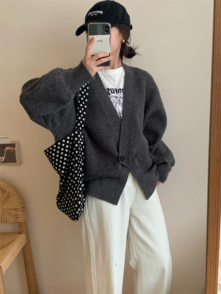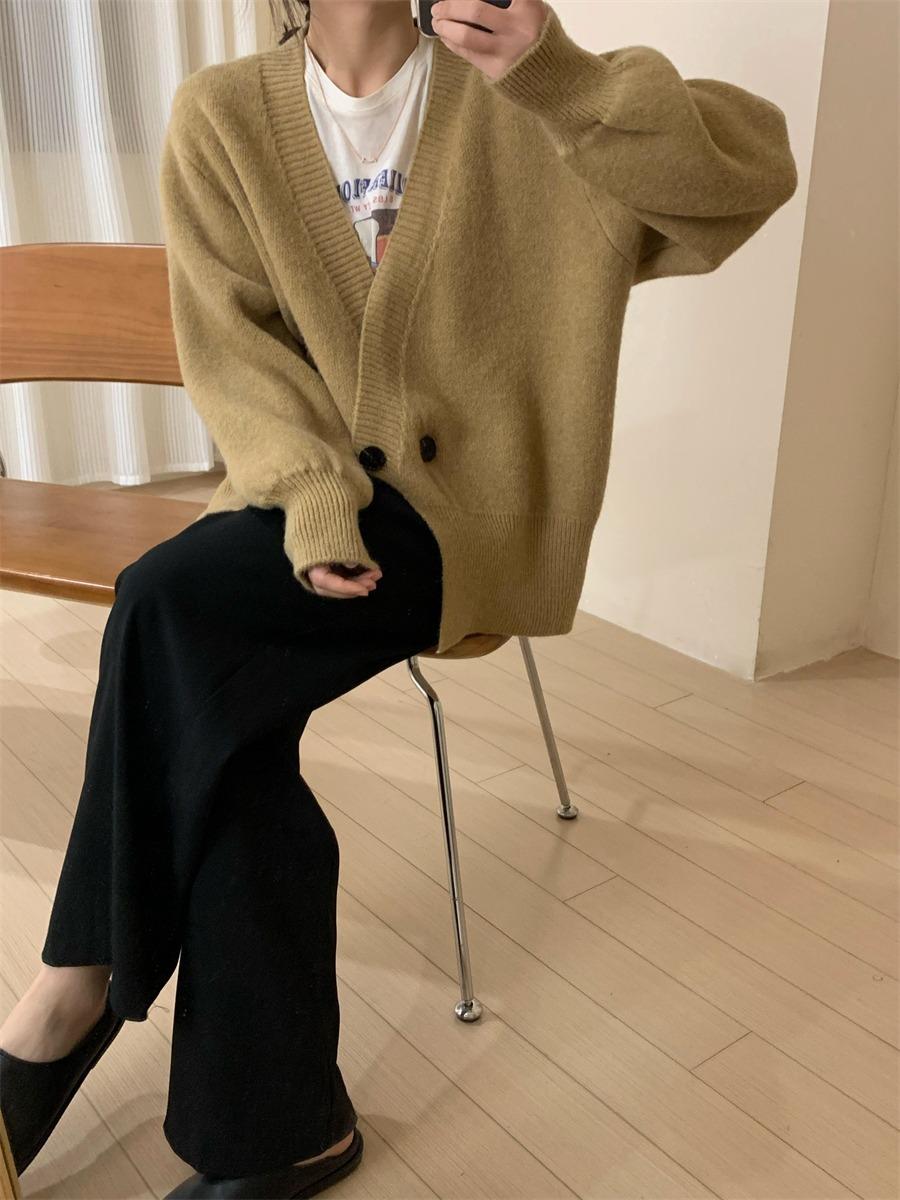 Suéter de mujer, otoño 2024, nuevo cárdigan de punto coreano de color sólido, suéter de punto simple y suelto, abrigo de mujer de estilo perezoso