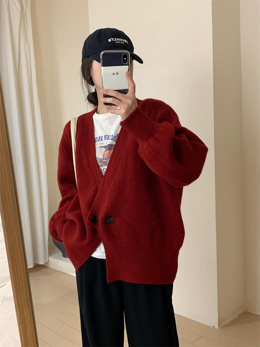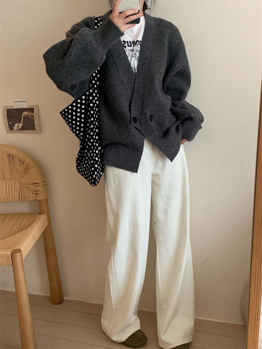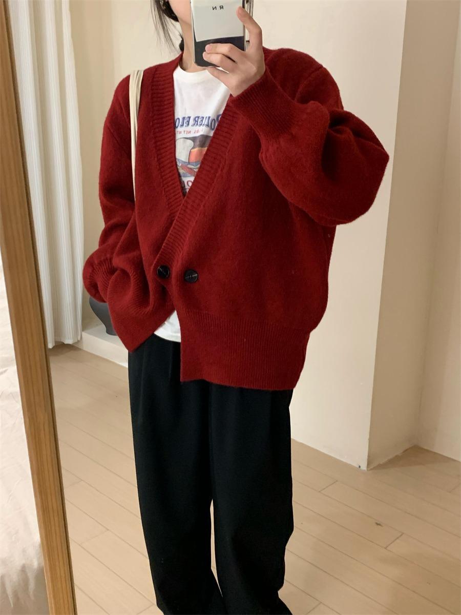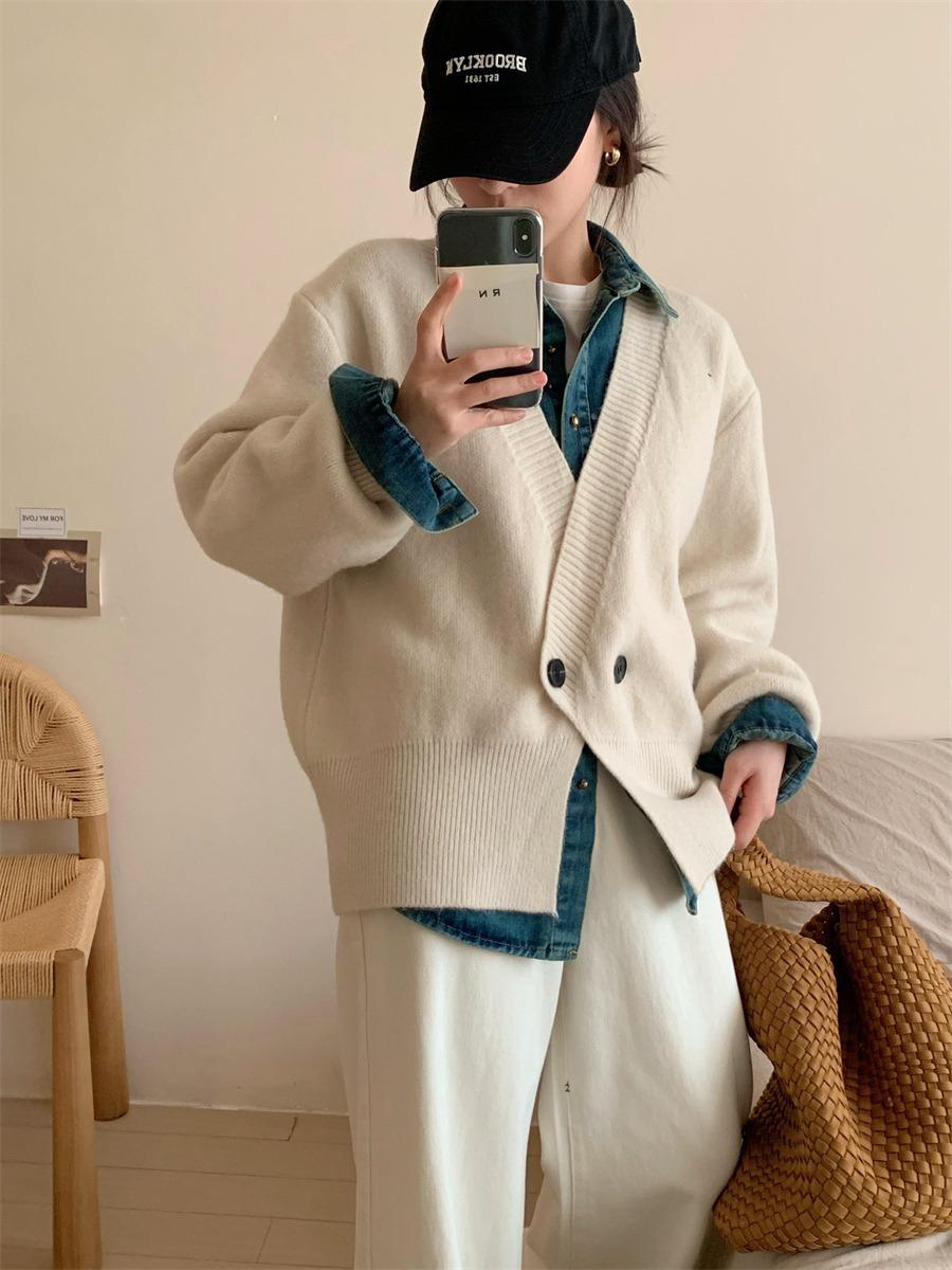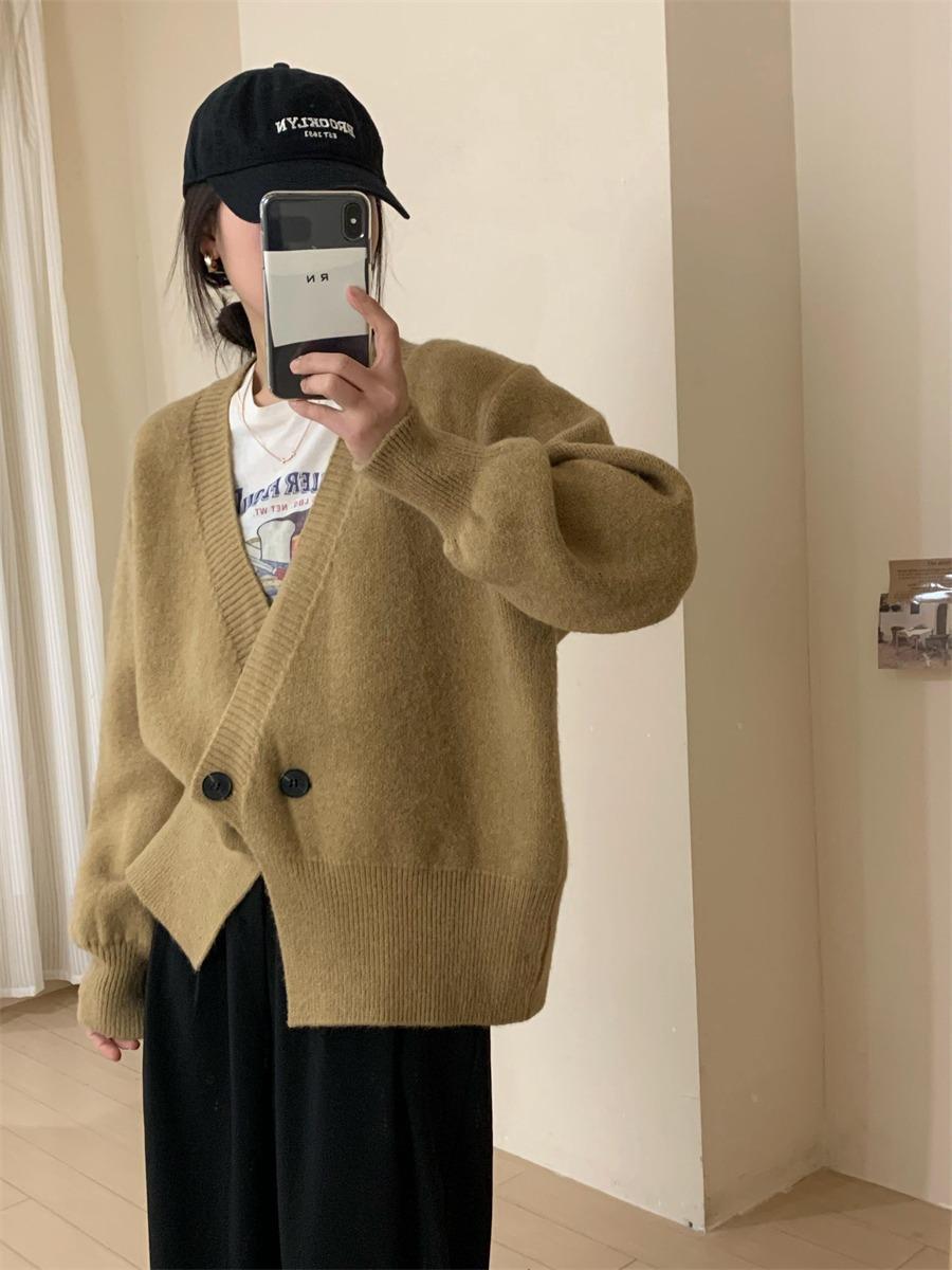 Suéter de mujer, otoño 2024, nuevo cárdigan de punto coreano de color sólido, suéter de punto simple y suelto, abrigo de mujer de estilo perezoso
