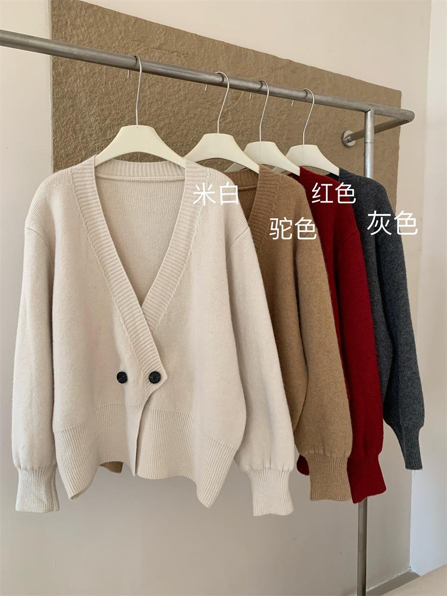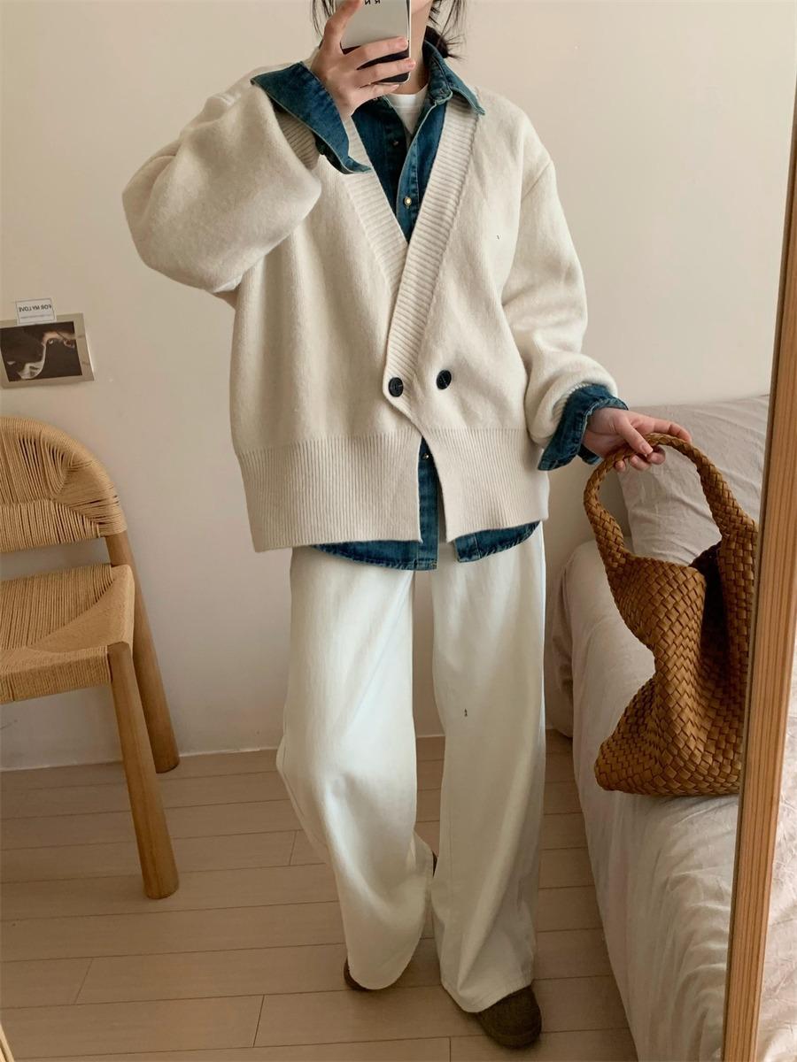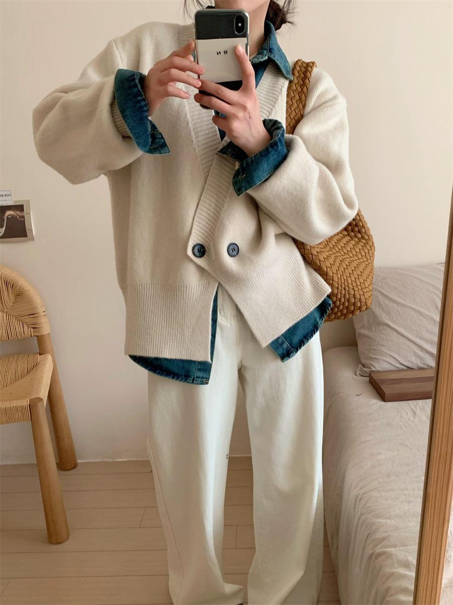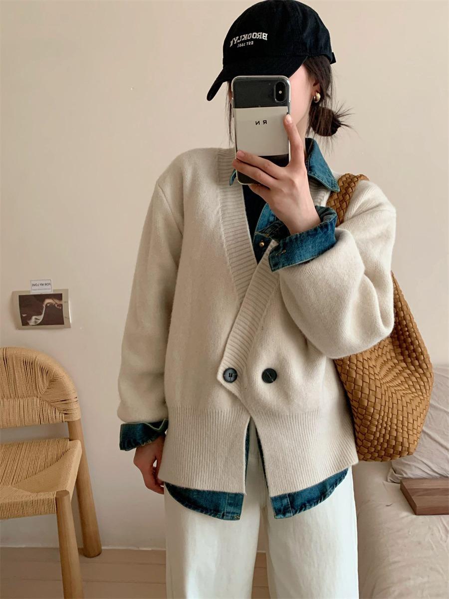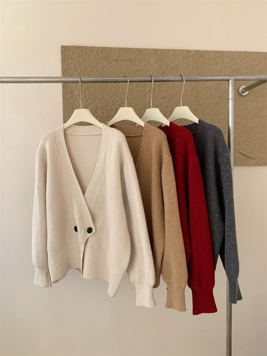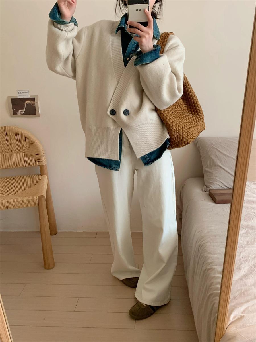 Suéter de mujer, otoño 2024, nuevo cárdigan de punto coreano de color sólido, suéter de punto simple y suelto, abrigo de mujer de estilo perezoso