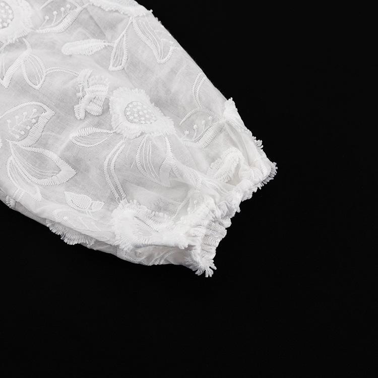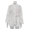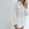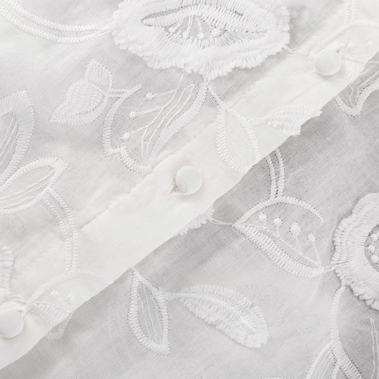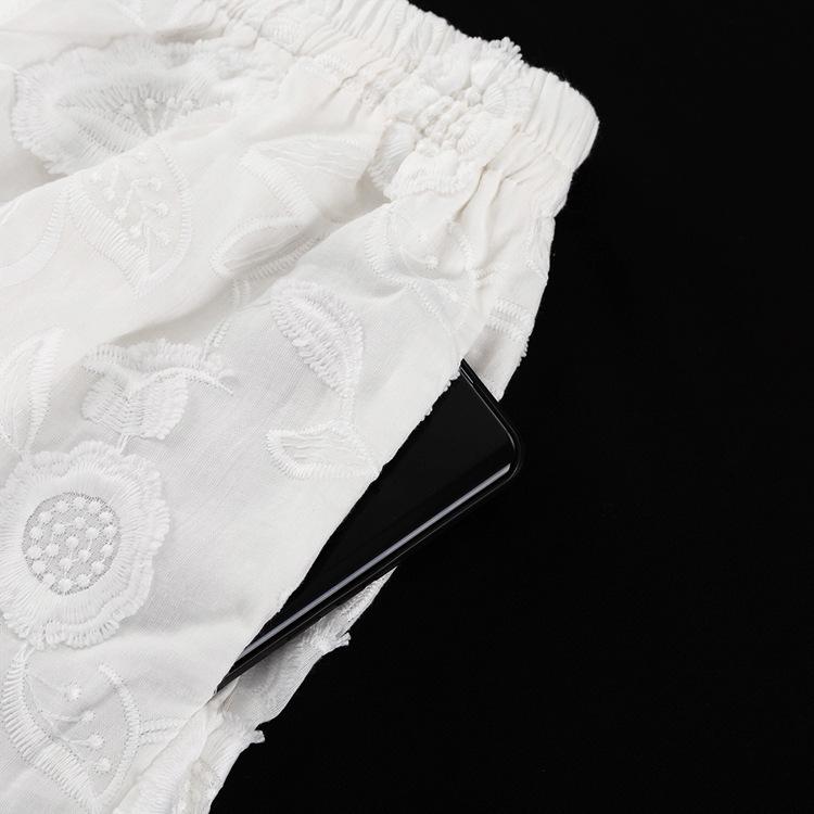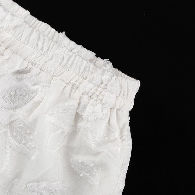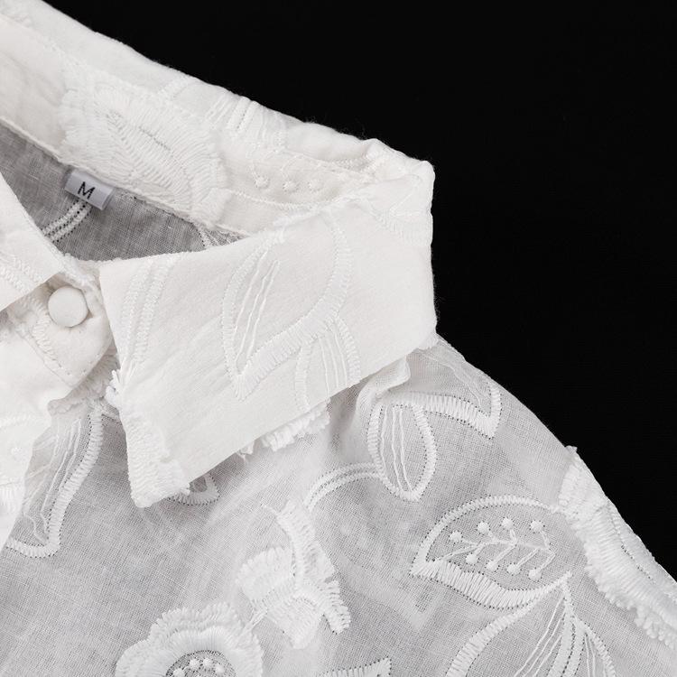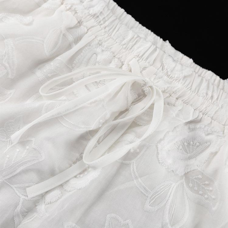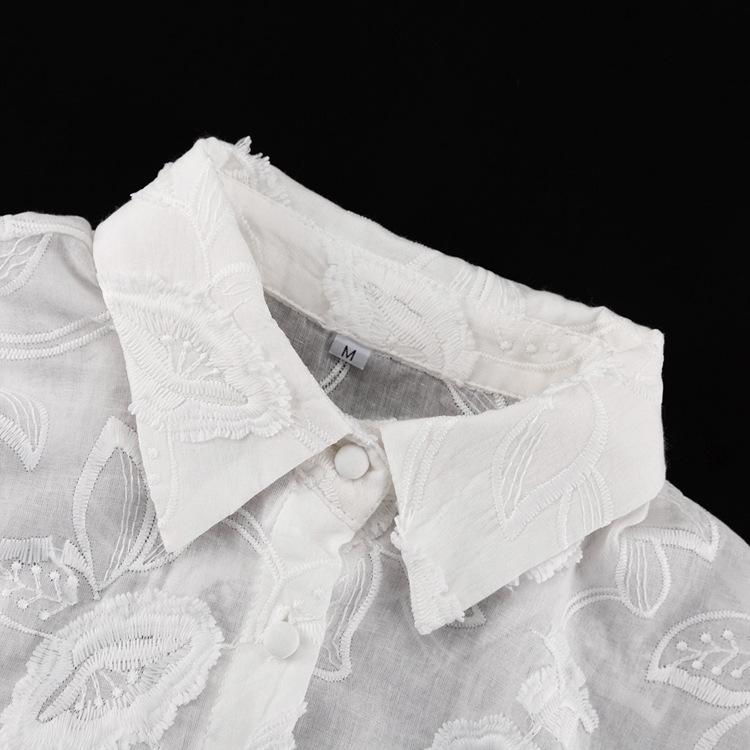 Traje sexy transfronterizo de Europa y Estados Unidos, primavera y otoño de 2024, nueva moda, camisa con perspectiva de bordado de algodón, pantalones cortos de cintura alta
