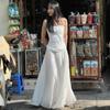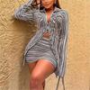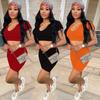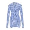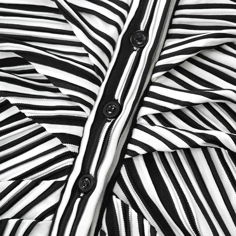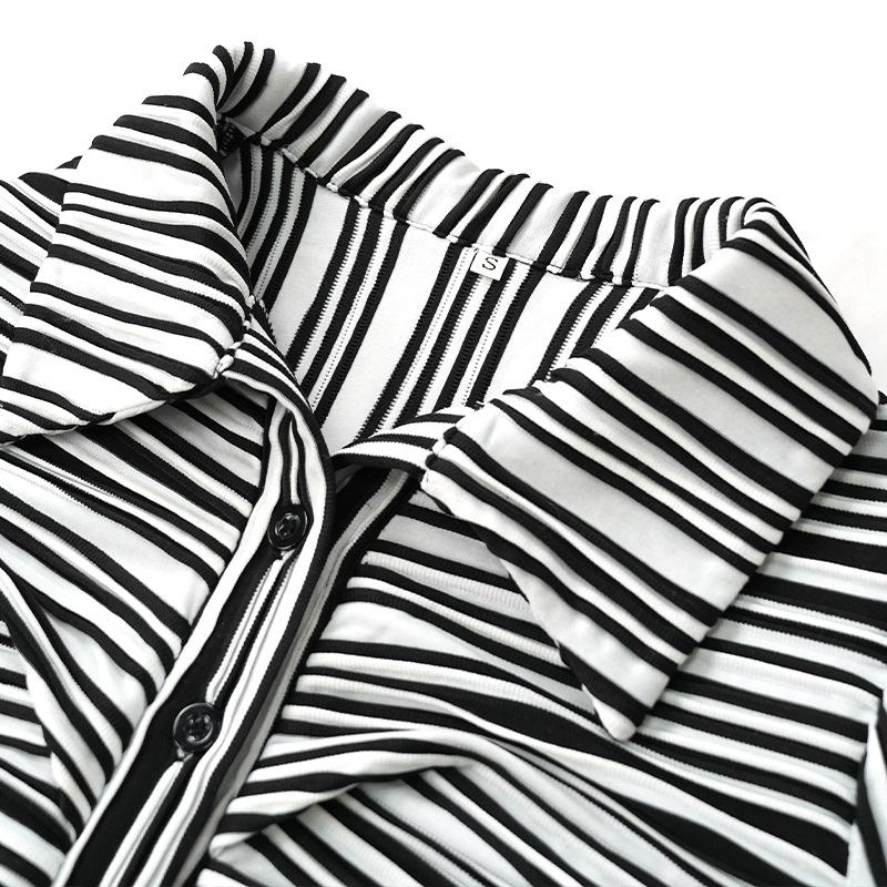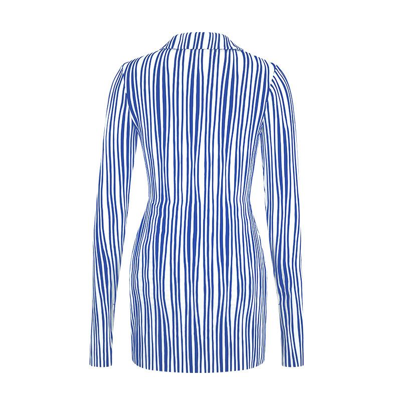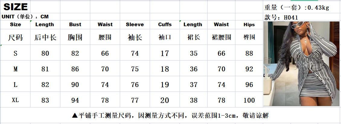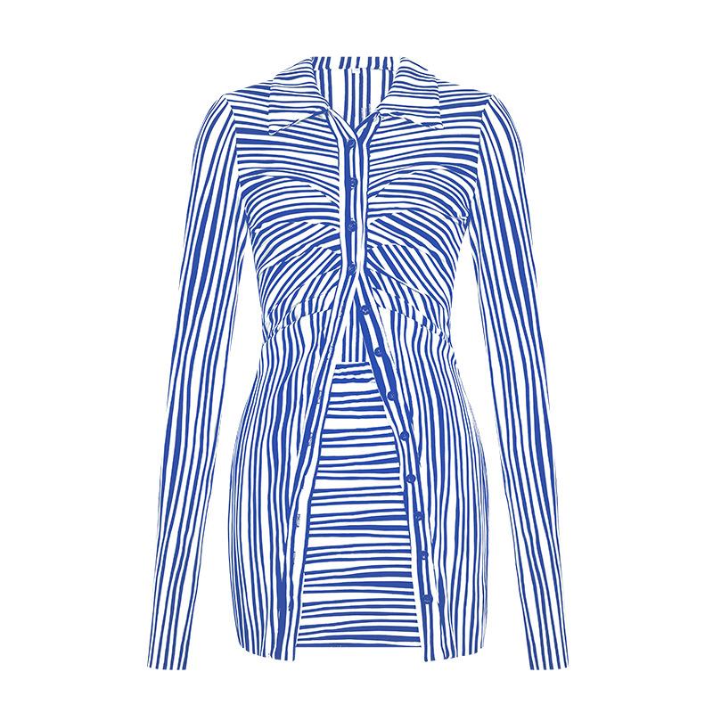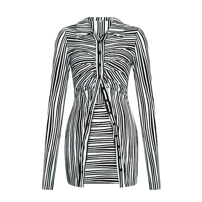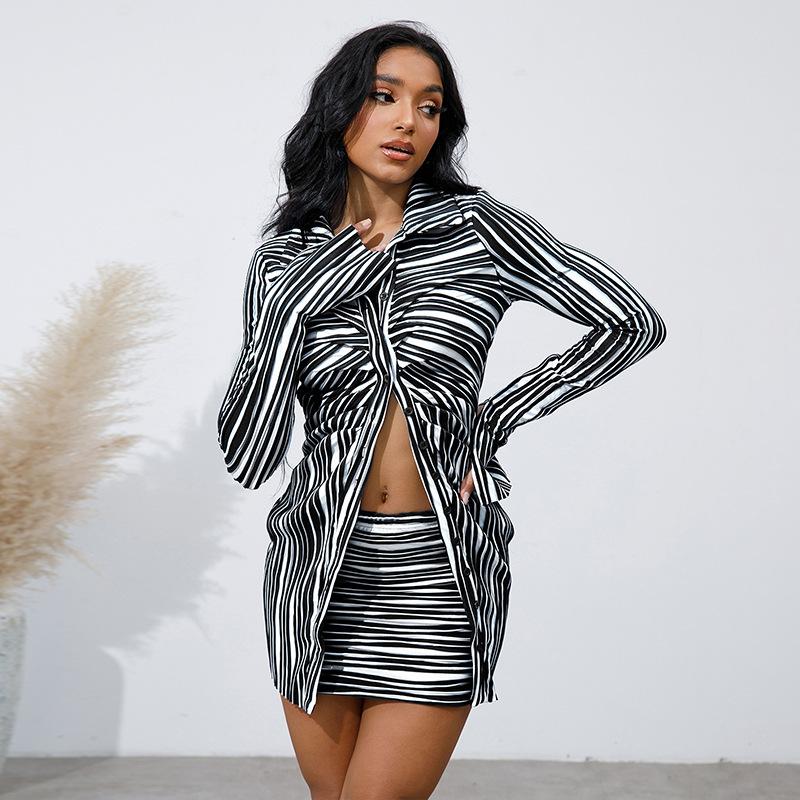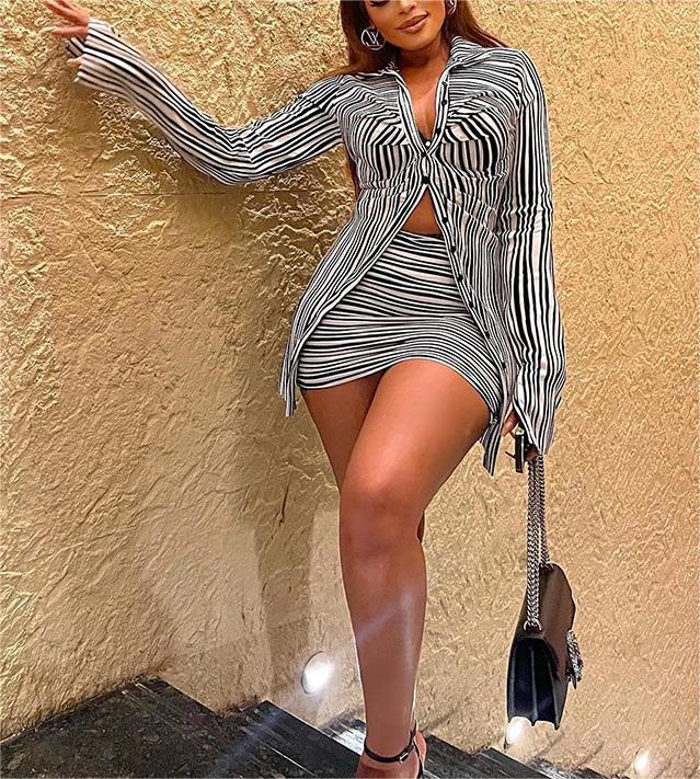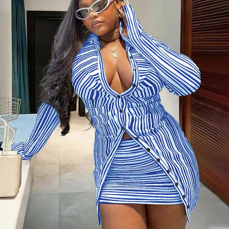Falda de camisa de un solo pecho a rayas con escote en V profundo de Amazon, ropa de mujer sexy de moda europea y americana de dos piezas