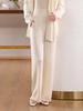 Pantalones anchos de punto de lana 100 % pura, color liso, adelgazantes, de cintura alta, informales, sencillos y elegantes, para otoño e invierno, nuevos.