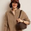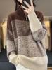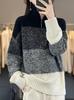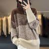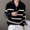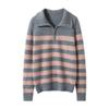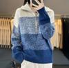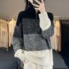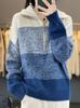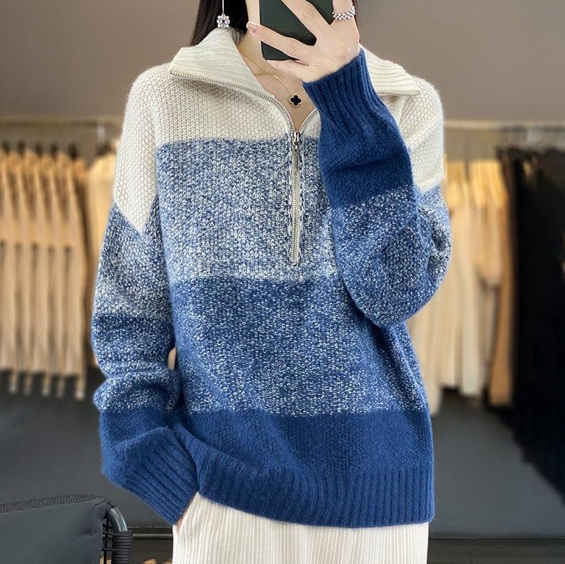 Ropa de punto de otoño e invierno para mujer cuello alto cremallera engrosado solapa media abierta holgado perezoso color degradado a rayas camisa suéter para llevar debajo