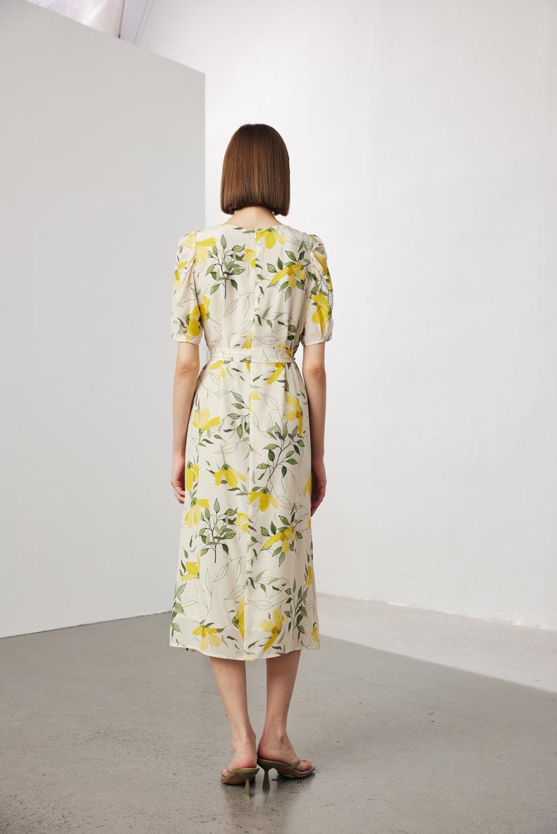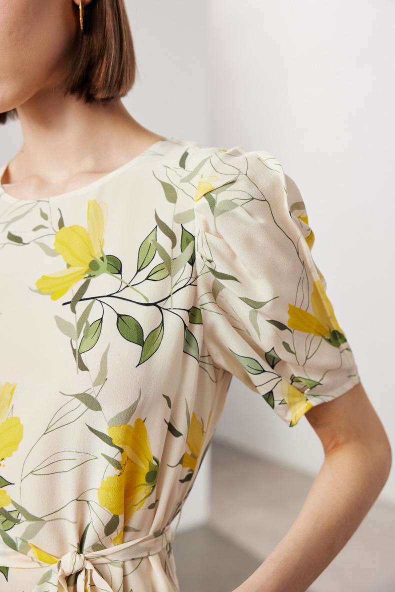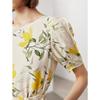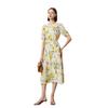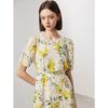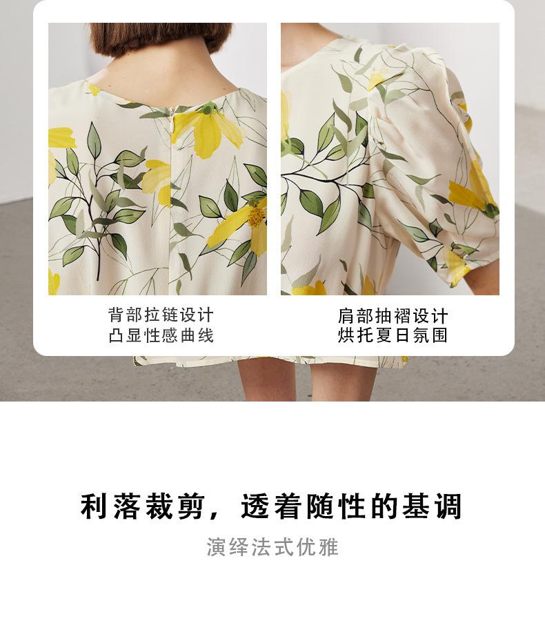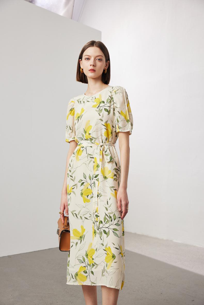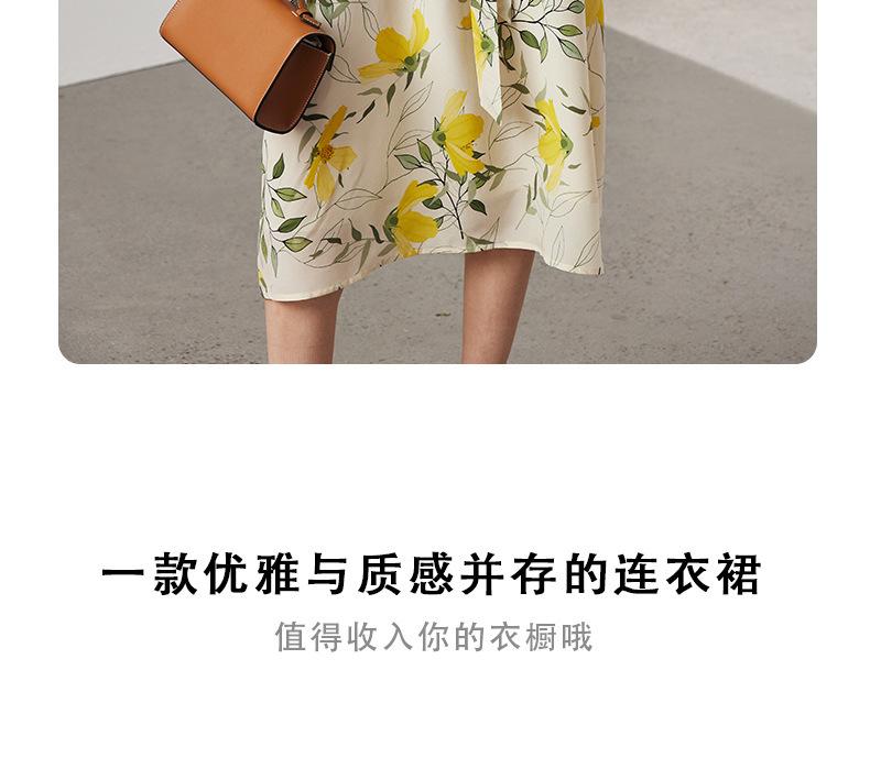 Vestido de Seda de Manga Corta para Mujer 2025 Primavera y Verano Nuevo Estilo Cintura con Cordones Ropa de Trabajo Floral Crepé de China Falda de Seda de Morera 100%