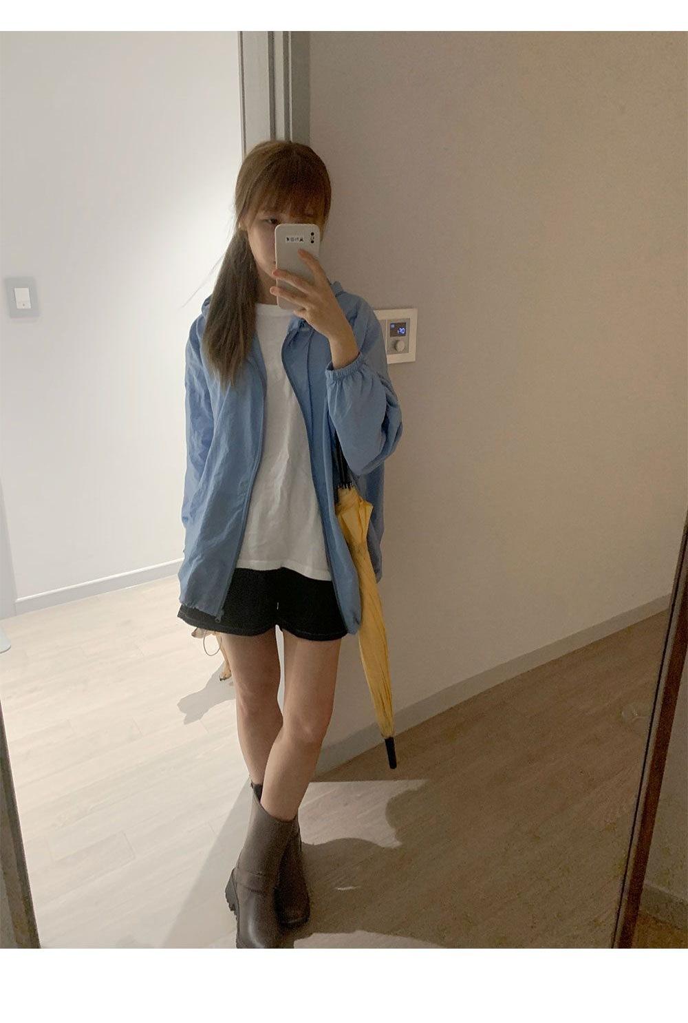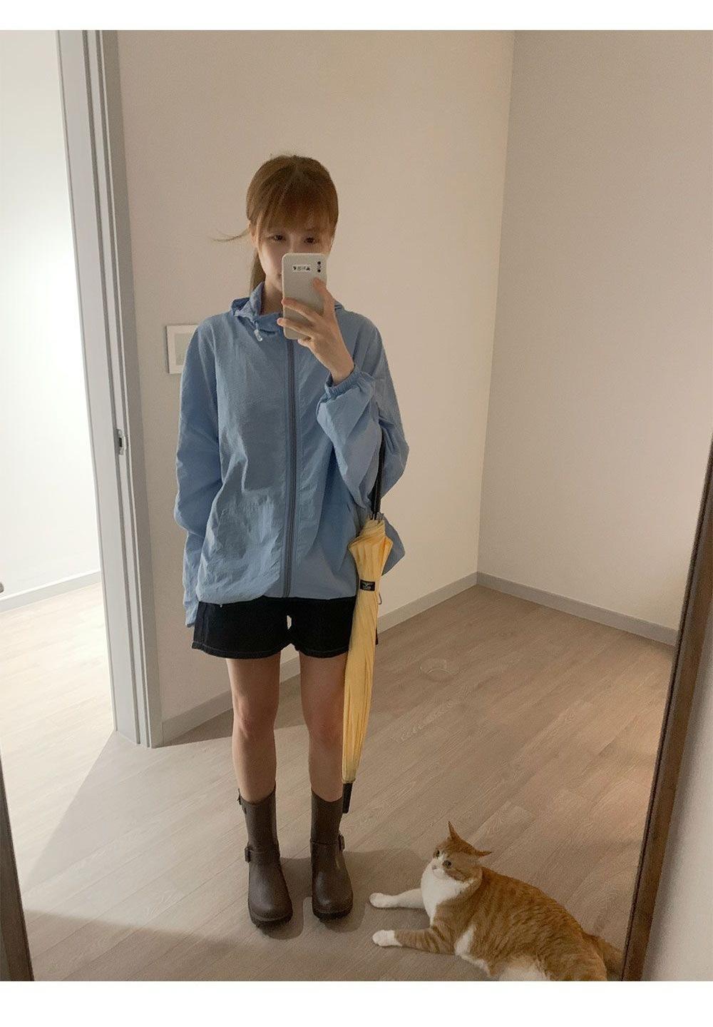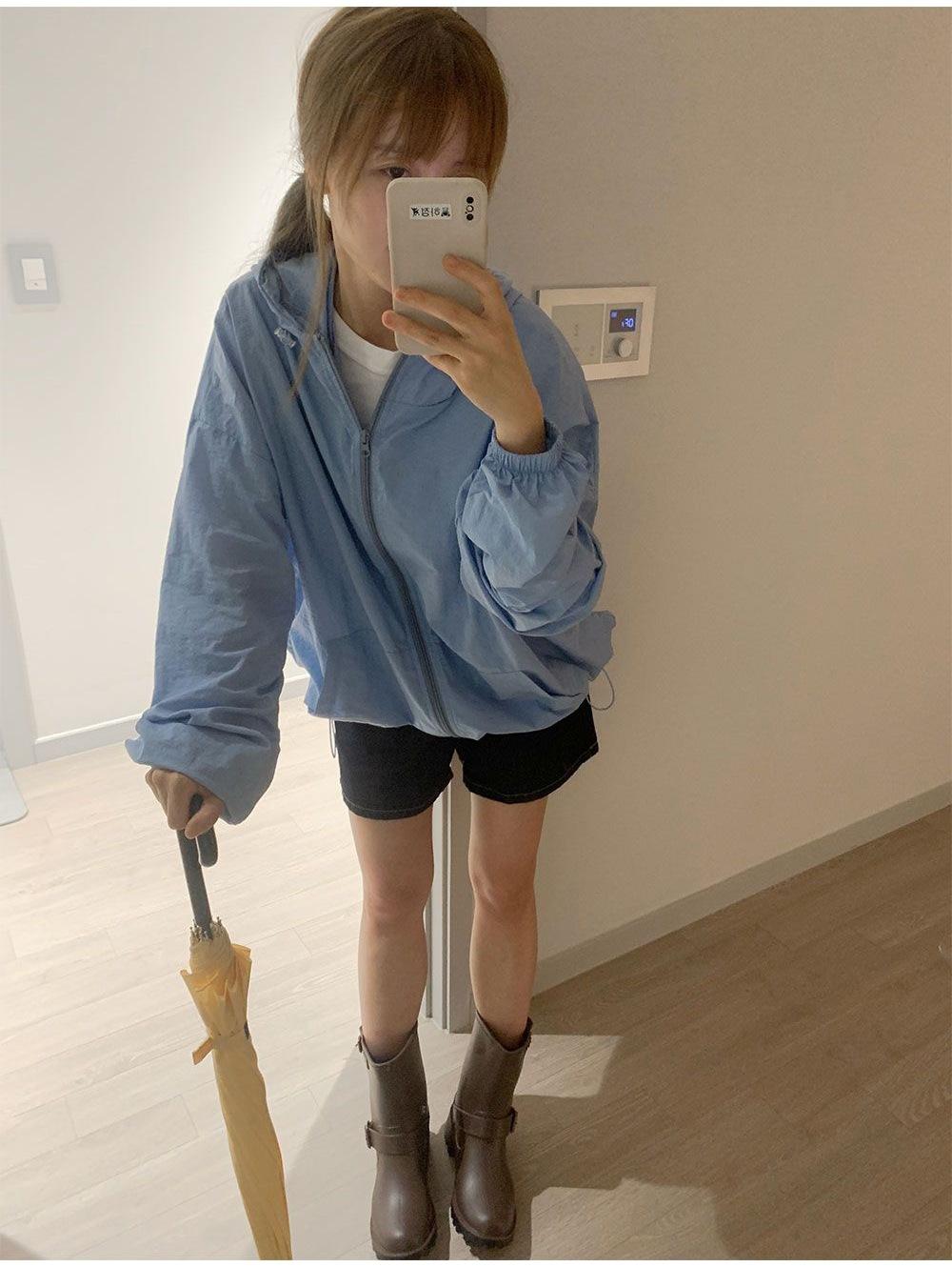 Verano 2025 Estilo Coreano Nuevo Color Sólido Estilo Occidental Clásico Chaqueta de Manga Larga para Exterior Amigable con la Piel Sencilla con Capucha Ropa Protectora del Sol para Mujer