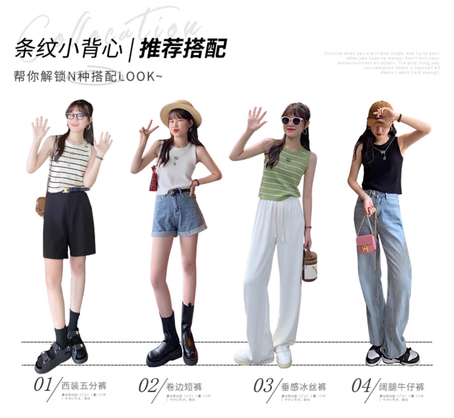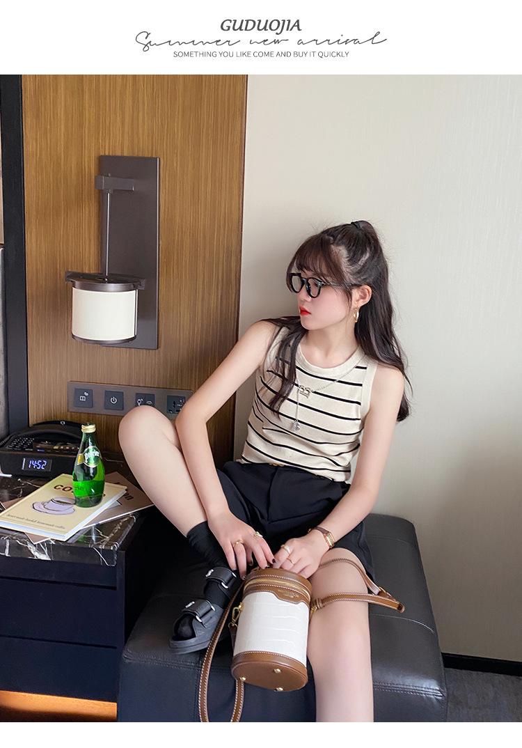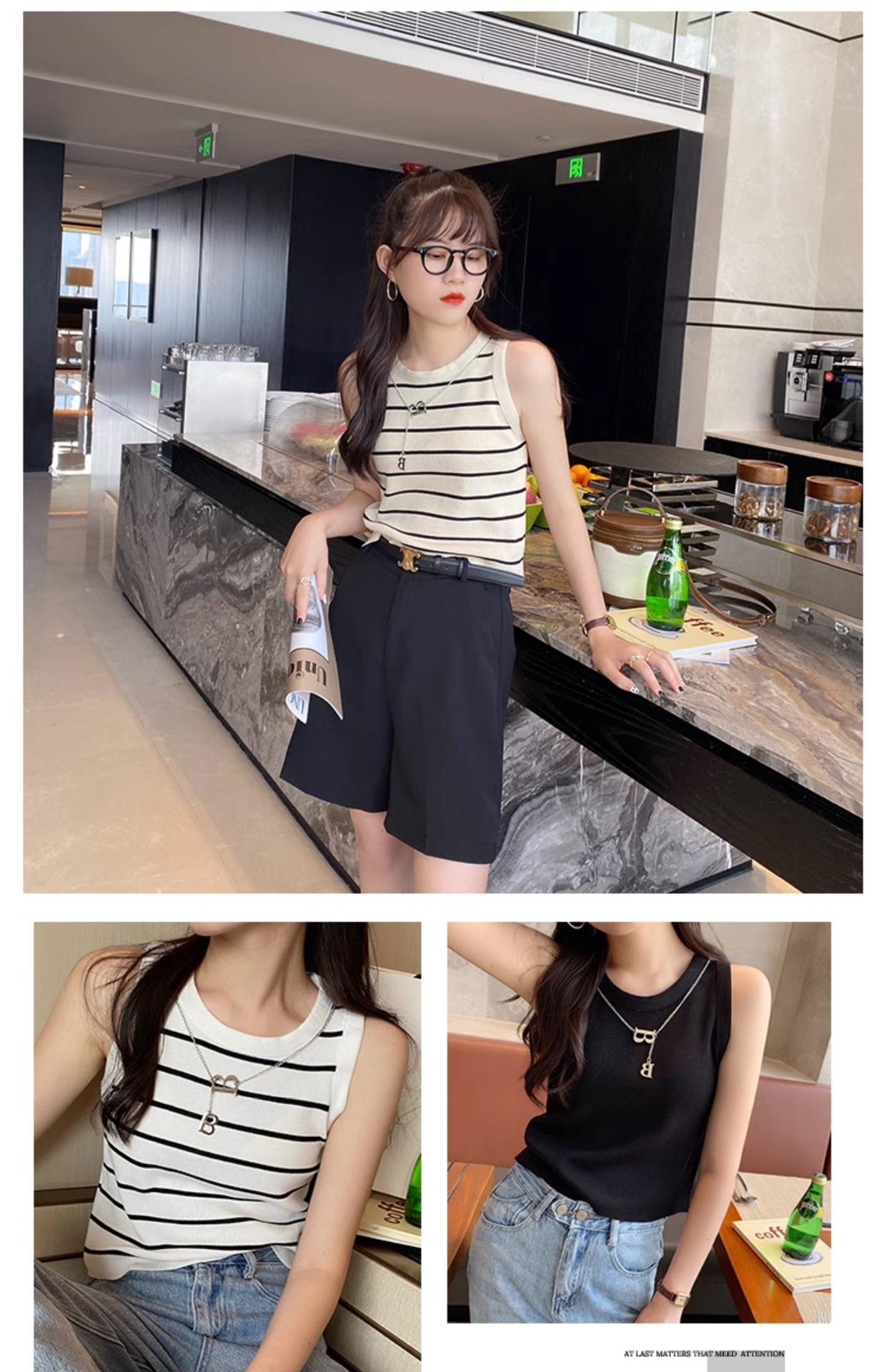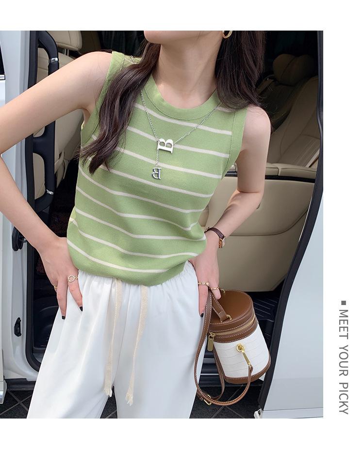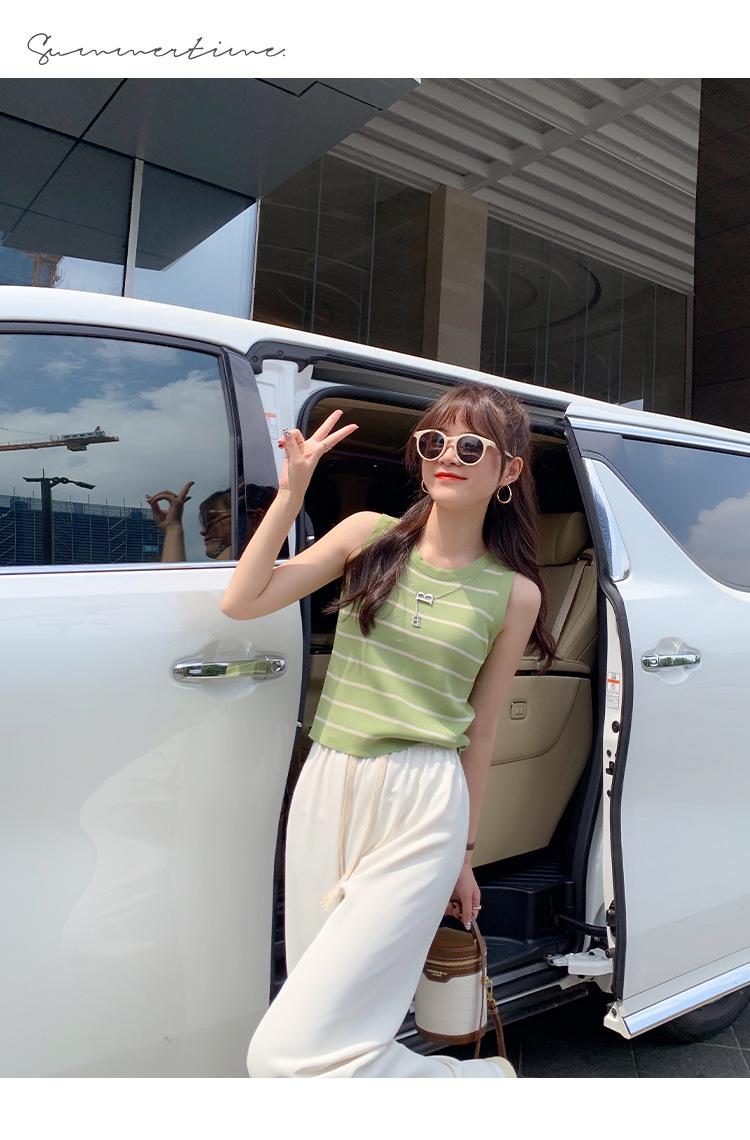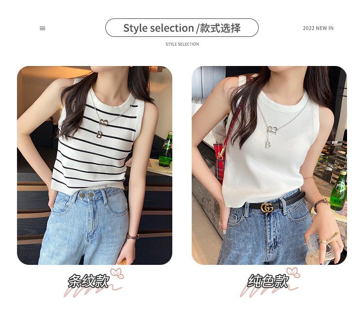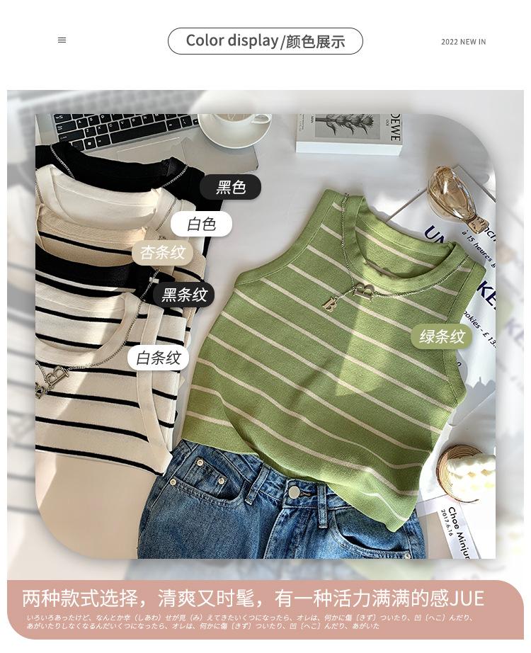 Chaleco francés para mujer, prenda interior y exterior, parte inferior, nuevo estilo, tirantes a rayas, tejido, sin mangas, top de verano a la moda.